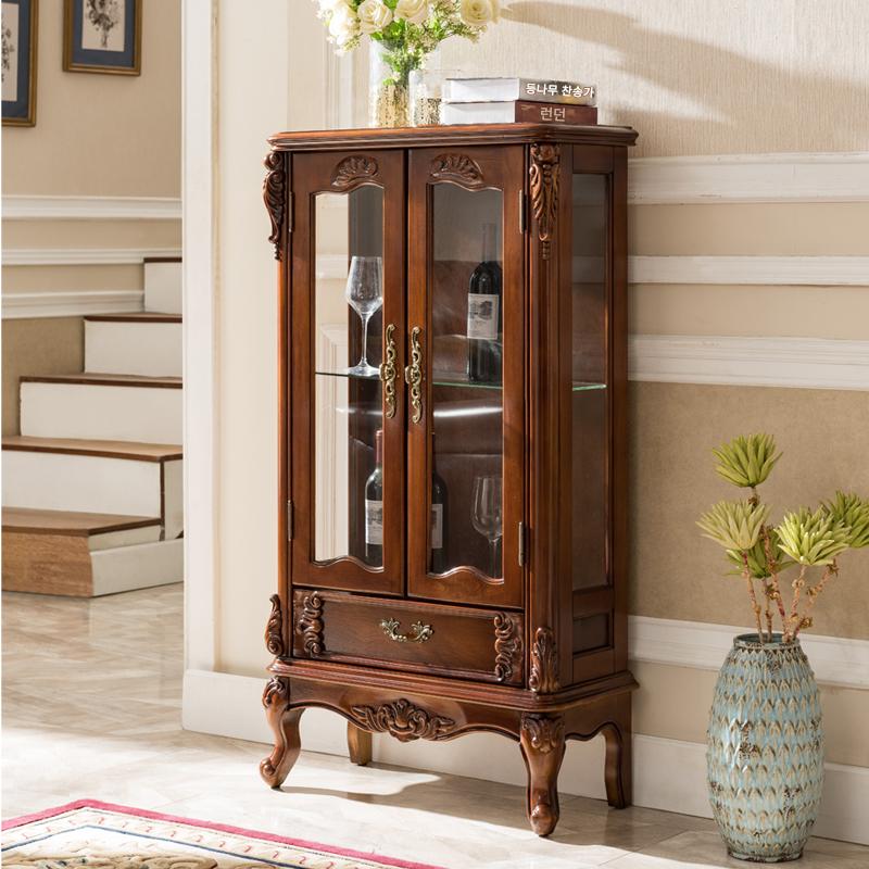 미국식 솔리드 우드 더블 도어 와인 캐비닛 거실 벽 레트로 캐비닛 유리 로우 캐비닛 소형 사이드 캐비닛 티 캐비닛 유럽식 싱글 도어