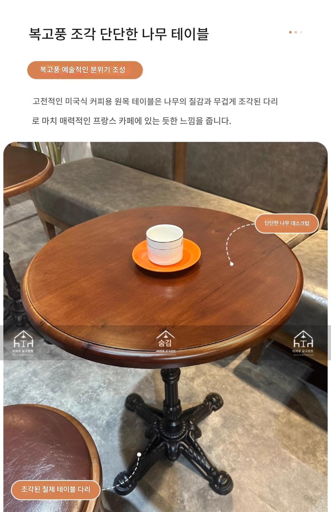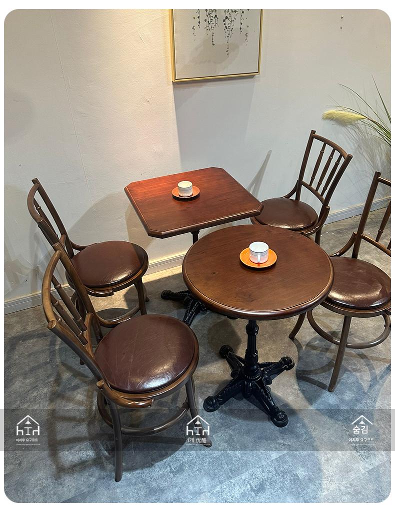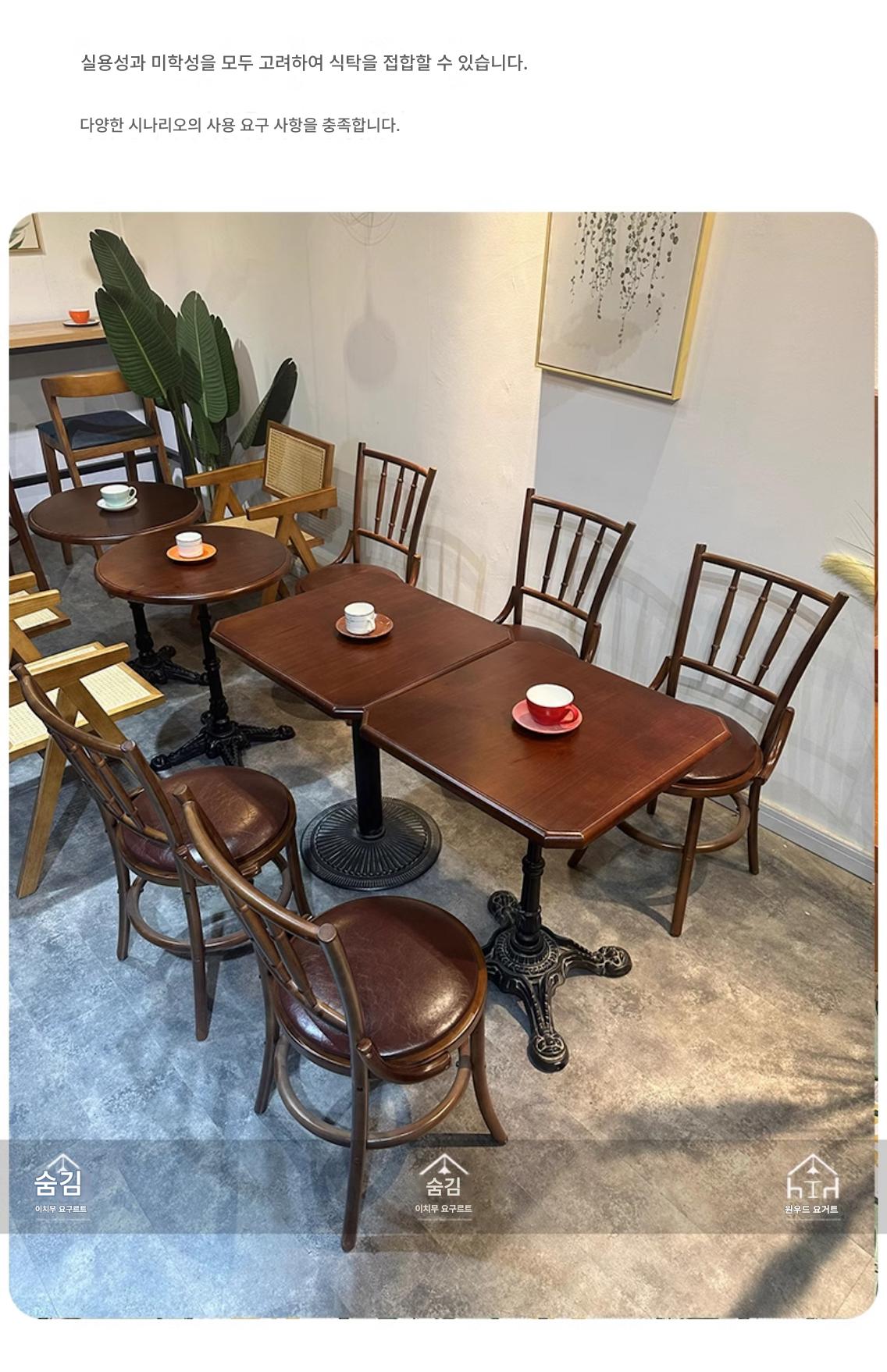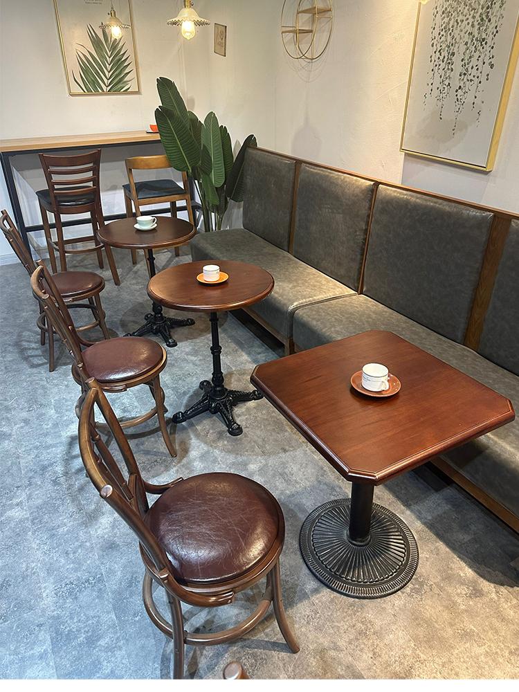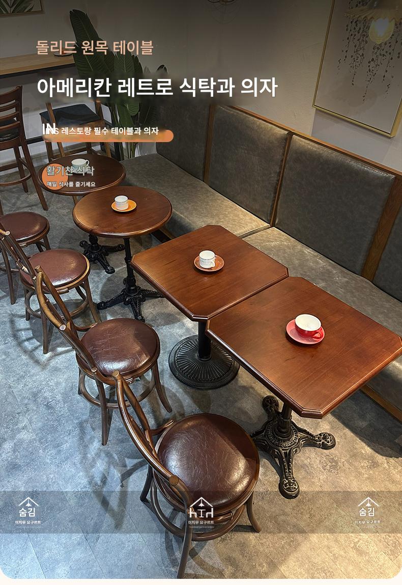 미국 레트로 카페 솔리드 우드 테이블과 의자 조합 케이터링 스낵 디저트 숍 부스 소파 서양식 레스토랑 사각형 원형 테이블