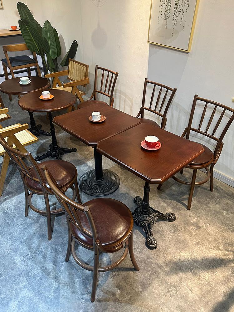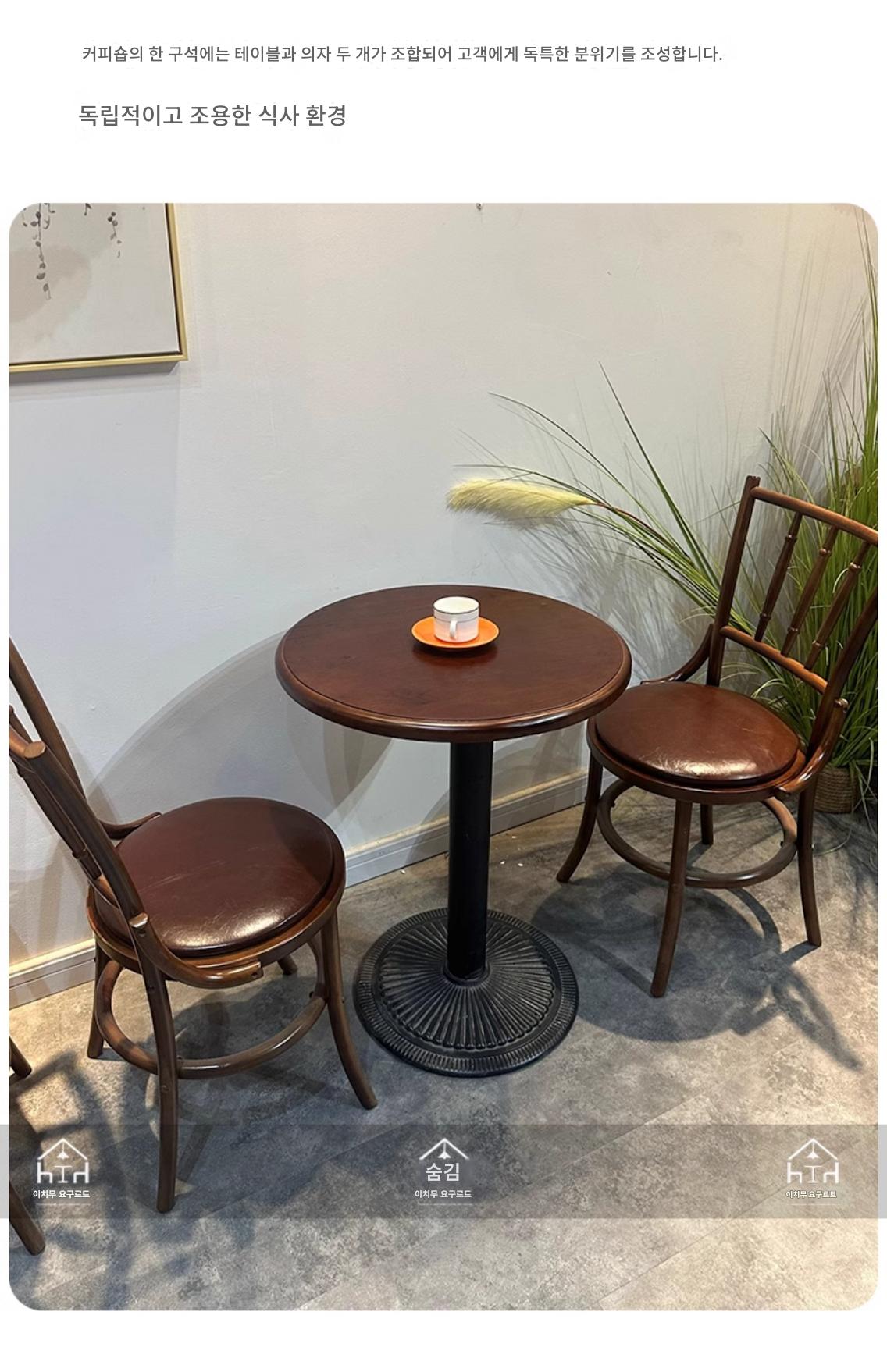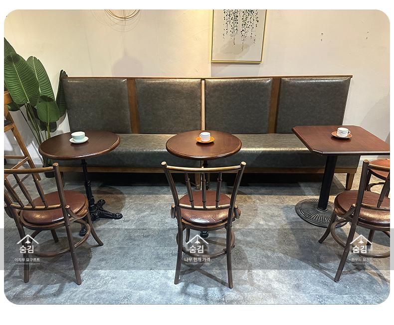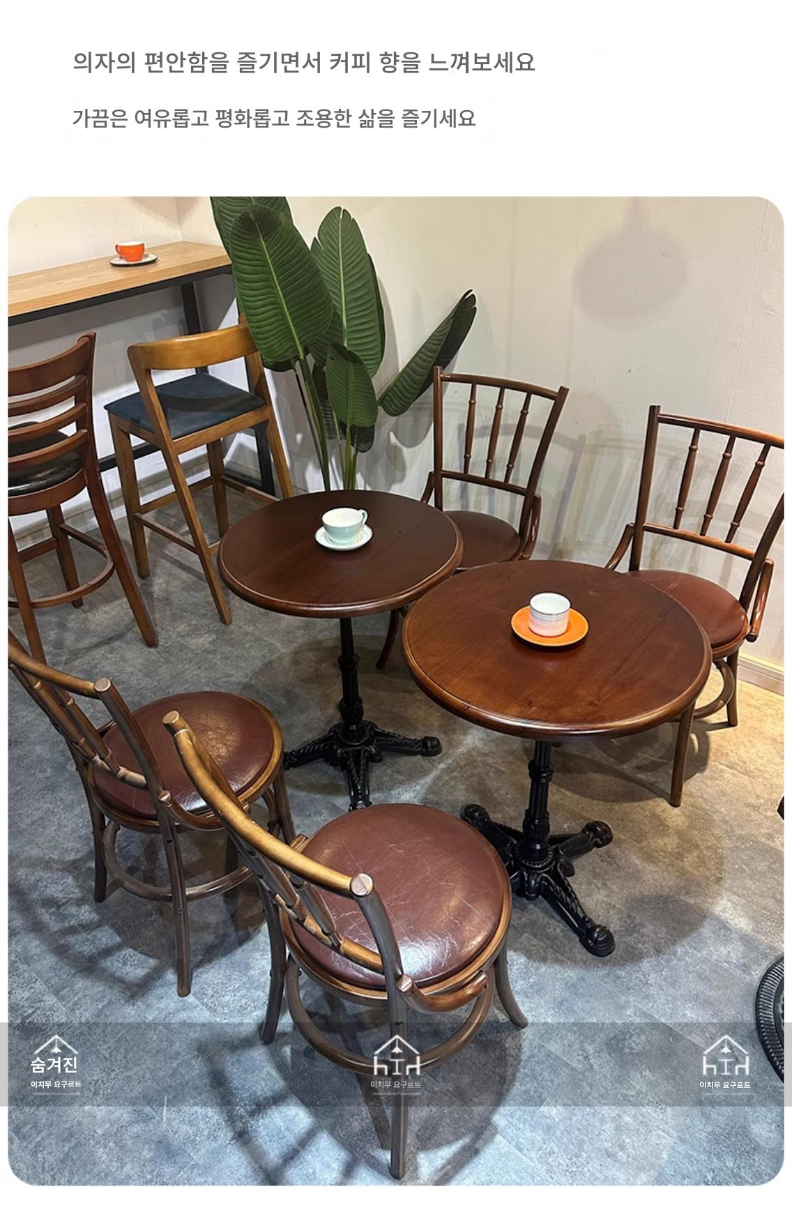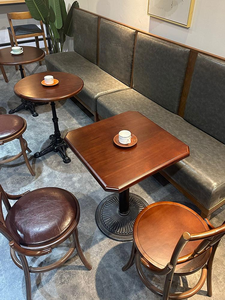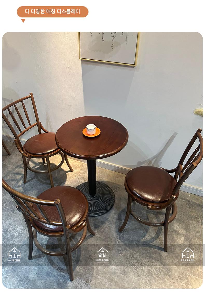 미국 레트로 카페 솔리드 우드 테이블과 의자 조합 케이터링 스낵 디저트 숍 부스 소파 서양식 레스토랑 사각형 원형 테이블