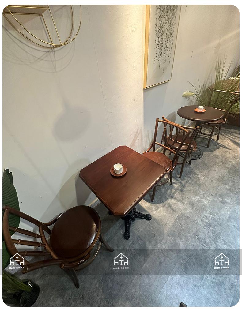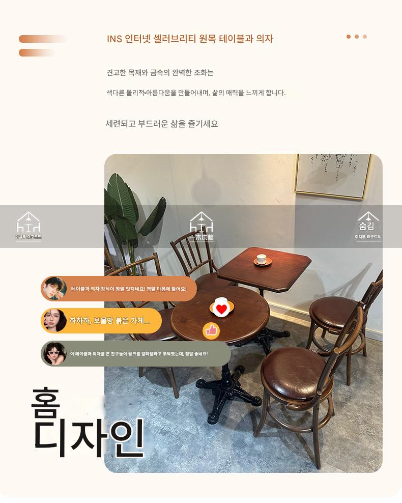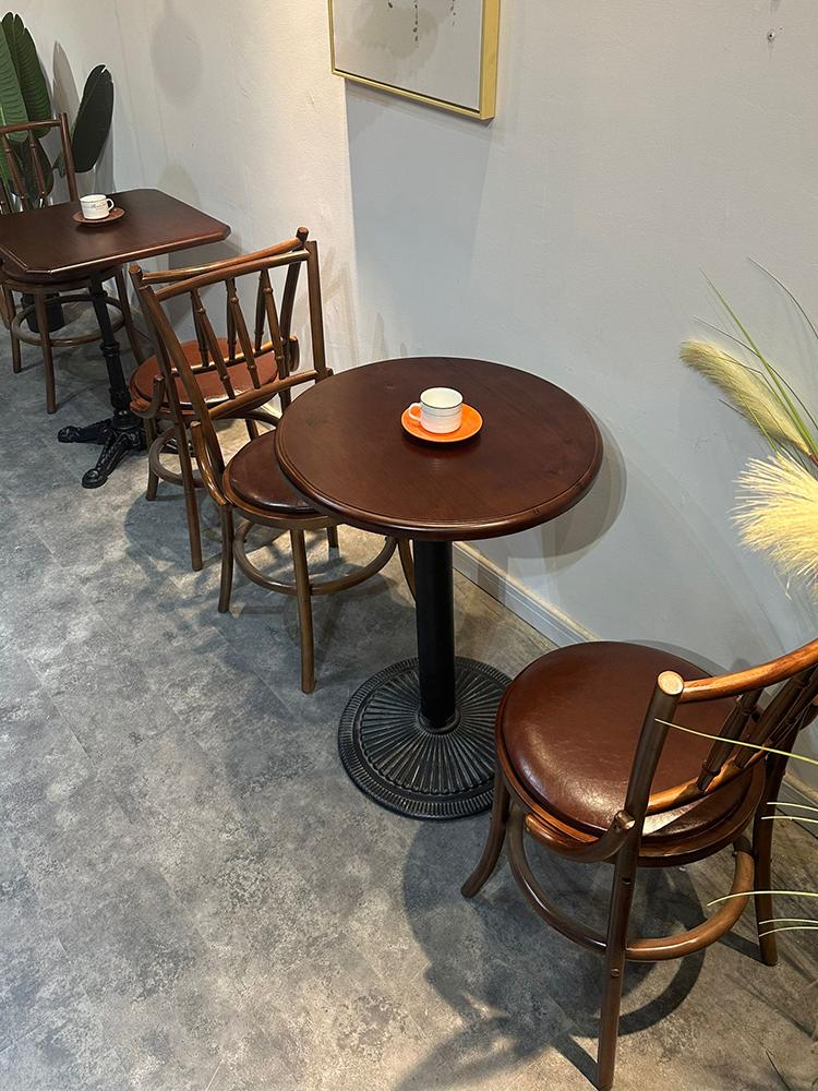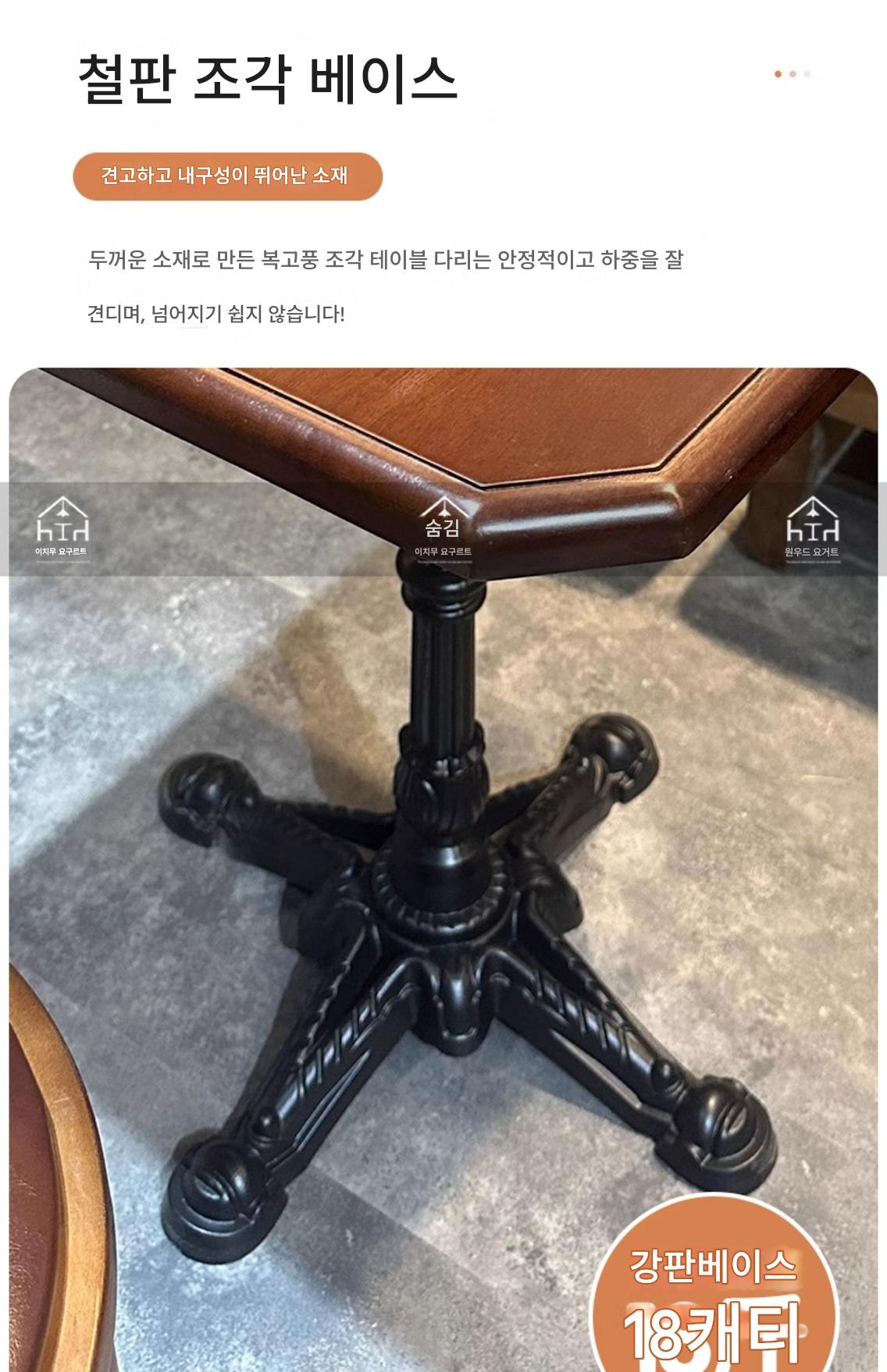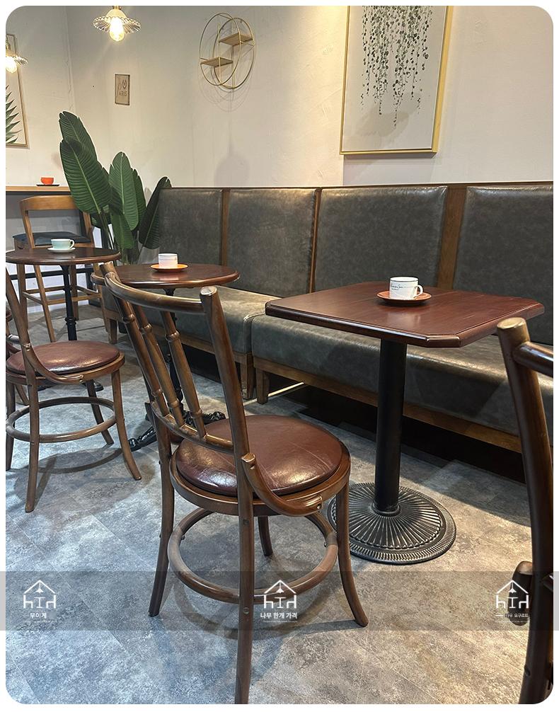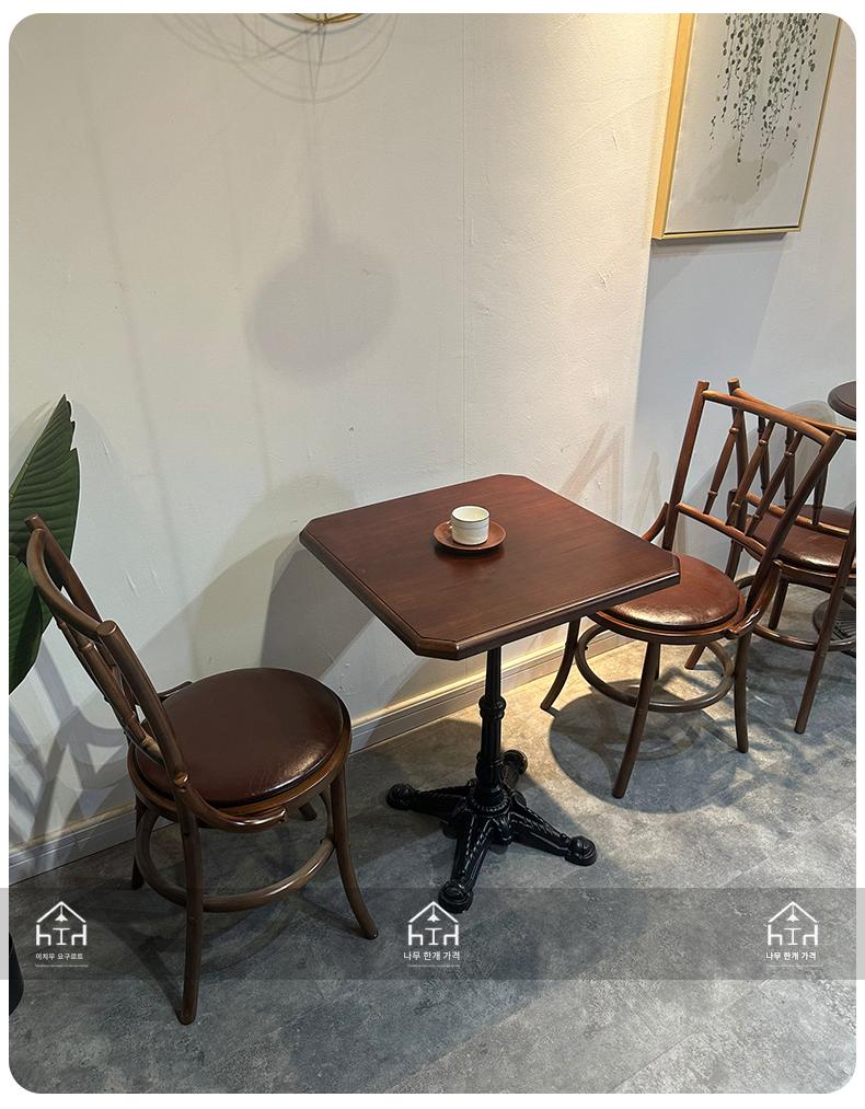 미국 레트로 카페 솔리드 우드 테이블과 의자 조합 케이터링 스낵 디저트 숍 부스 소파 서양식 레스토랑 사각형 원형 테이블