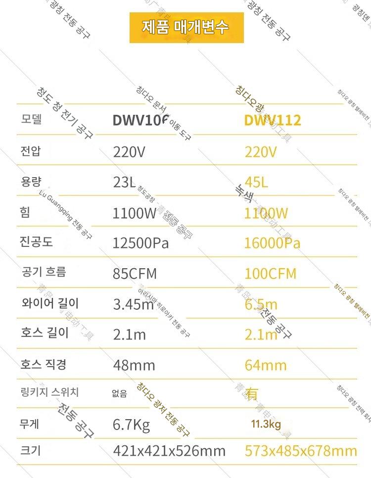 미국 DEWALT DWV106 전기 진공 청소기 DWV112 고출력 습식 및 건식 산업용 집진기