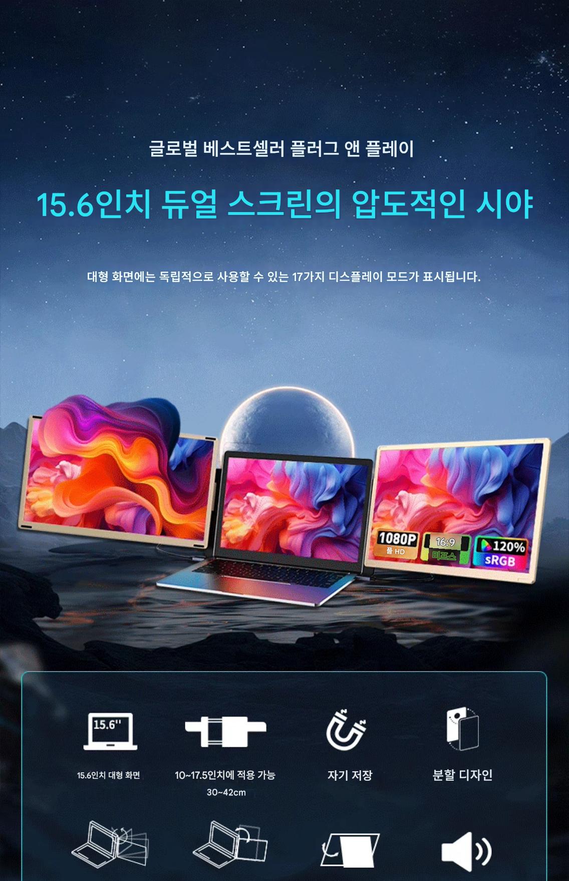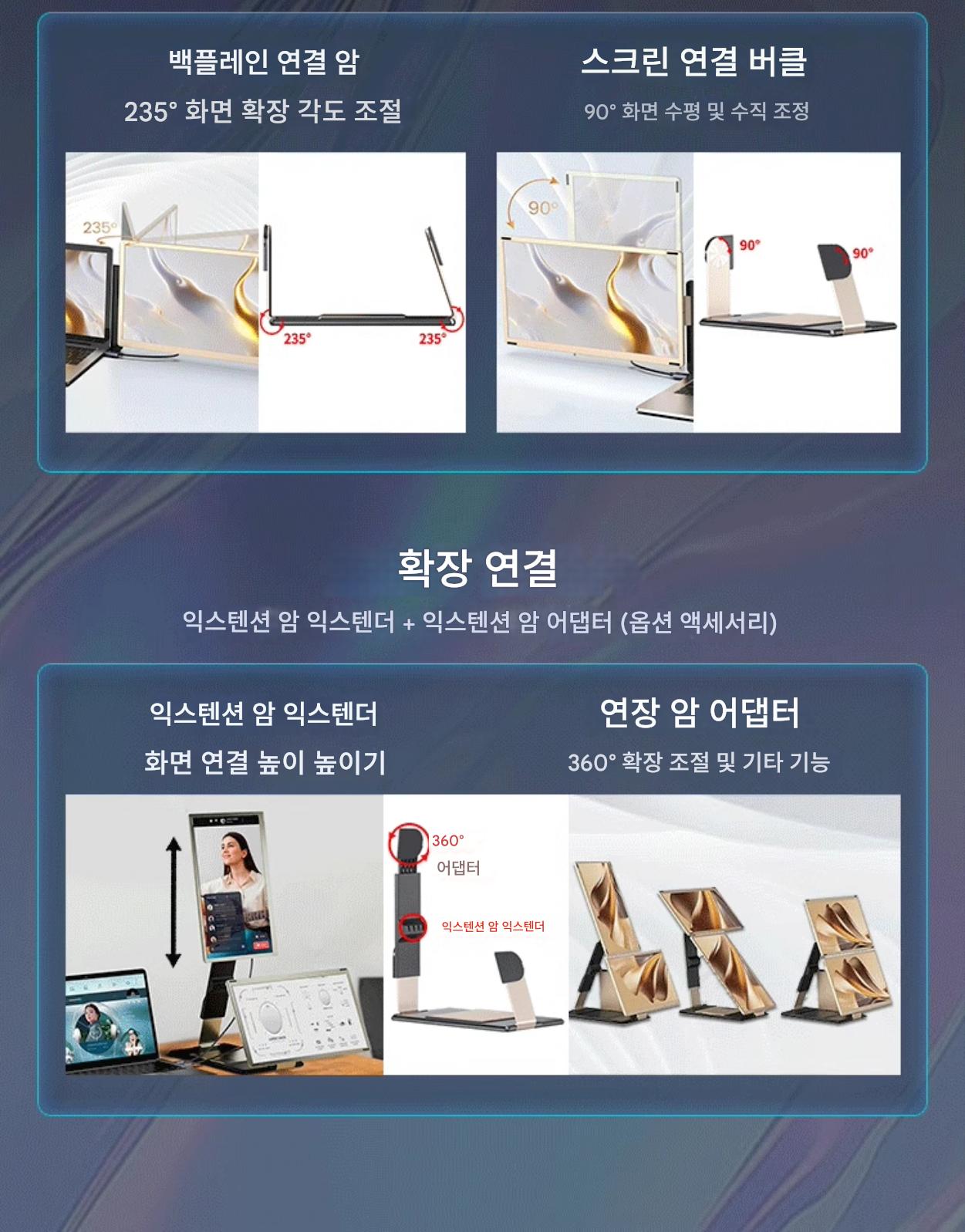 미국 KEFEYA 듀얼 스크린 편리한 디스플레이 노트북 분할 화면 확장 서브 스크린 폴딩 3 스크린 주식 거래