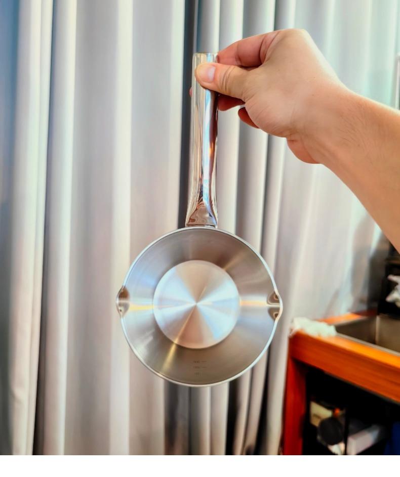 미니 식품 보충 냄비 18/10 스테인리스 스틸 3겹 스틸 낙하 방지 질식 오일 튀김 우유 냄비 12.5cm 뜨거운 우유 장난감 냄비