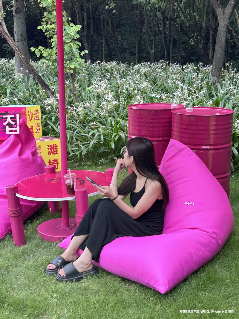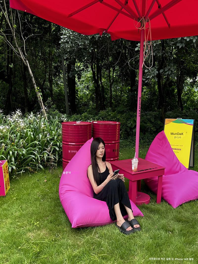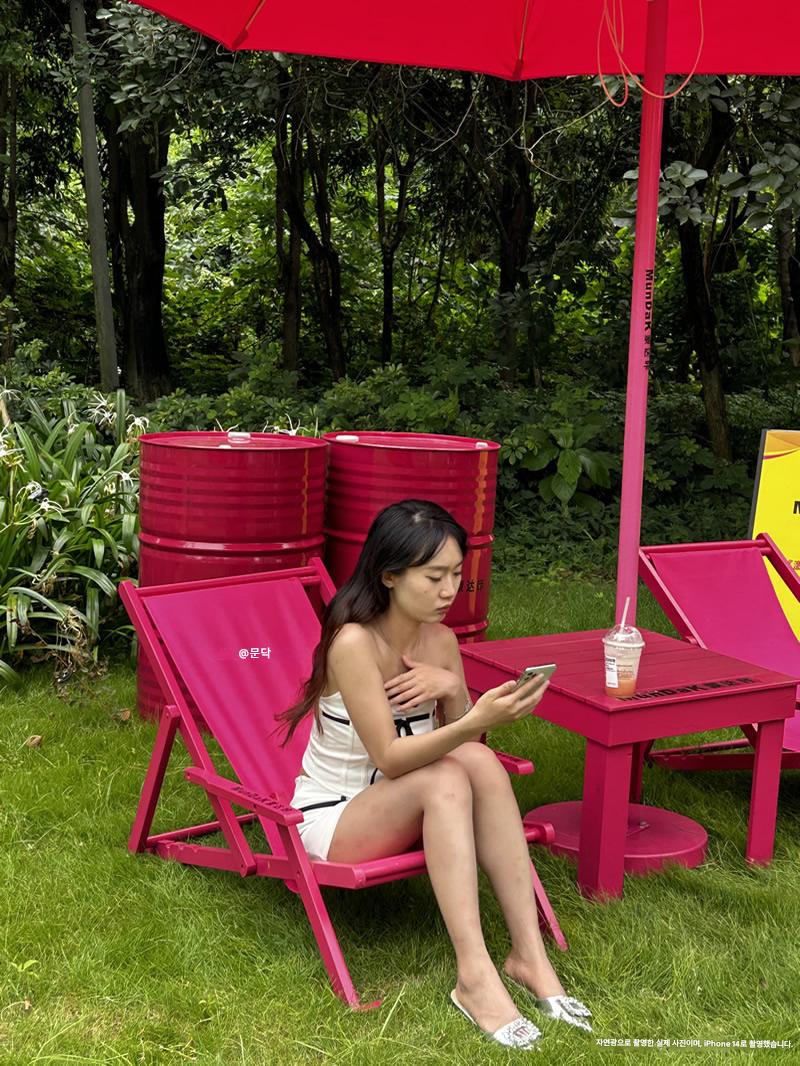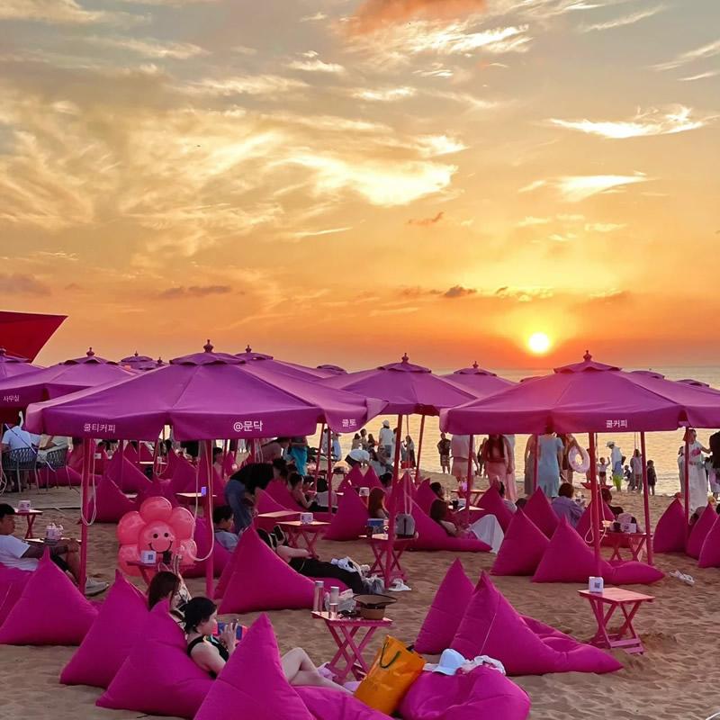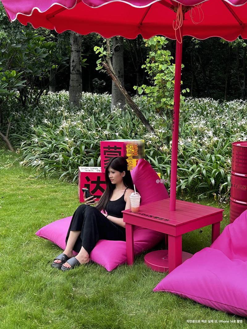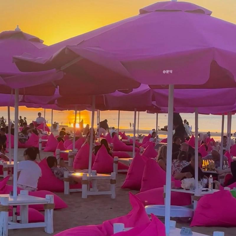 바비 핑크 네트 레드 파라솔 비치 라운지 의자 비치 캠프 테이블 의자 우산을 만들기 위해 맞춤형 로즈 레드 비치 캠프
