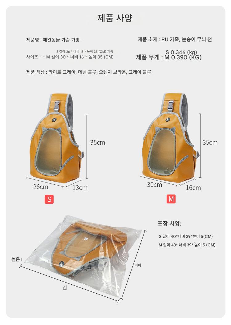 반려동물 외출 가방 싱글 숄더백 가슴 크로스바디백 고양이 강아지 소형견 휴대용 사이드백 사이클링