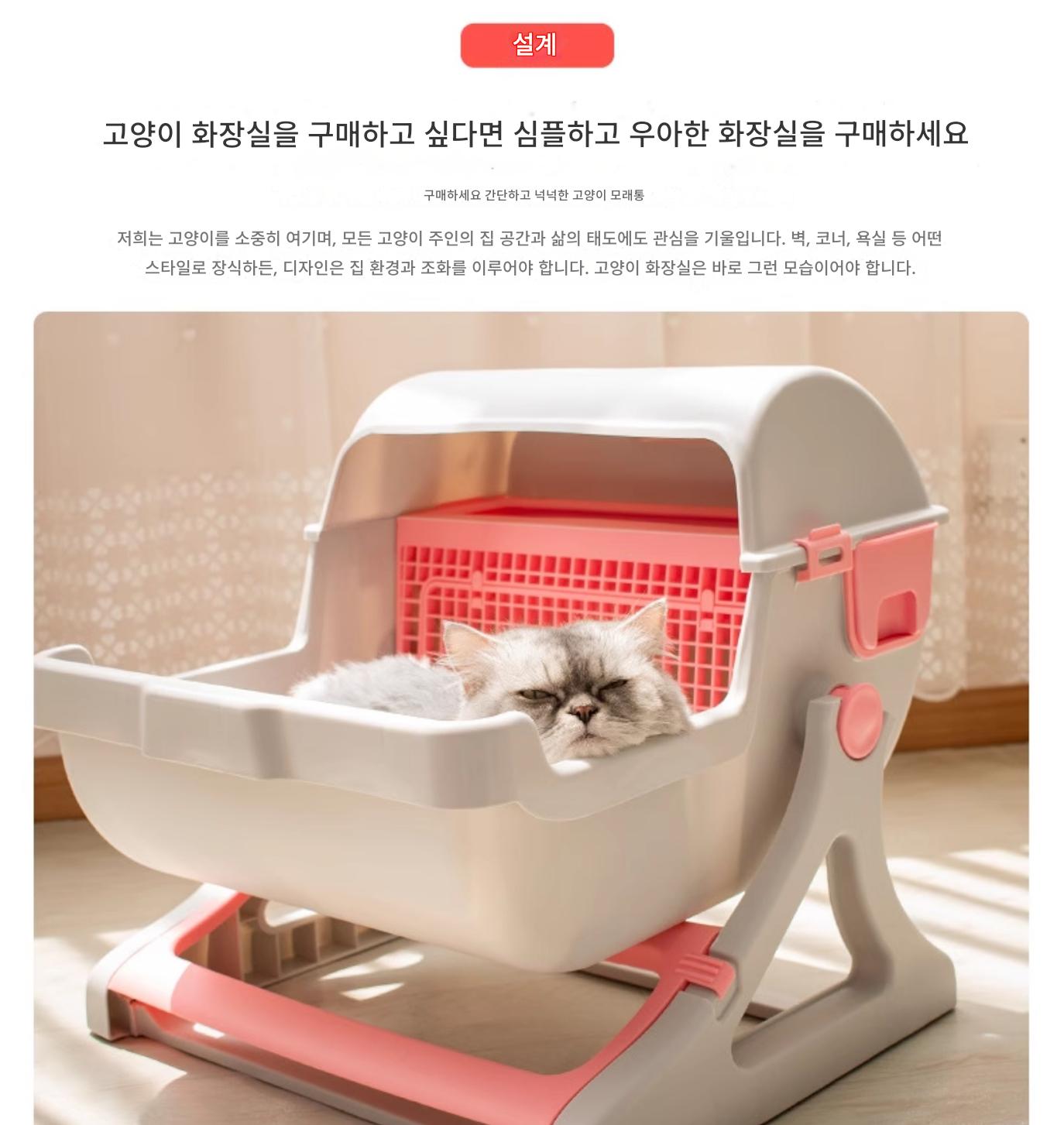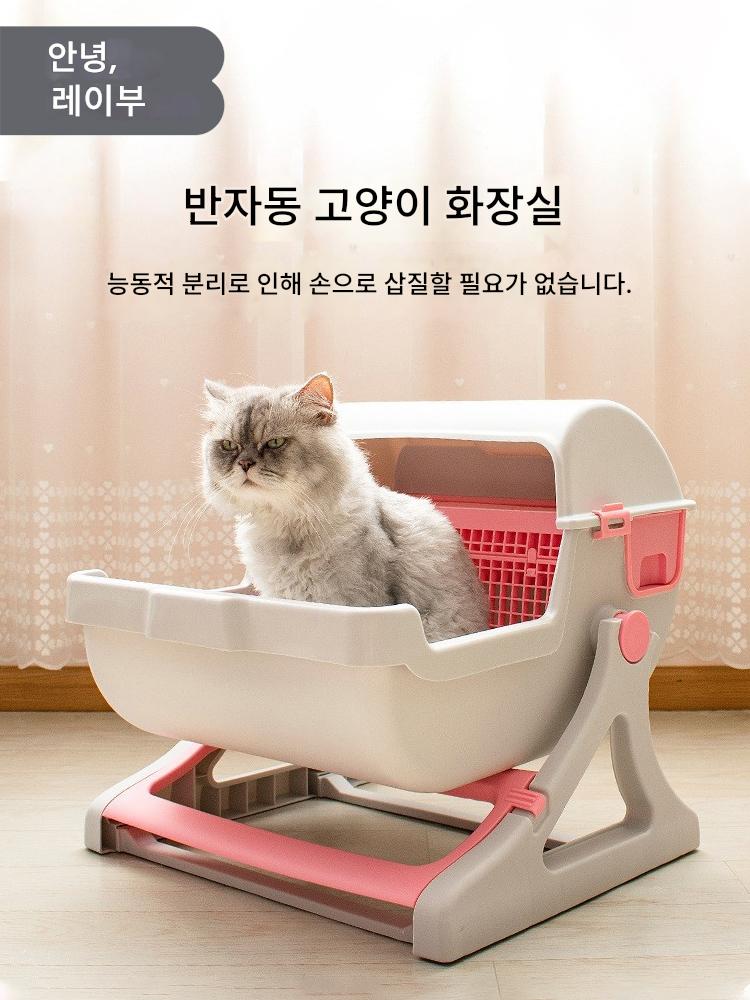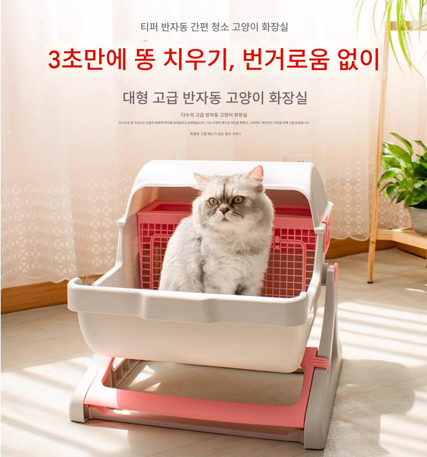 반자동, 세척이 간편한 고양이용 변기, 대형, 반밀폐형, 모래방지, 고양이 화장실, 반려동물용품