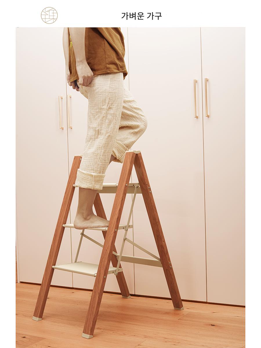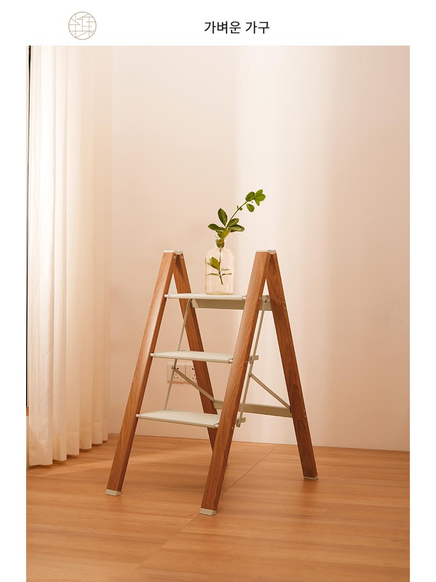 반지지아 오리지널 원목색 가정용 사다리 다기능 접이식 사다리 발코니 꽃꽂이 계단 확장 알루미늄 합금 발판 안정