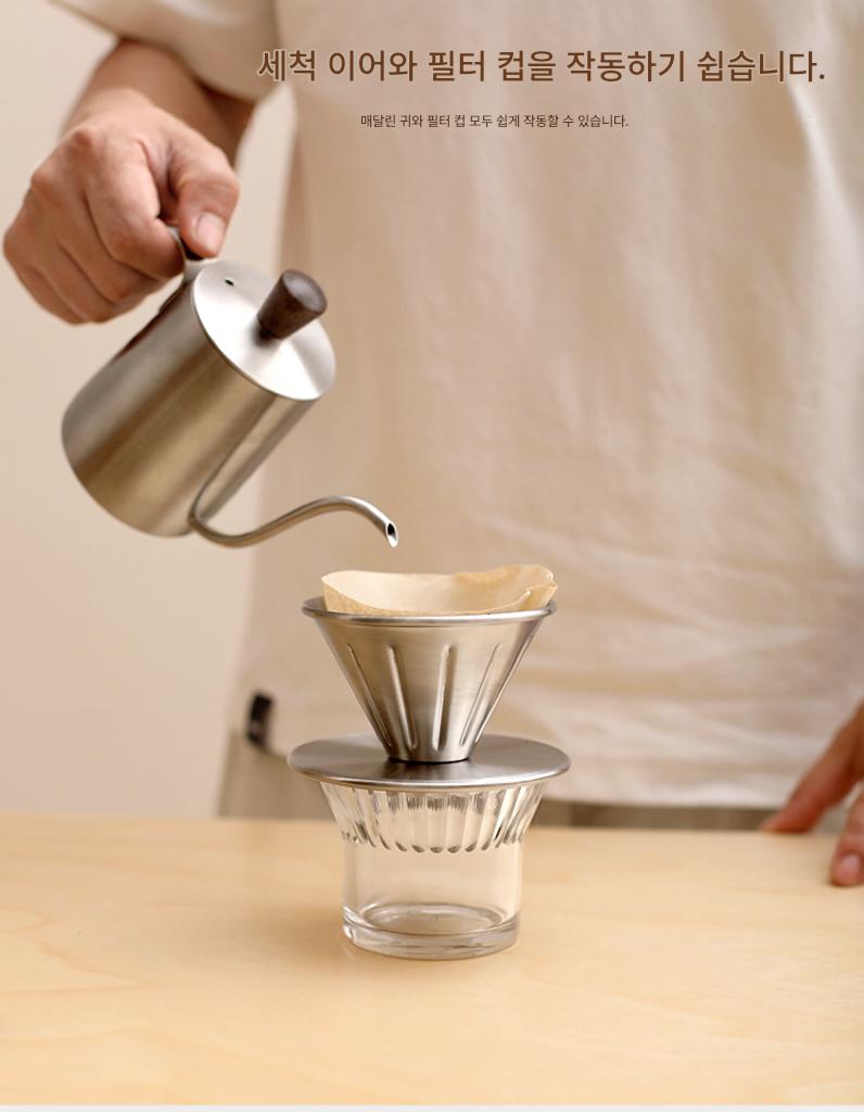 반지지아 핸드브루 커피포트 세트 드립필터컵 세트 V자형 필터컵 야외 캠핑 핸드브루 커피포트