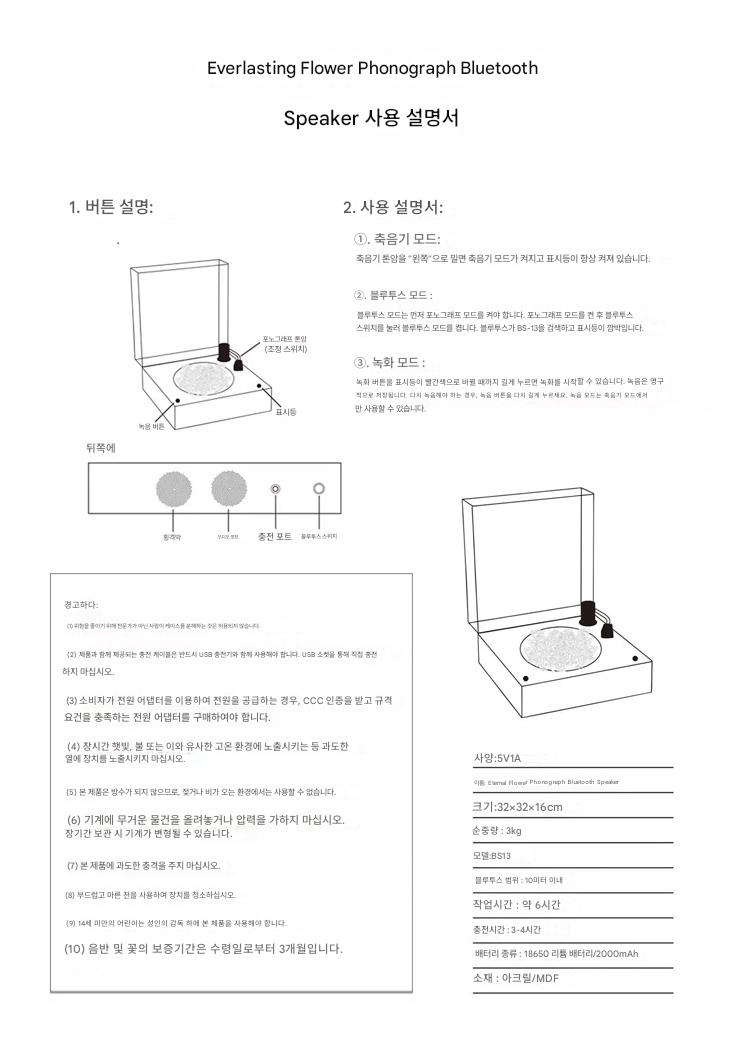 “발렌타인데이 고백 불멸의 꽃 축음기 블루투스 스피커 진짜 꽃 장미 여자친구 생일 베프 결혼 선물”의 첫 상품평을 남겨 주세요