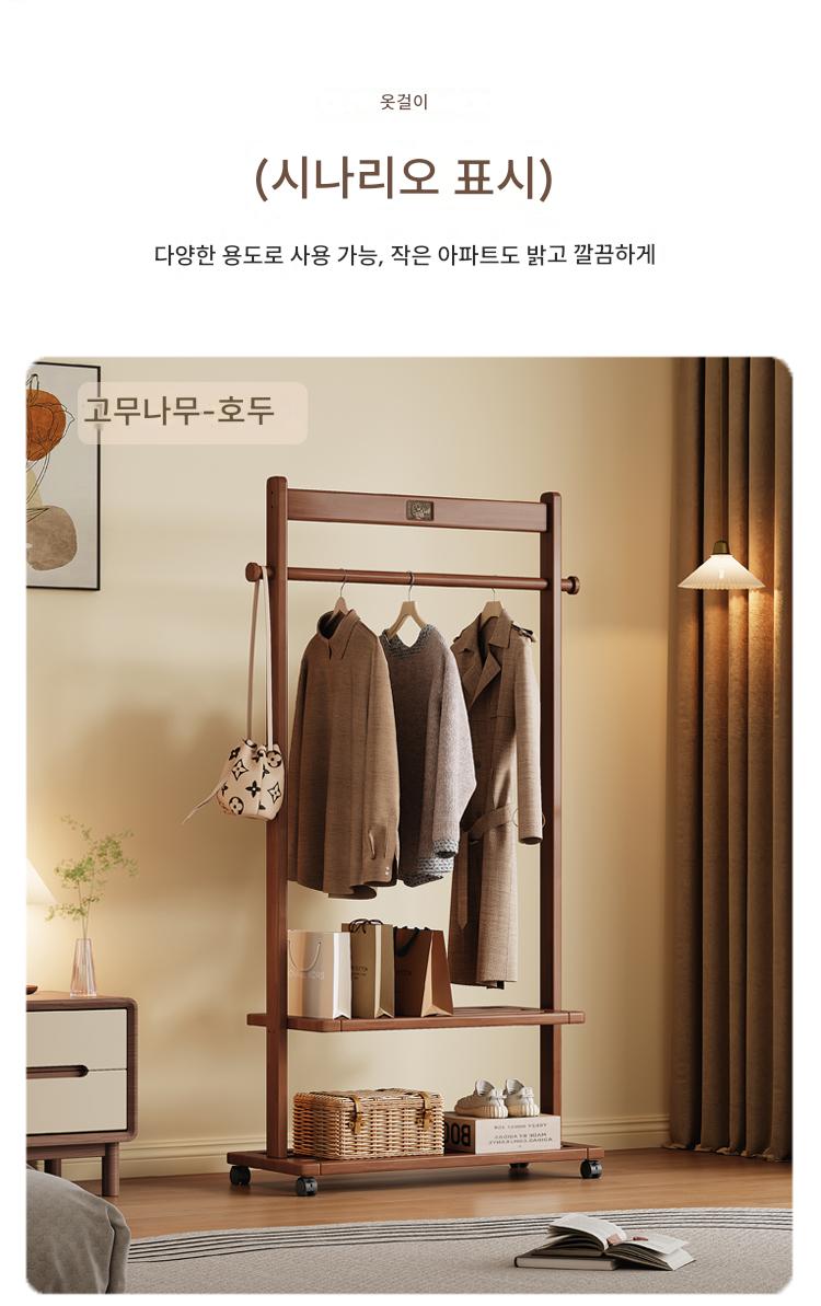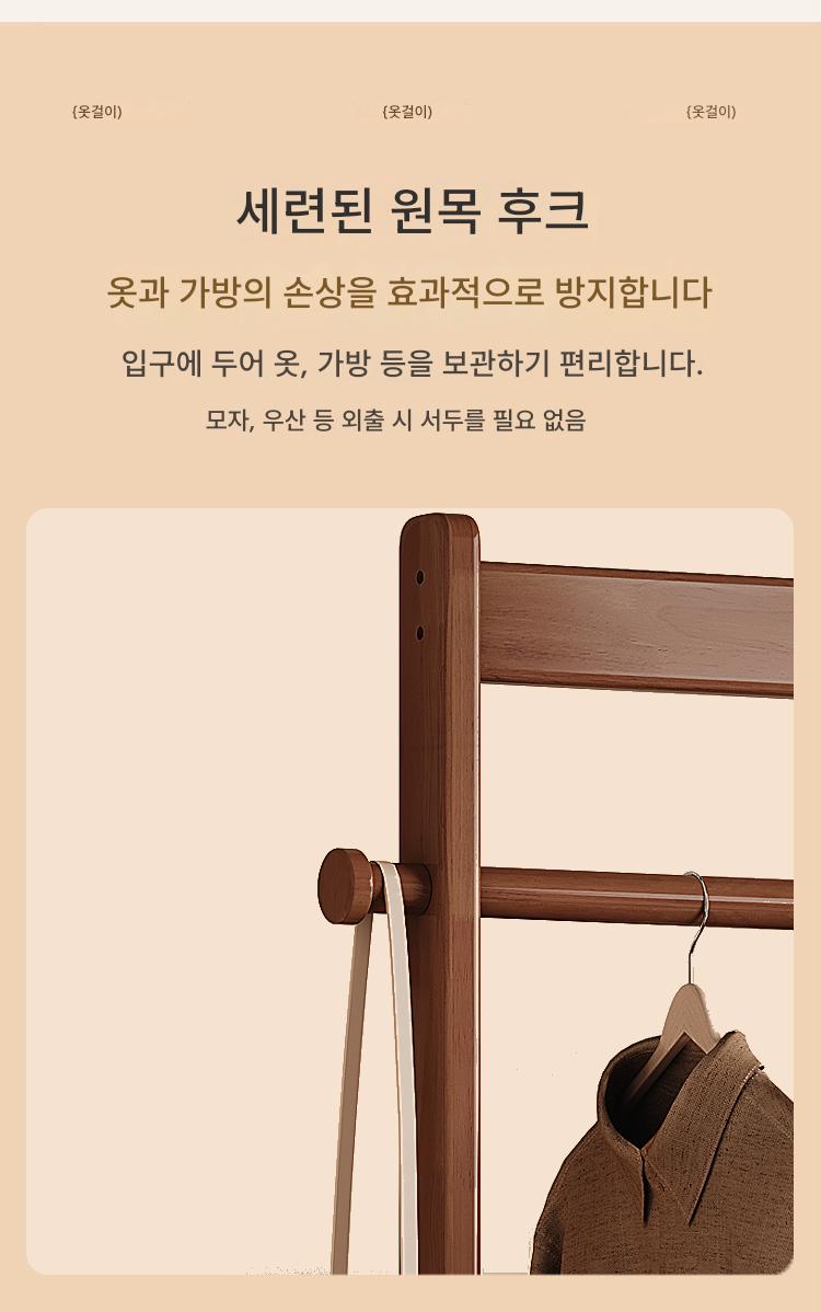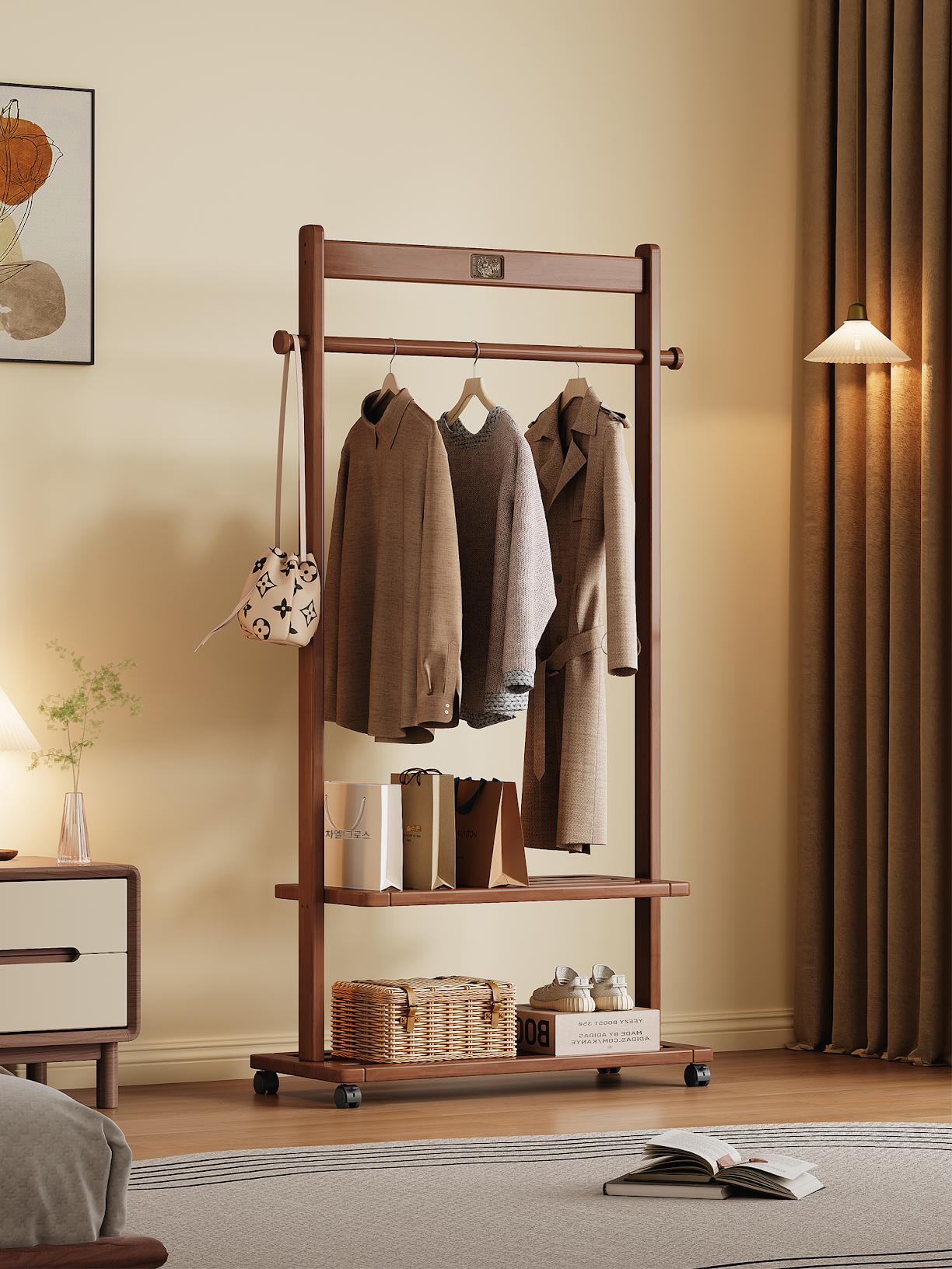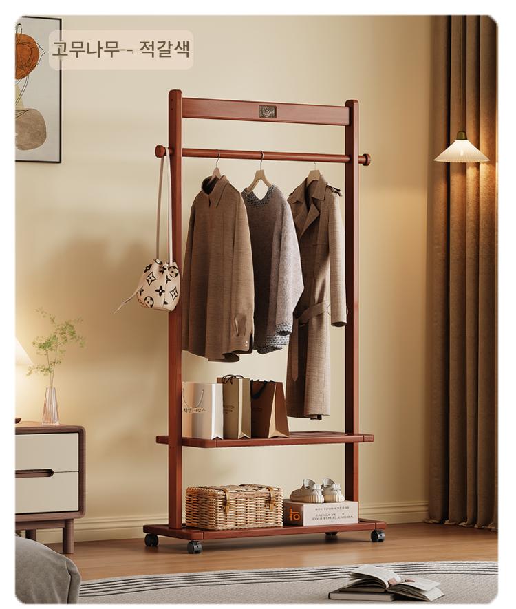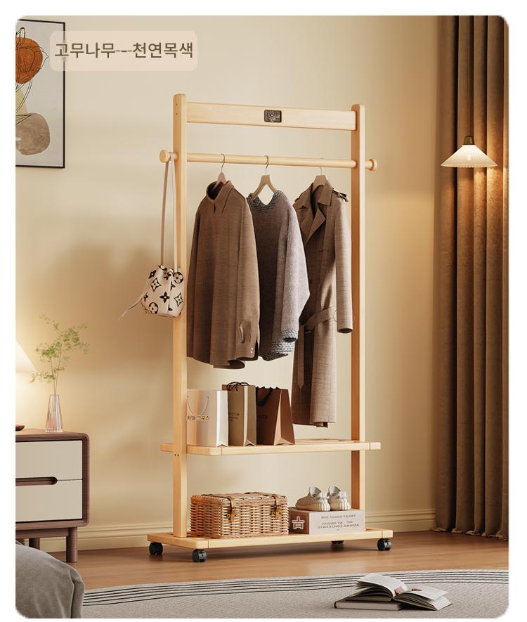 밤에 공간을 차지하지 않는 견고한 나무 옷걸이 바닥 침실 가구 모바일 코트 랙 침대 옆 옷걸이