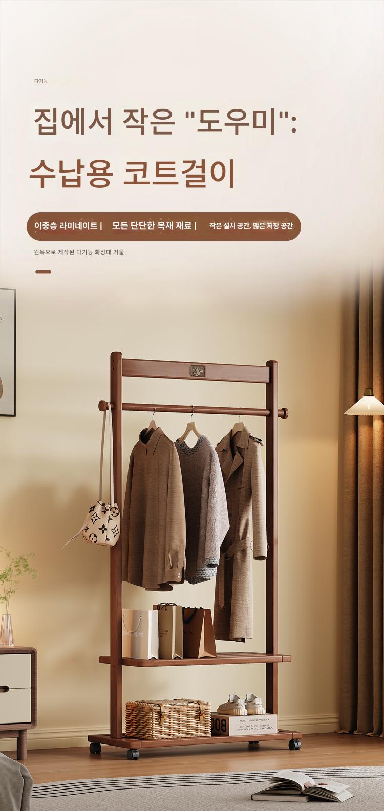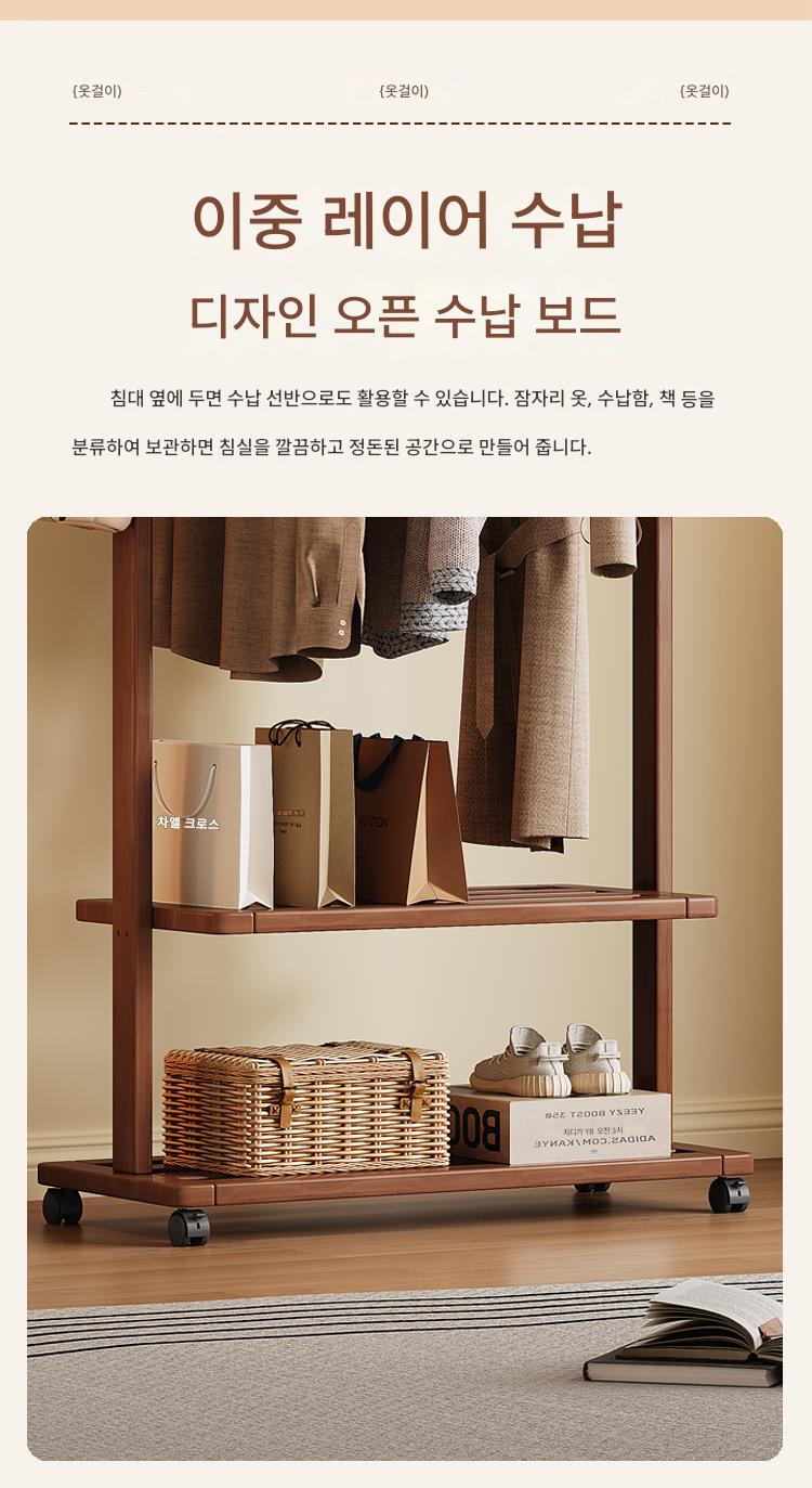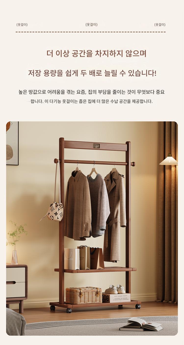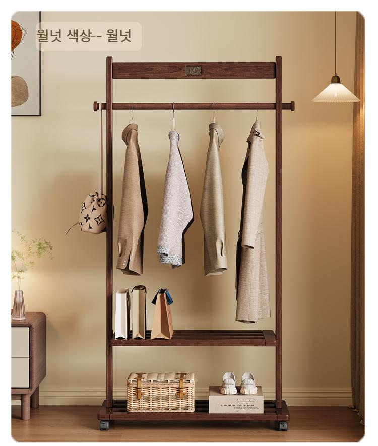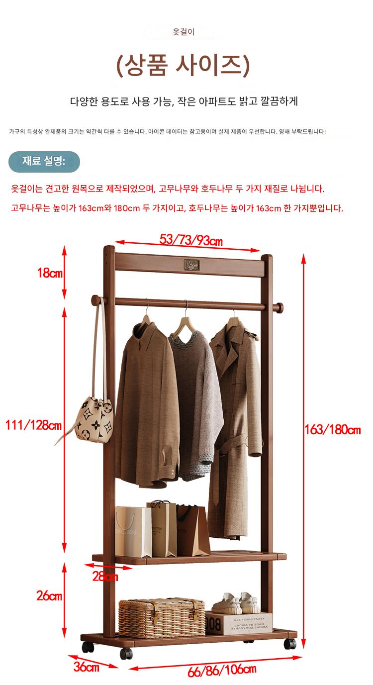 밤에 공간을 차지하지 않는 견고한 나무 옷걸이 바닥 침실 가구 모바일 코트 랙 침대 옆 옷걸이