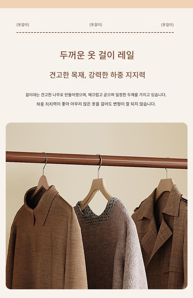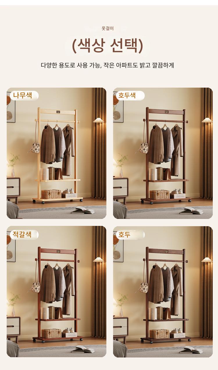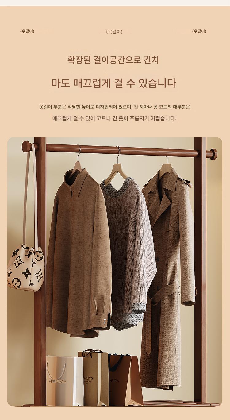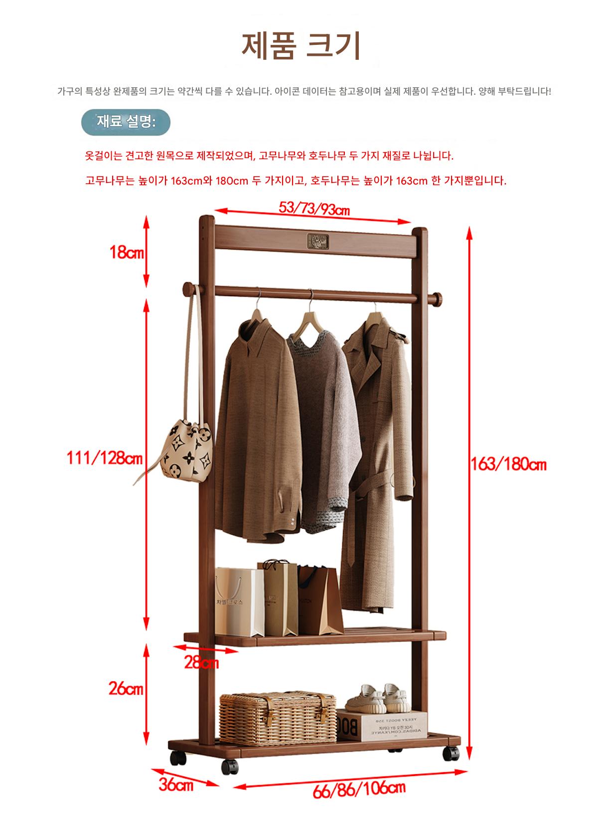 밤에 공간을 차지하지 않는 견고한 나무 옷걸이 바닥 침실 가구 모바일 코트 랙 침대 옆 옷걸이