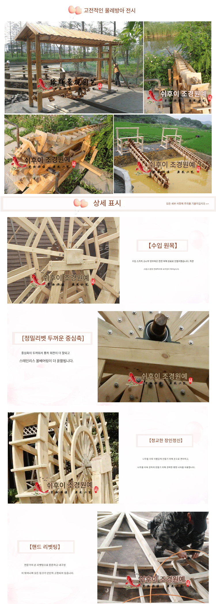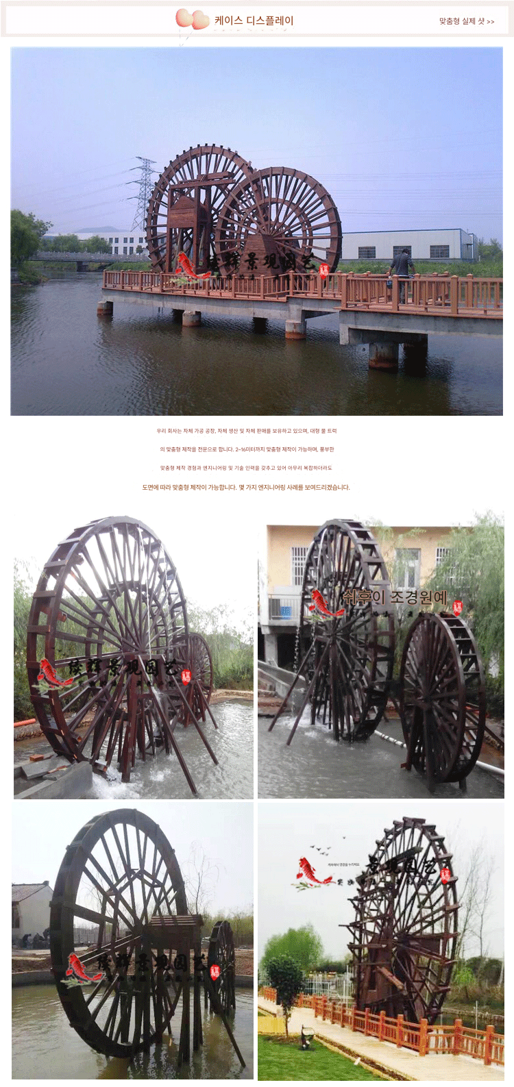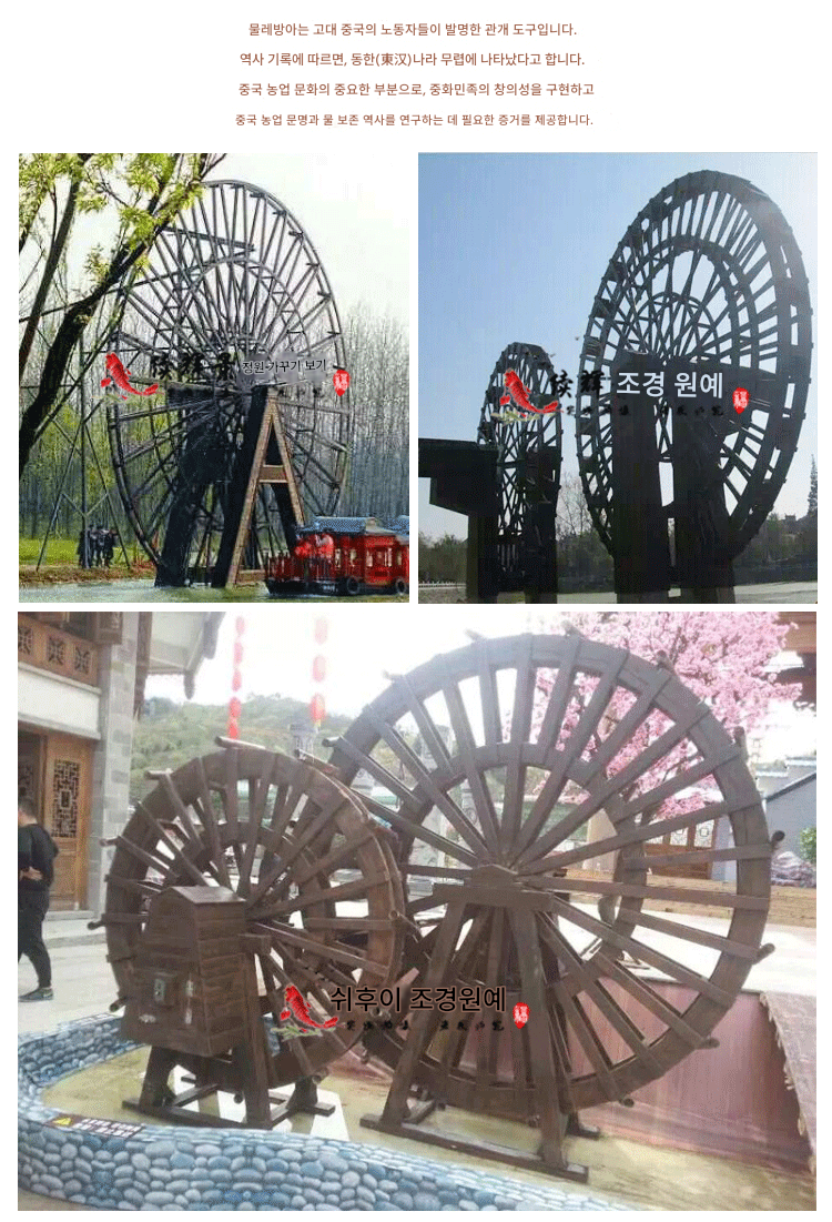 방부목 유치원 어린이 물레방아 발 물레방아 용골 물레방아 수동 크랭크 물레방아 용골 물레방아 전기 물레방아