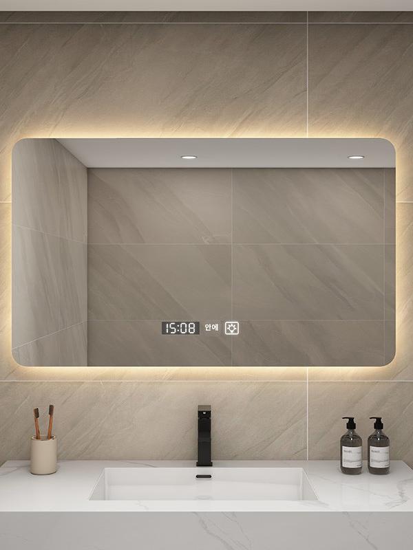 백라이트 스마트 거울 터치 스크린 벽걸이 욕실 LED 조명 드레싱 안개 방지 욕실 거울 화장실 화장 거울