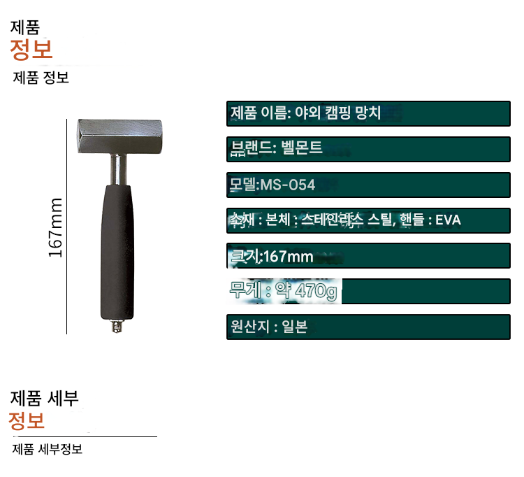 벨몬트 야외 캠핑 스테인리스 스틸 캠프 해머 그라운드 해머 일본산