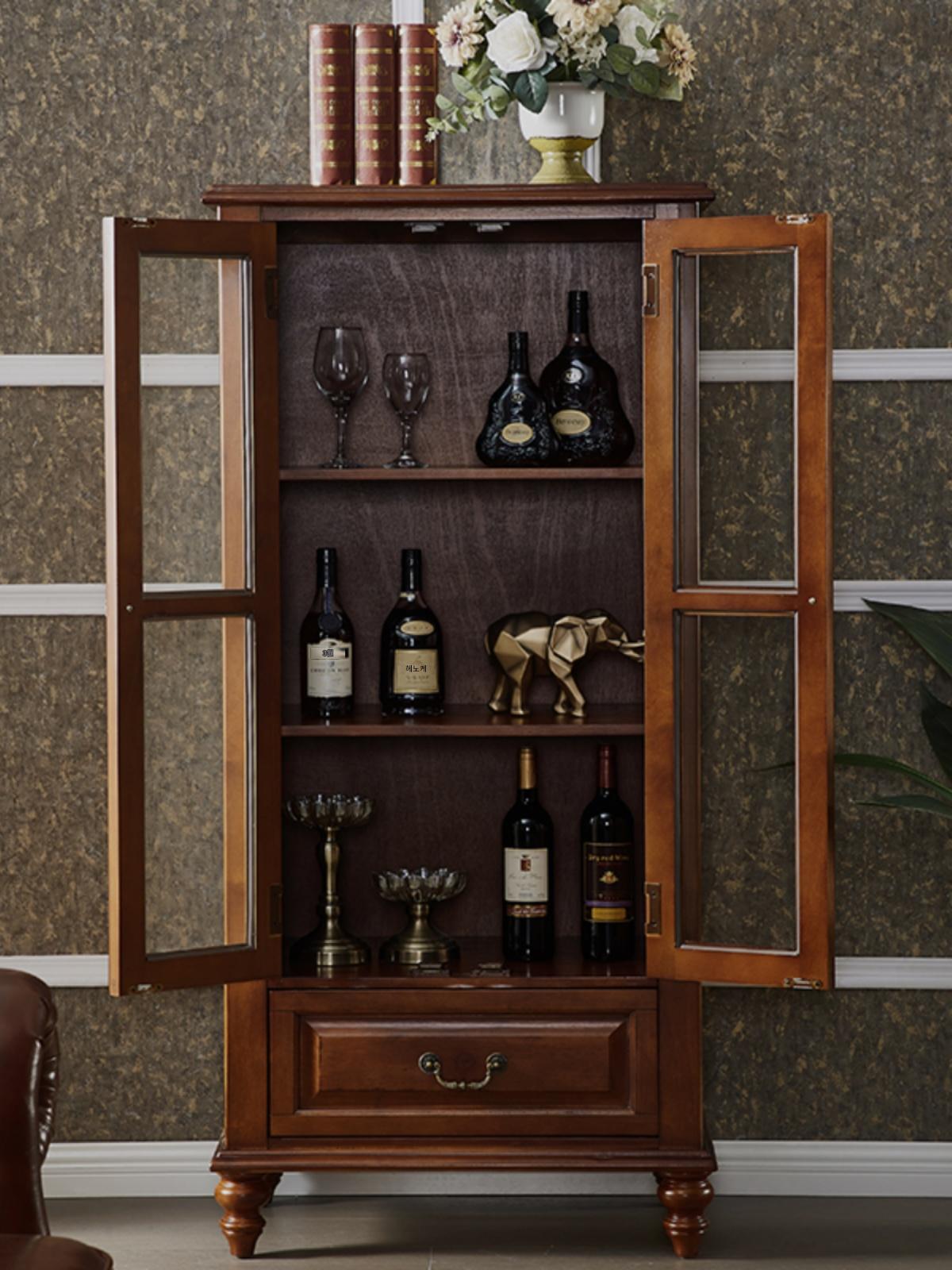 벽면 TV 사이드 캐비닛 거실 소형 책장 홈 더블 도어 수납 캐비닛 주방 수납 캐비닛에 대한 미국 스타일 견고한 나무 와인 캐비닛