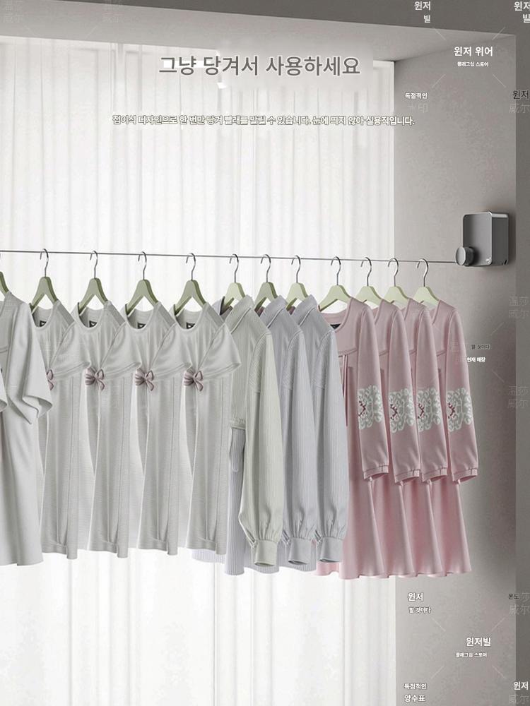 보이지 않는 빨랫줄 호텔 실내 및 실외 펀치 없는 발코니 욕실 옷 건조대 망원형 랙 이불 건조