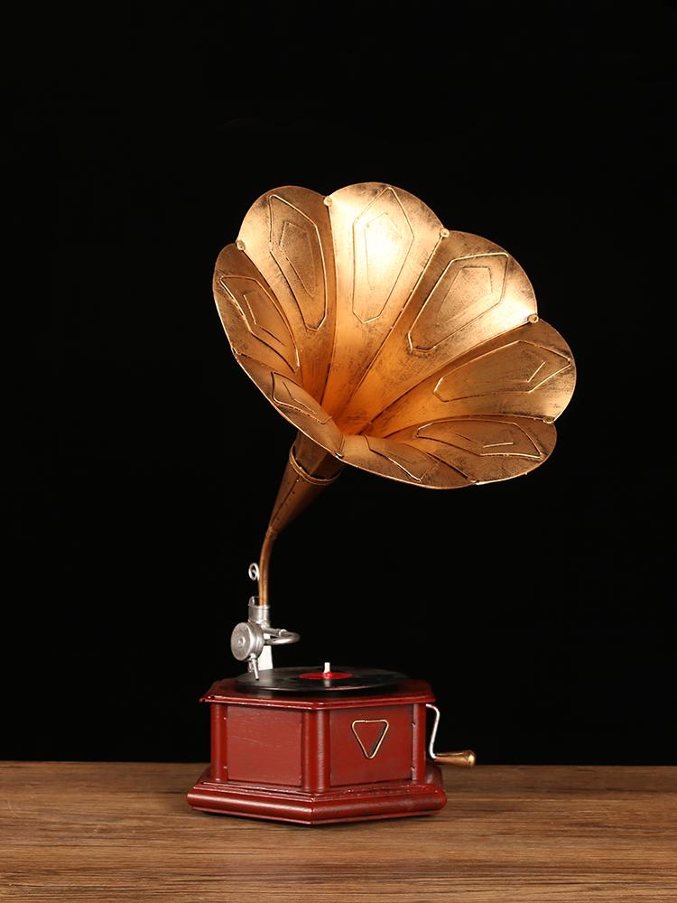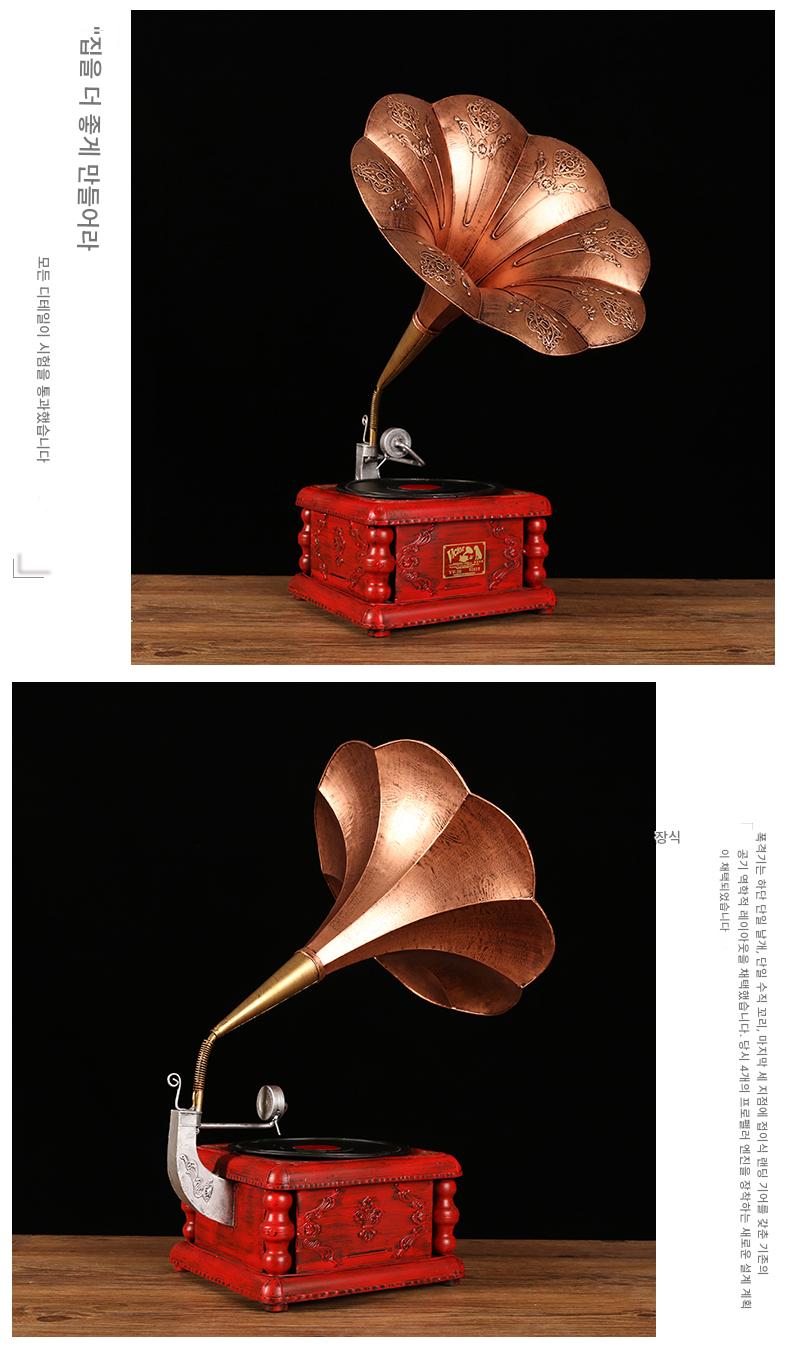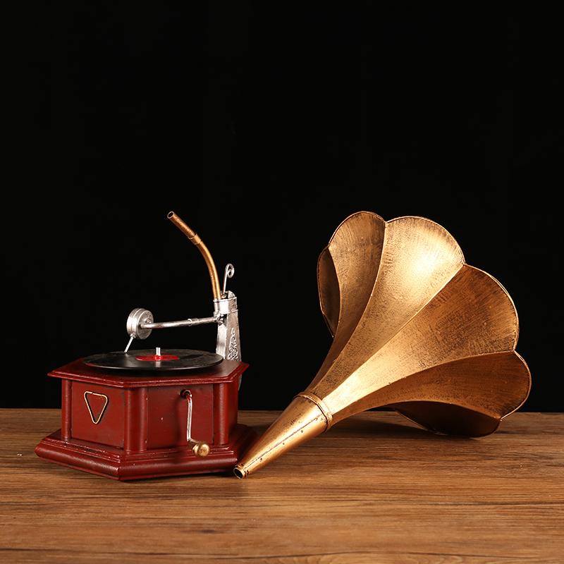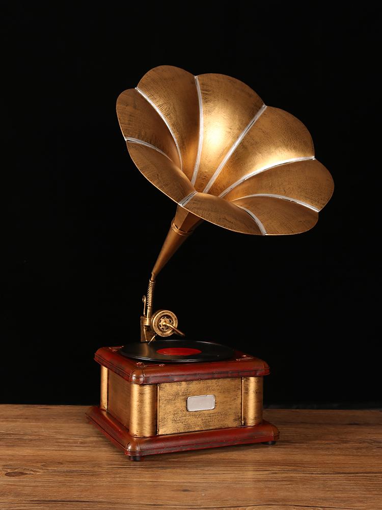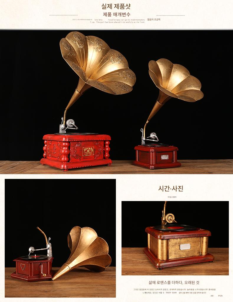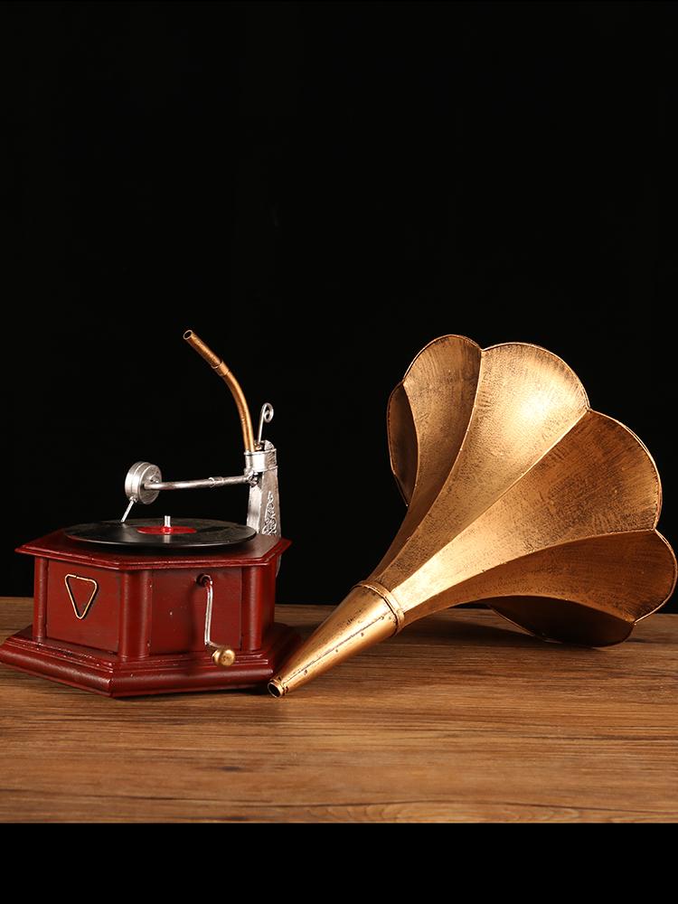 복고풍의 고풍스러운 축음기 모델 장식품 비닐 레코드 플레이어 홈 소프트 장식 사진 소품 거실 장식