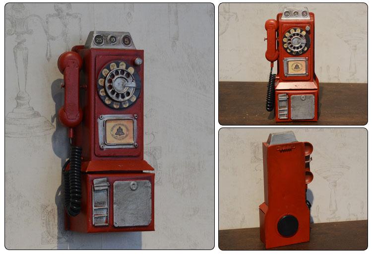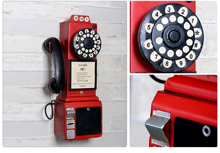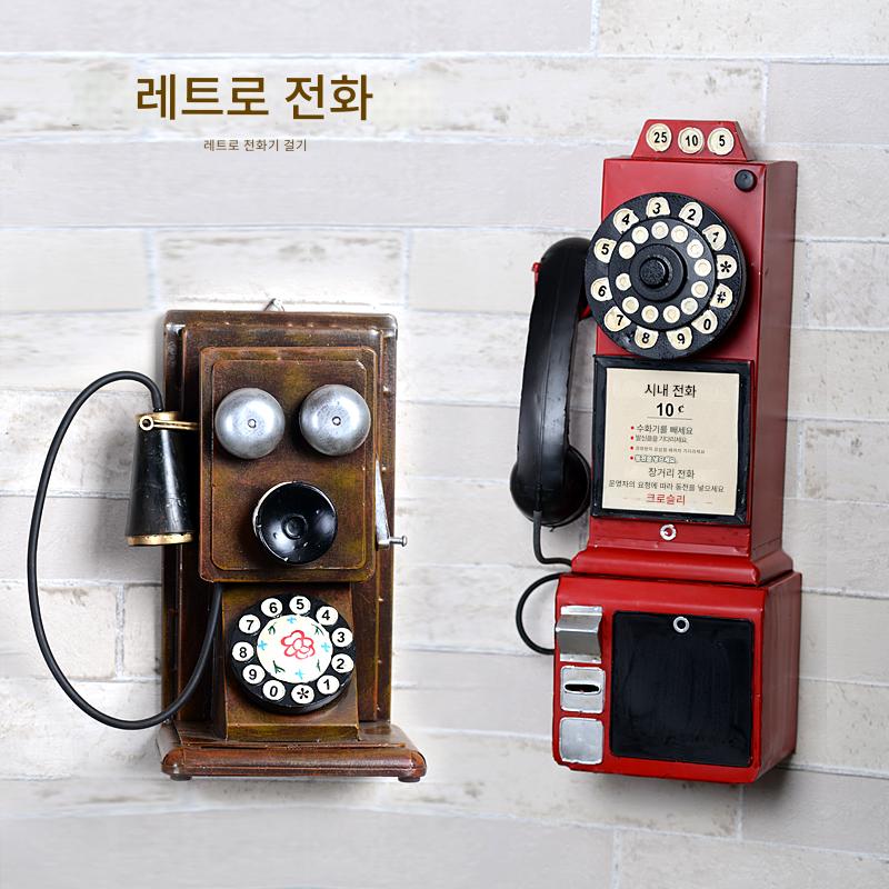 복고풍 고풍스러운 벽걸이 전화 모델 의류 매장 바 창문 장식 벽 장식 사진 소품