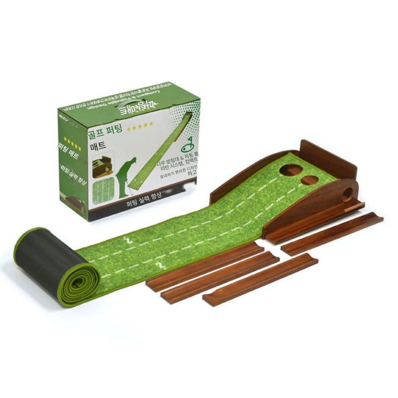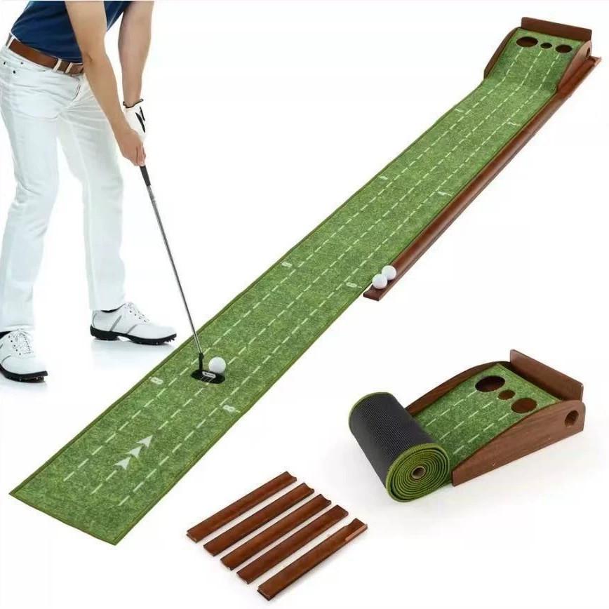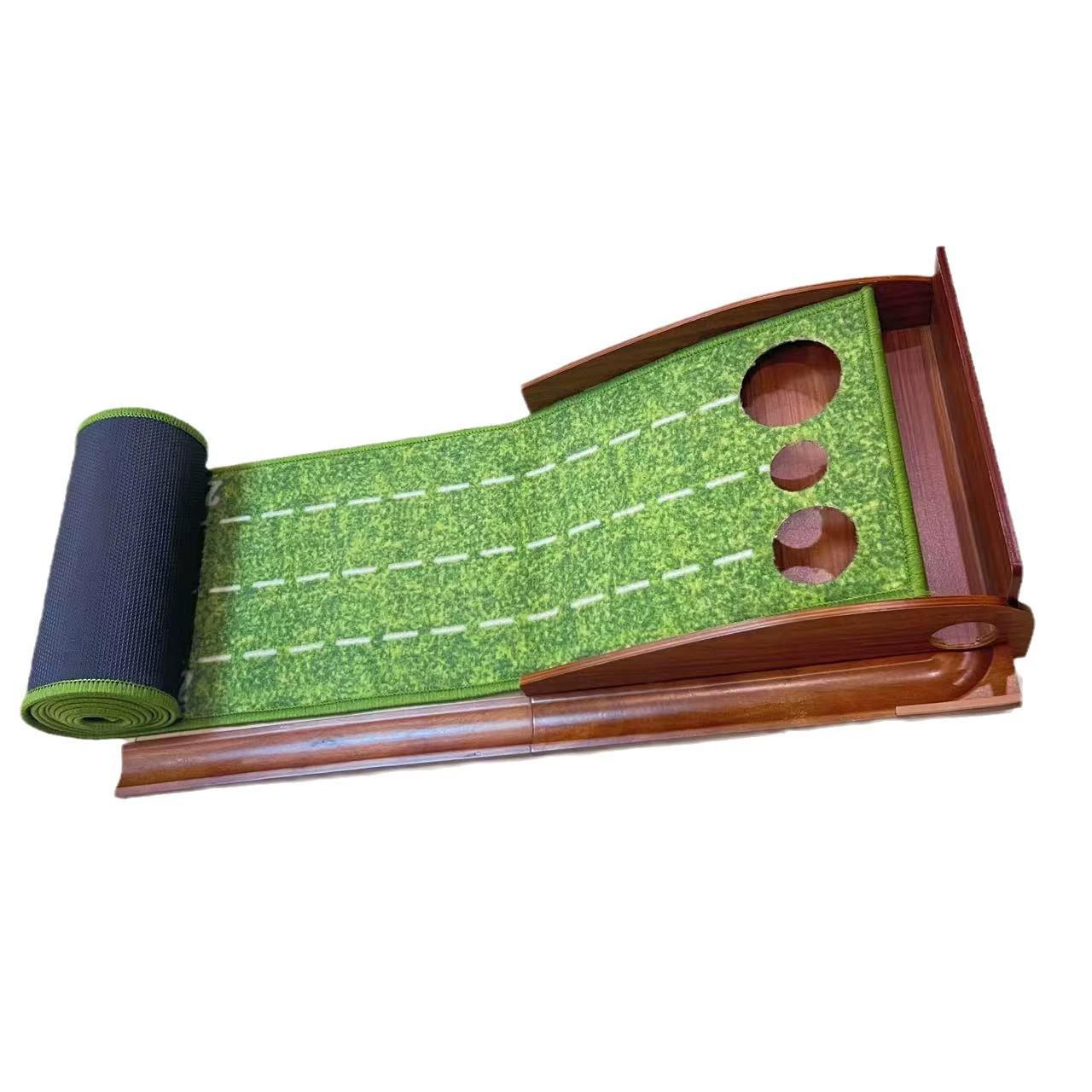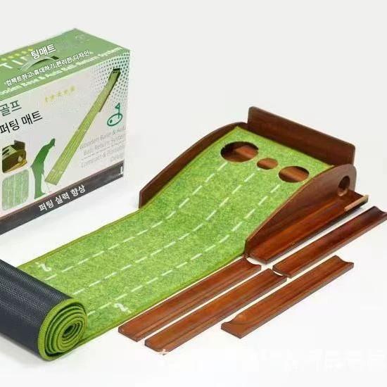 볼 리턴 트랙이 있는 새로운 골프 솔리드 우드 퍼팅 연습 도구 나일론 블랭킷 퍼팅 연습 블랭킷 사무실 홈