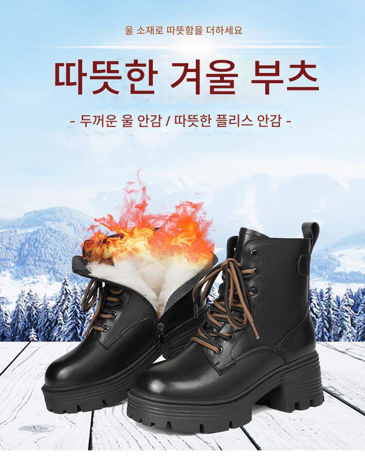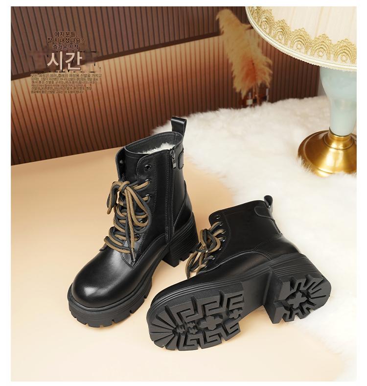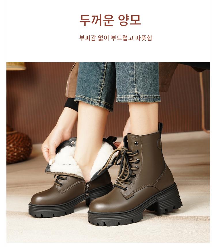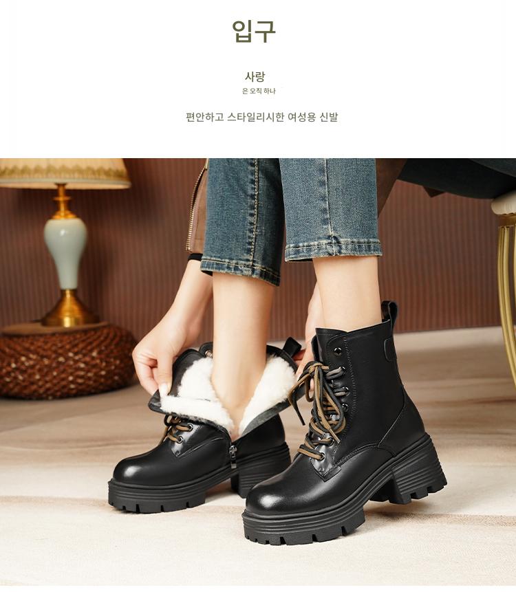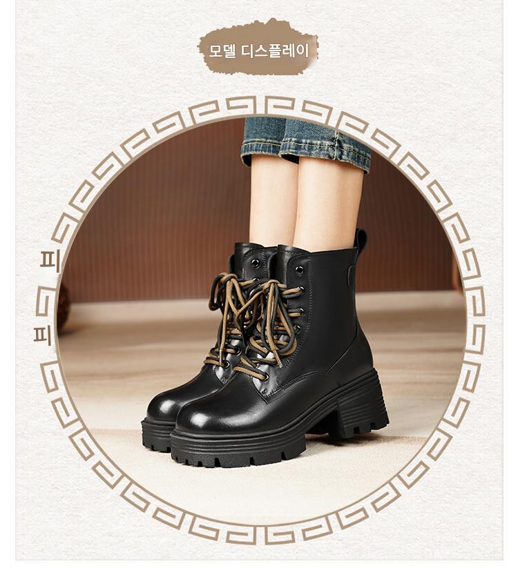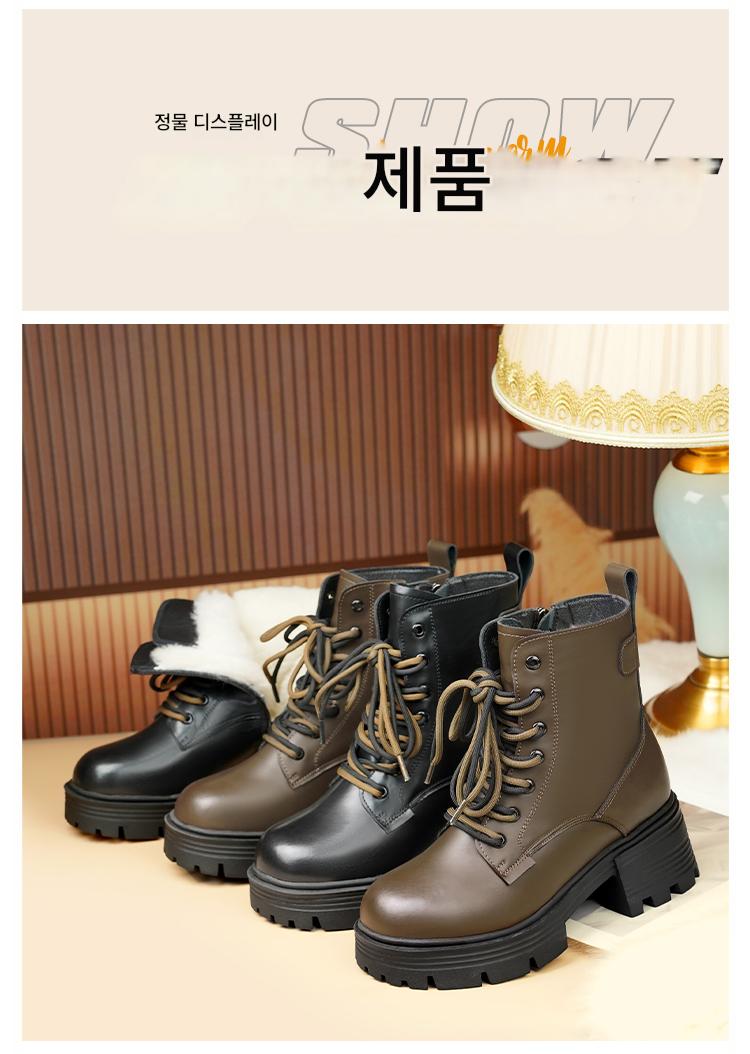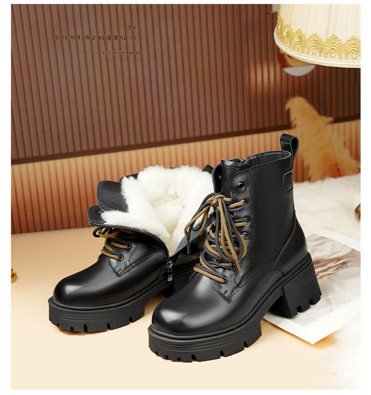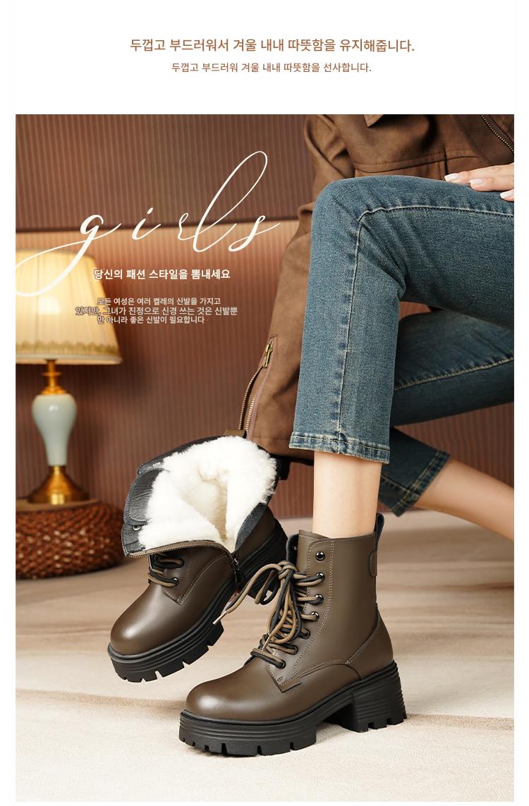 부츠 여성 2025 새로운 스타일 정품 가죽 겨울 두꺼운 굽 플러스 벨벳 마틴 부츠 두꺼운 바닥 짧은 부츠 울 하이힐 큰 면 여성 신발
