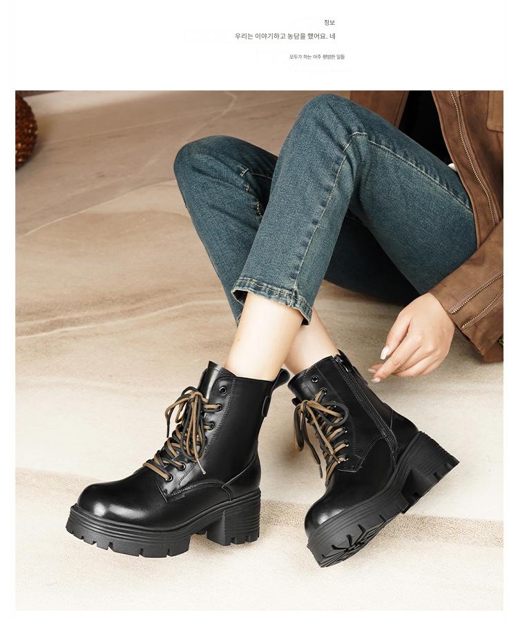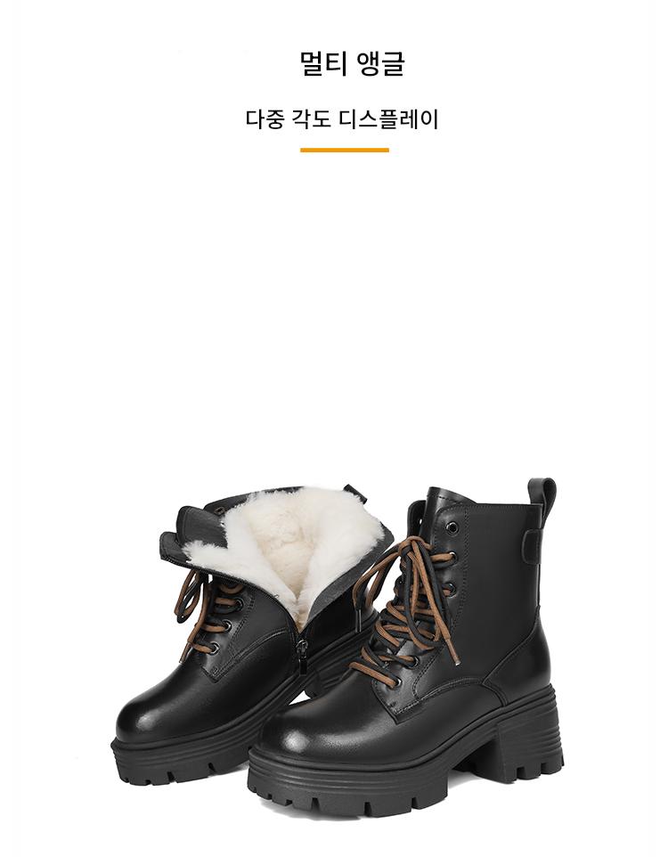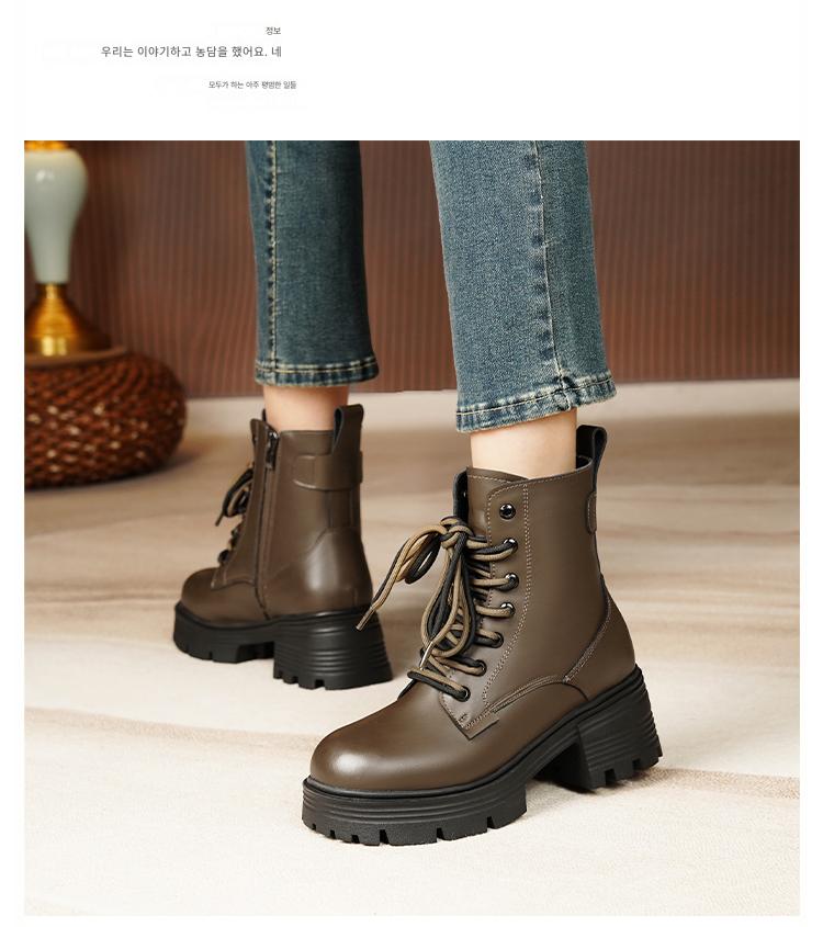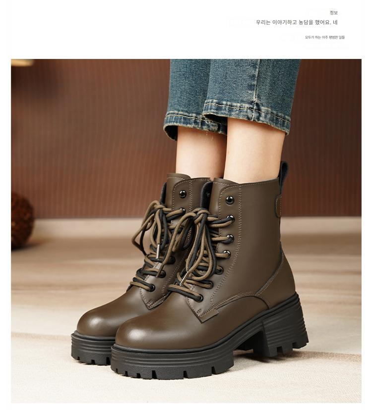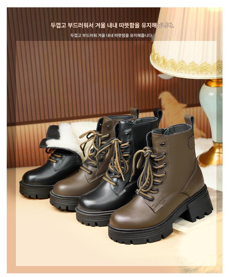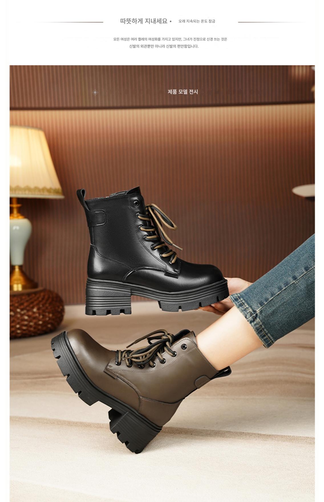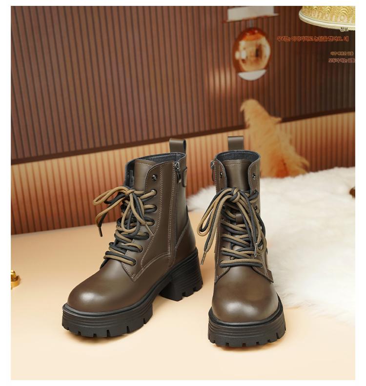 부츠 여성 2025 새로운 스타일 정품 가죽 겨울 두꺼운 굽 플러스 벨벳 마틴 부츠 두꺼운 바닥 짧은 부츠 울 하이힐 큰 면 여성 신발