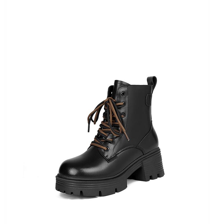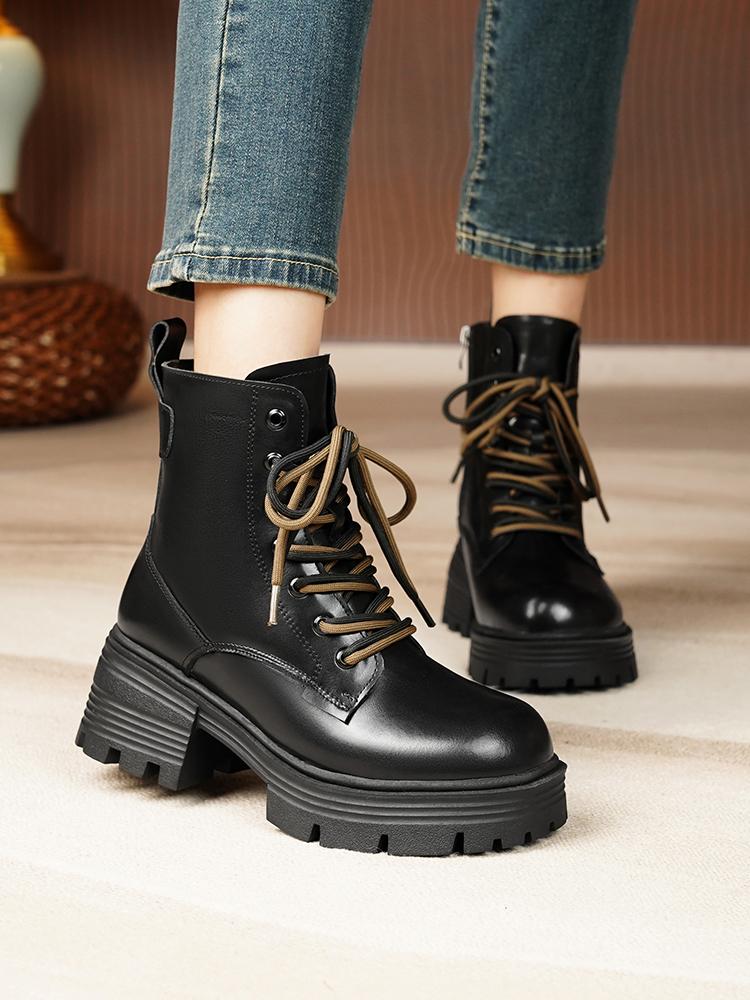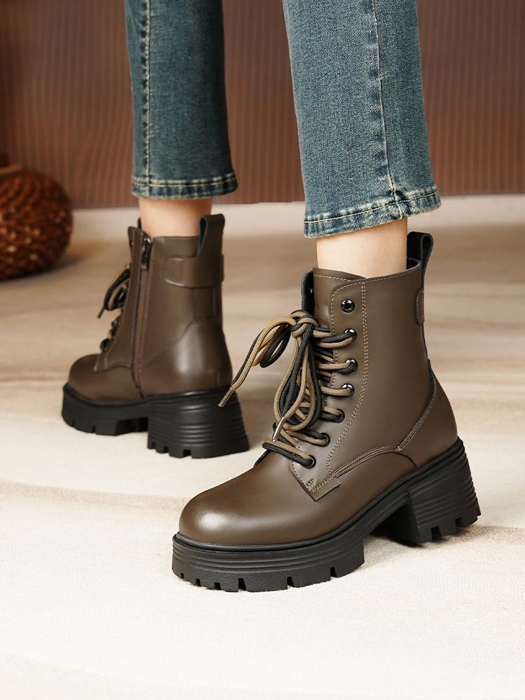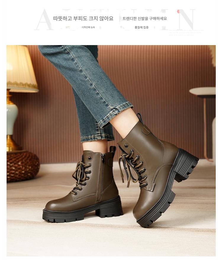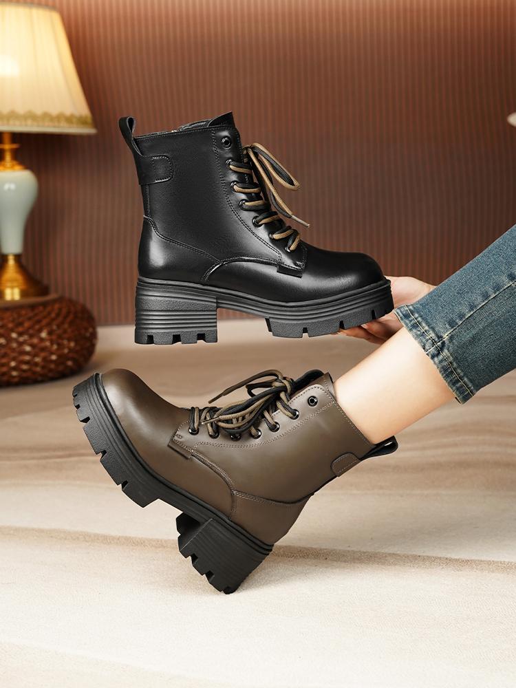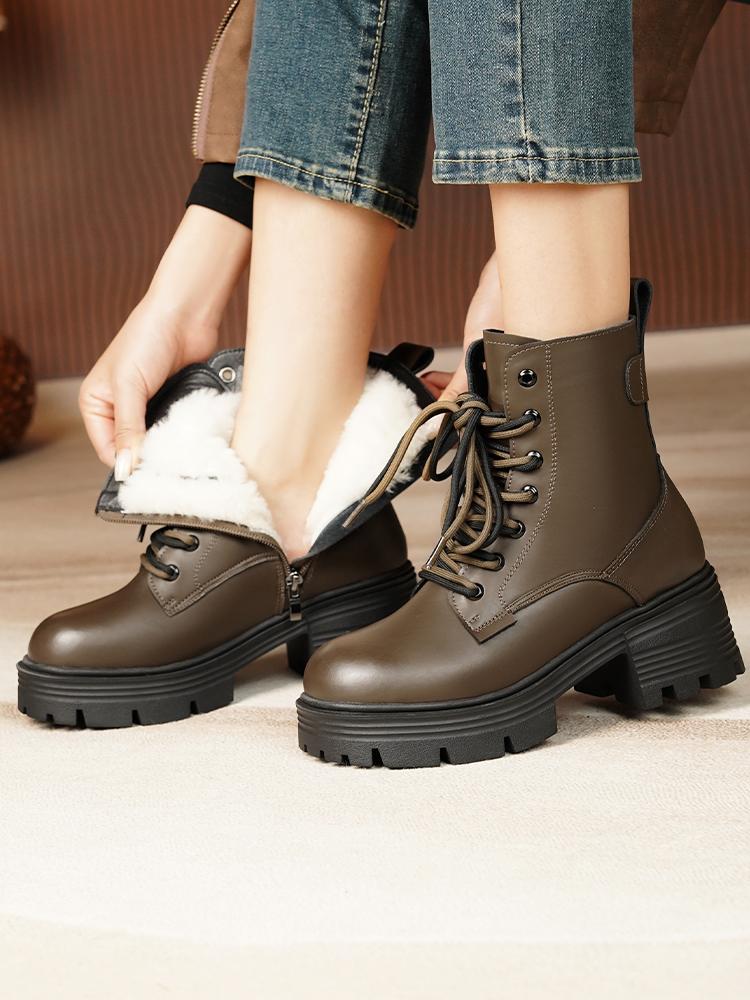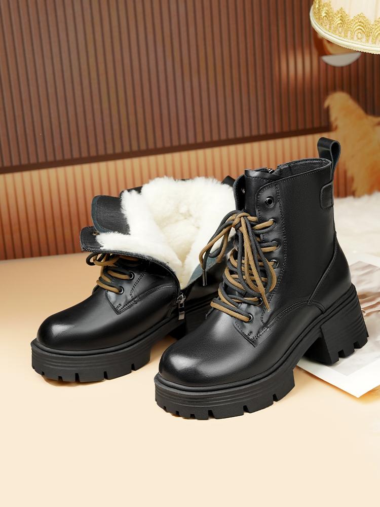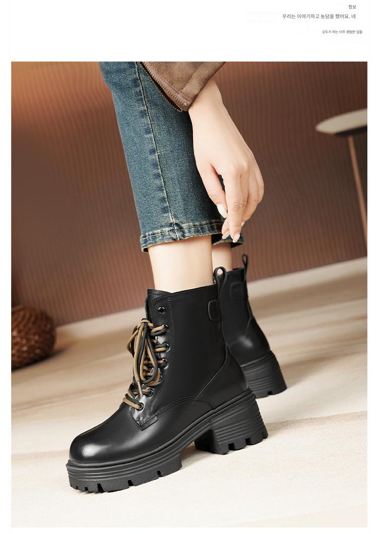 부츠 여성 2025 새로운 스타일 정품 가죽 겨울 두꺼운 굽 플러스 벨벳 마틴 부츠 두꺼운 바닥 짧은 부츠 울 하이힐 큰 면 여성 신발