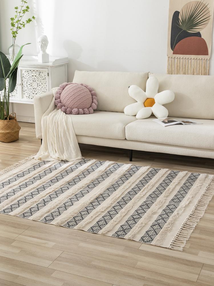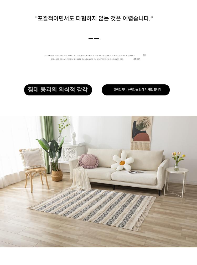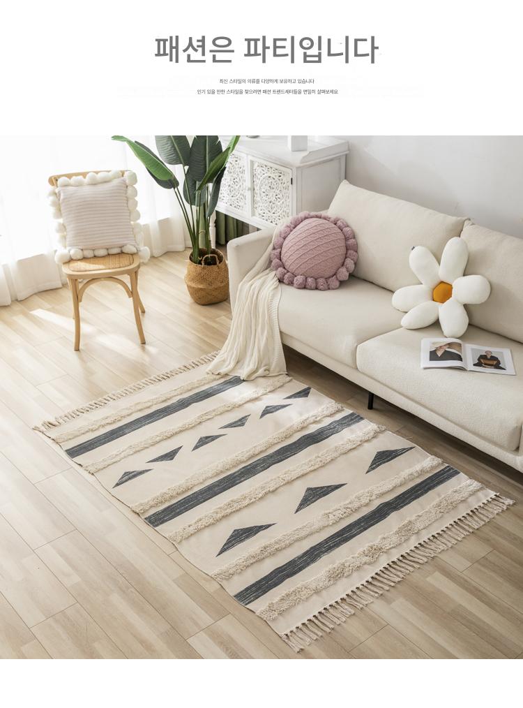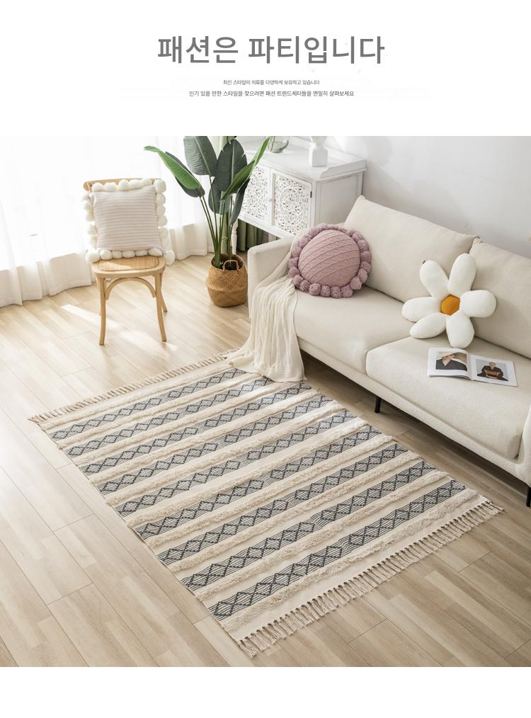 북유럽 스타일 항균 무접착 모로코산 코튼 핸드메이드 카펫 거실 코튼 바닥 매트 공주 침실 침대 옆 담요