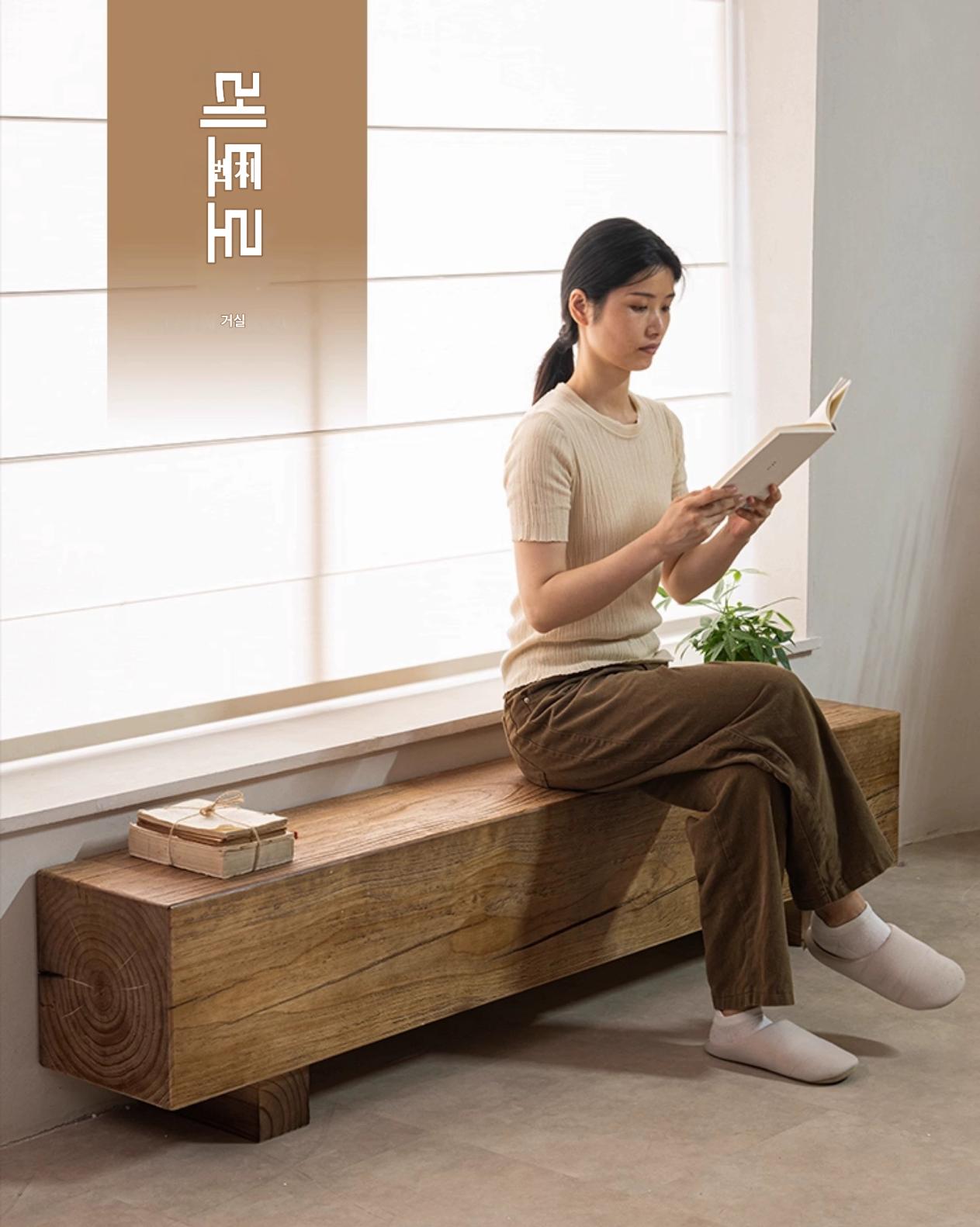 북유럽 원목 벤치 B&B 거실 통나무 벤치 의류 매장 신발 벤치 심플 스타일 TV 캐비닛 레저 벤치