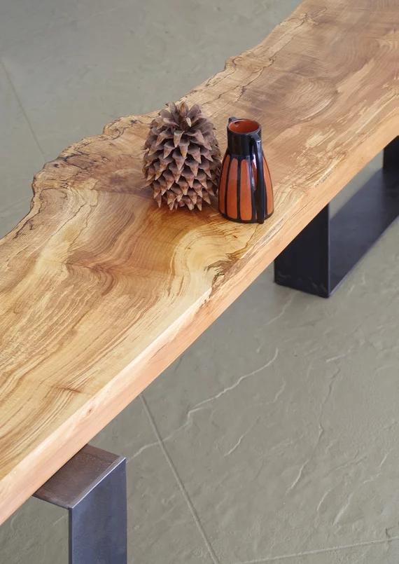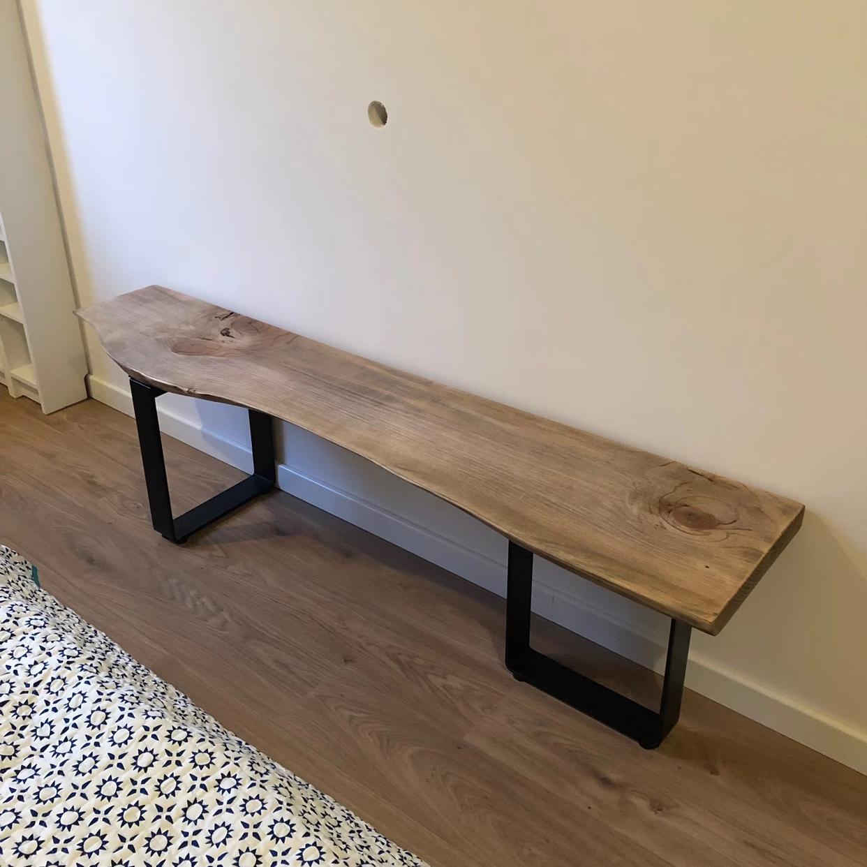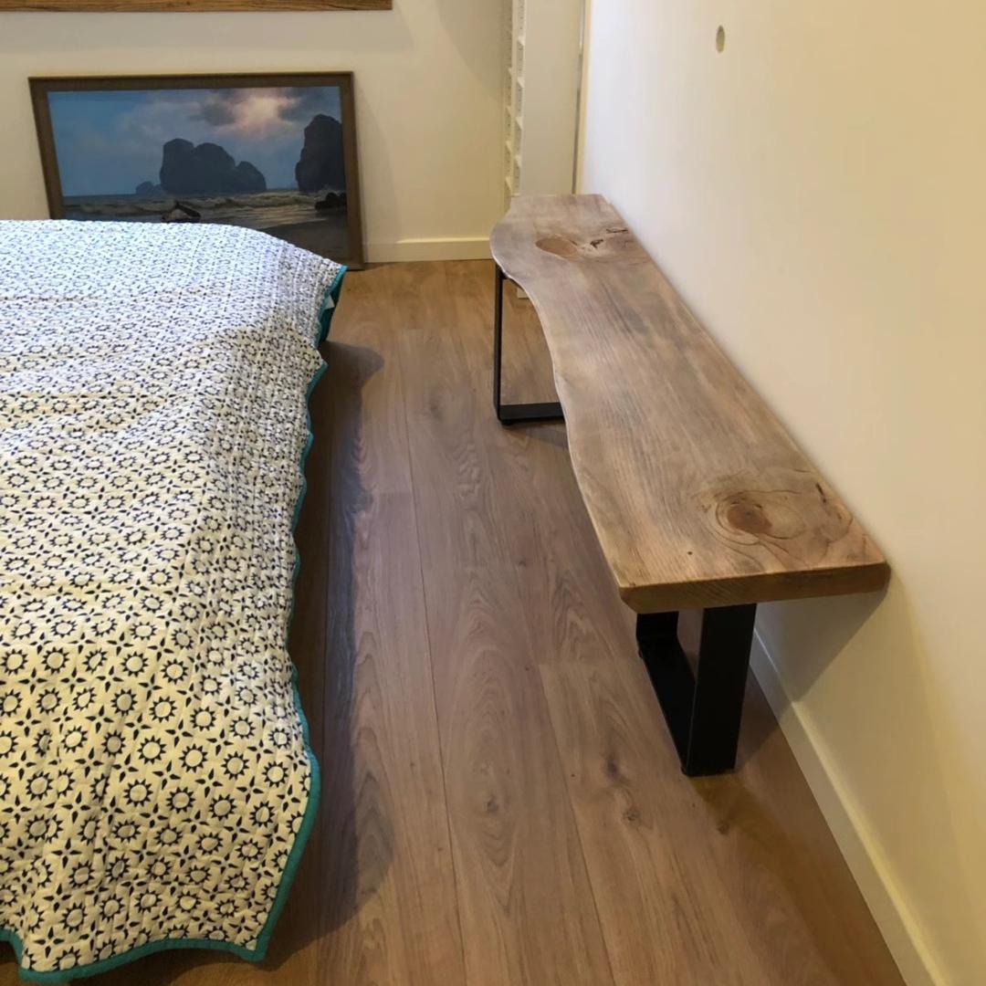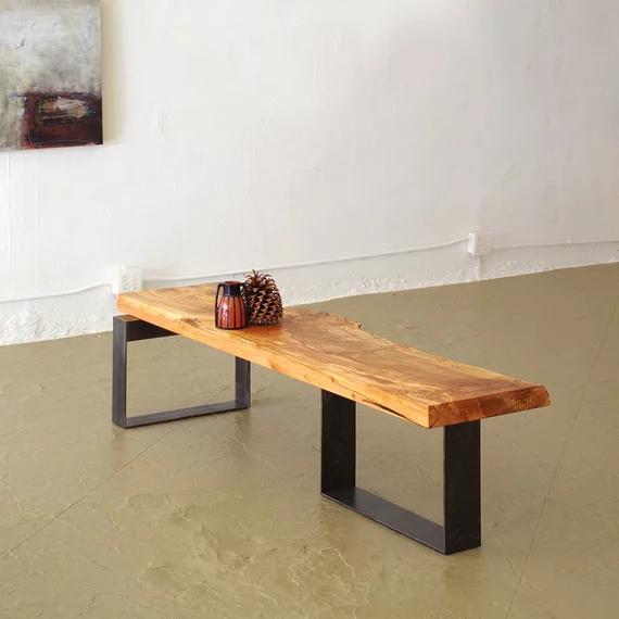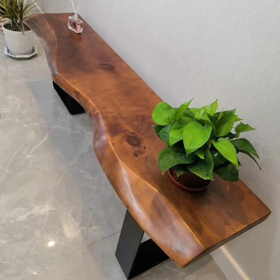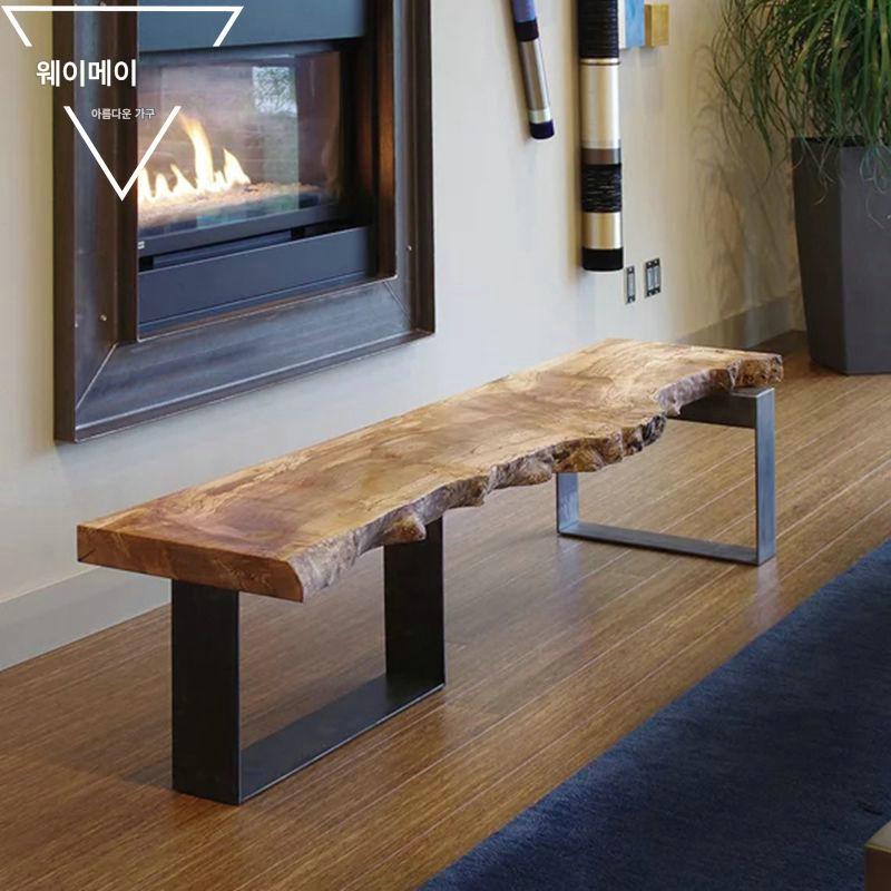 북유럽 원목 침대 겸 아침 식사용 긴 벤치 철제 통나무 신발 벤치 산업 스타일 특수 모양 벤치 받침 벤치 TV 캐비닛