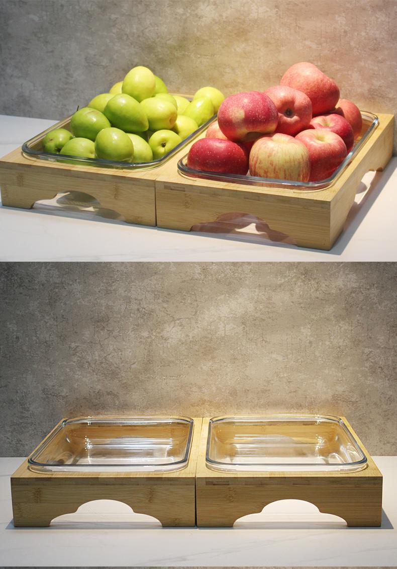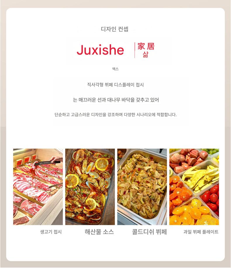 뷔페 과일 샐러드 유리 접시 디스플레이 테이블 차가운 요리 디스플레이 테이블 해산물 소스 바베큐 뷔페 대나무 나무 디스플레이 플레이트
