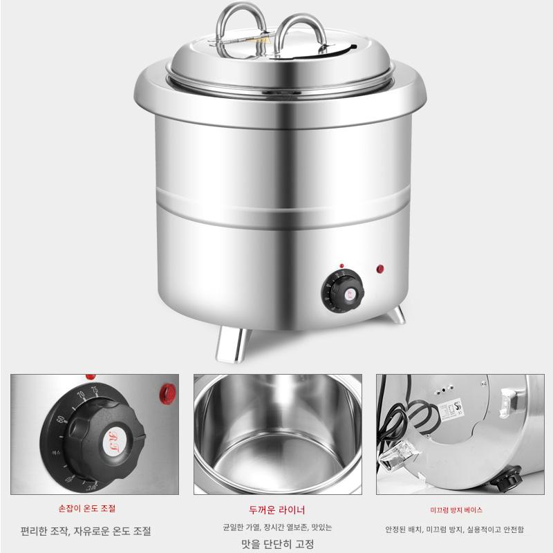 뷔페 전자식 따뜻한 수프 냄비 상업용 스테인리스 스틸 단열 버킷 / 호텔 아침 식사 따뜻한 죽 냄비 전기 가열 수프 스토브 304