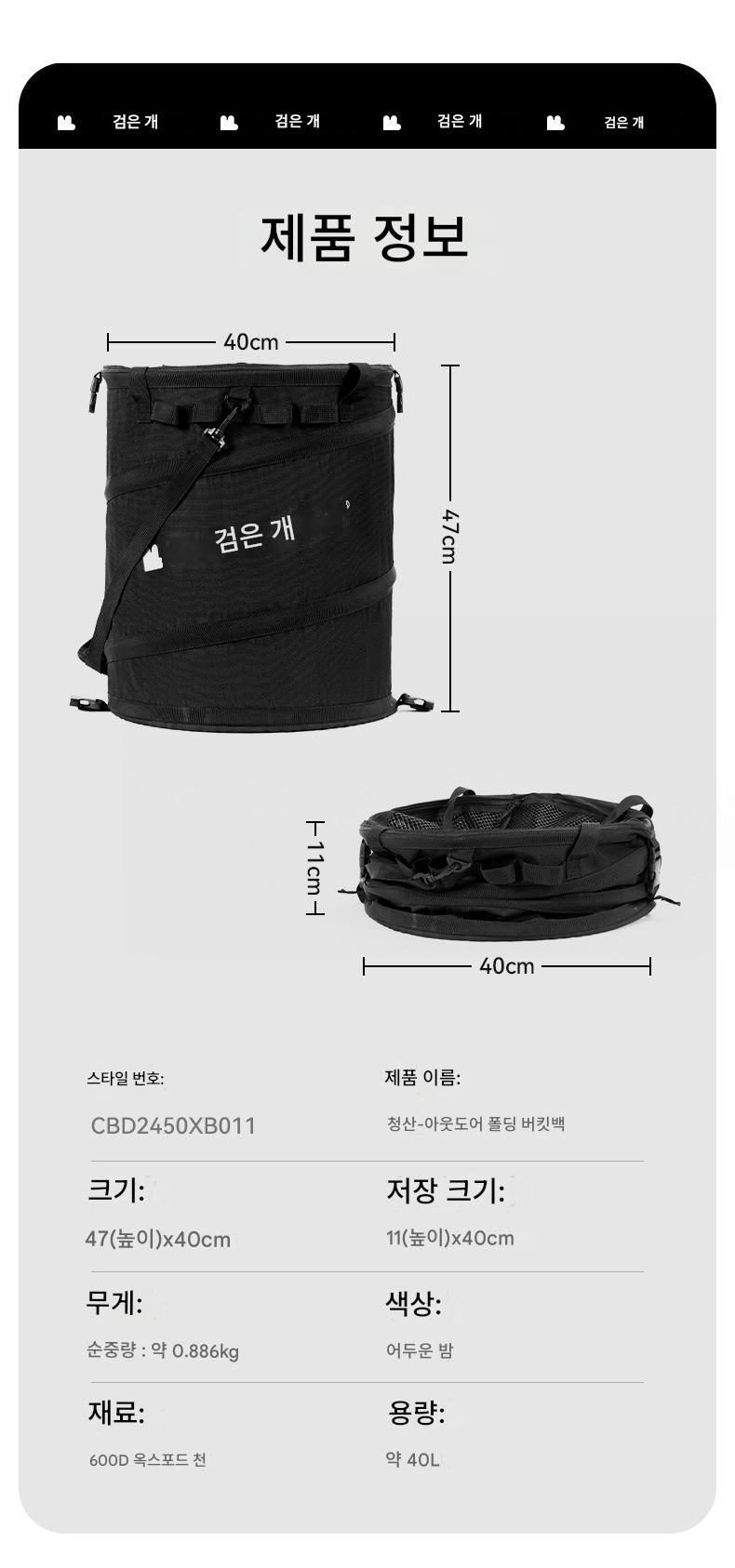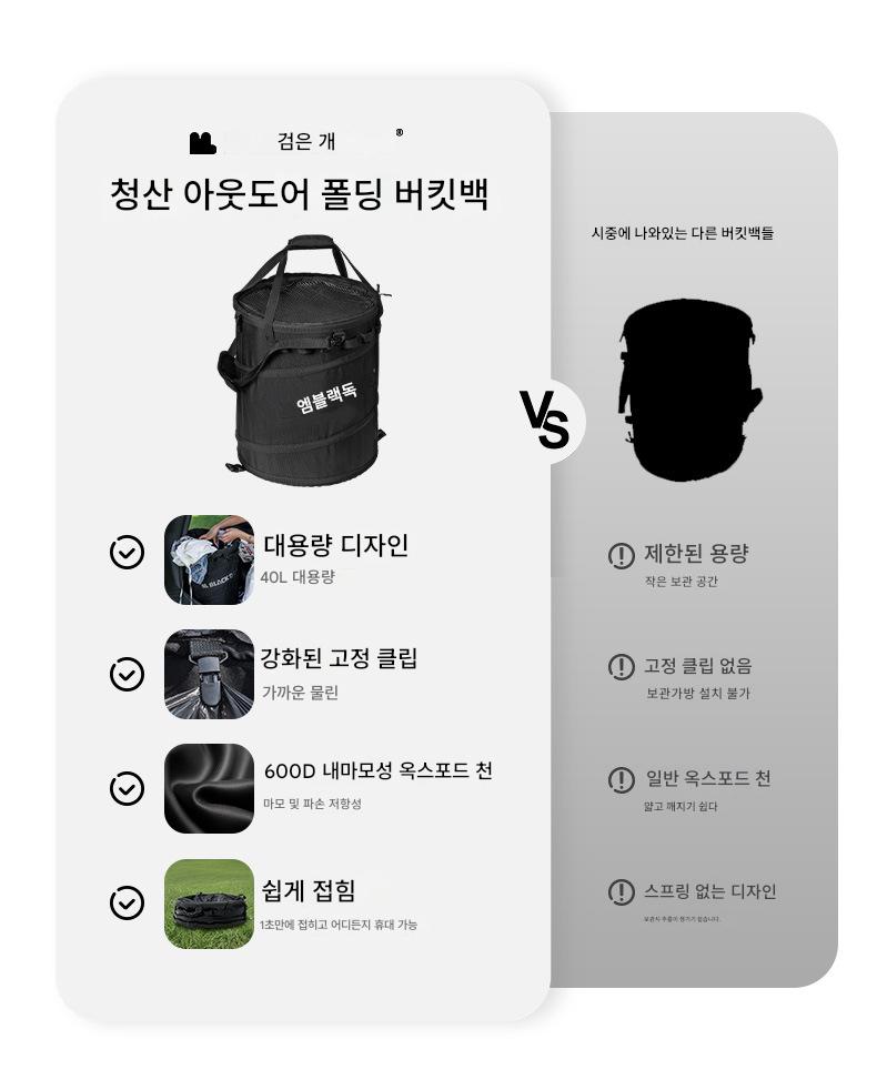 블랙독 아웃도어 캠핑 버킷백 휴대하기 편하고 접기 쉬운 대용량 다기능 잡화 장비 보관백