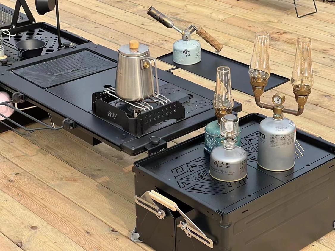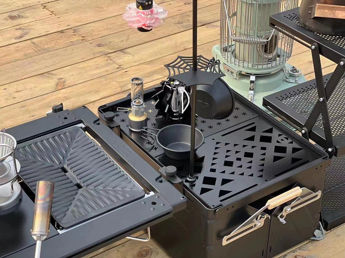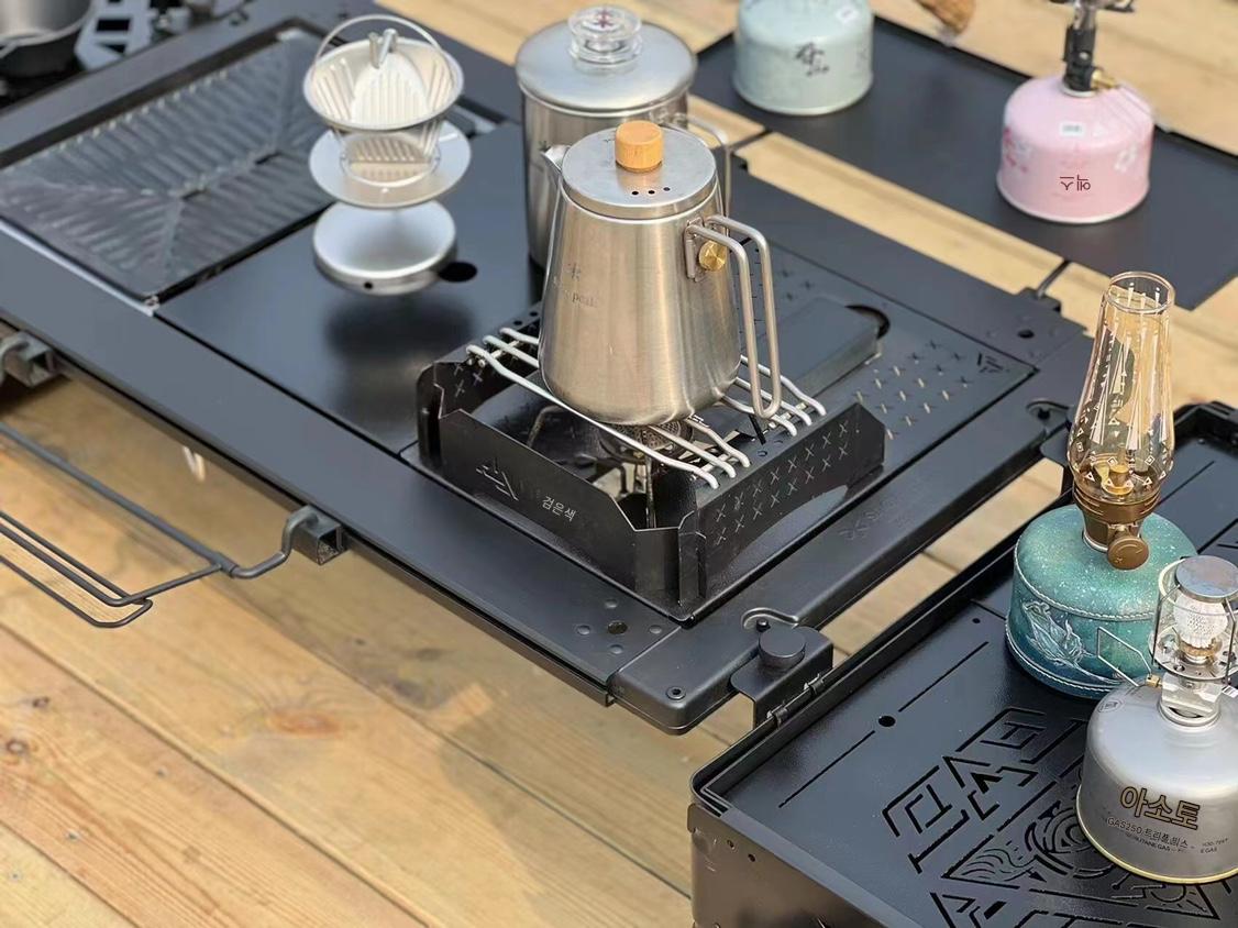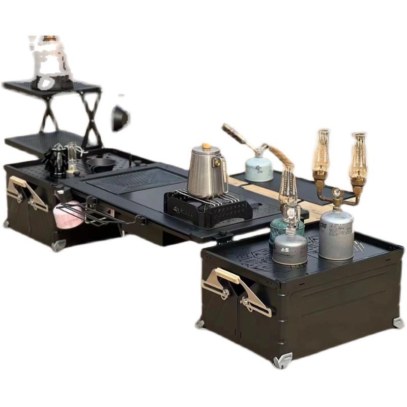 블랙 캠핑 장비 주방 시스템 igt 세트 모바일 주방 캠핑 피크닉 다기능 스테인레스 스틸 테이블