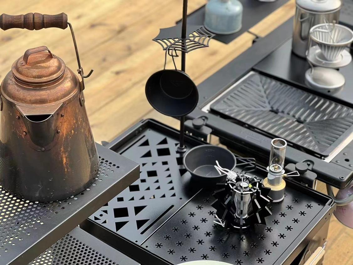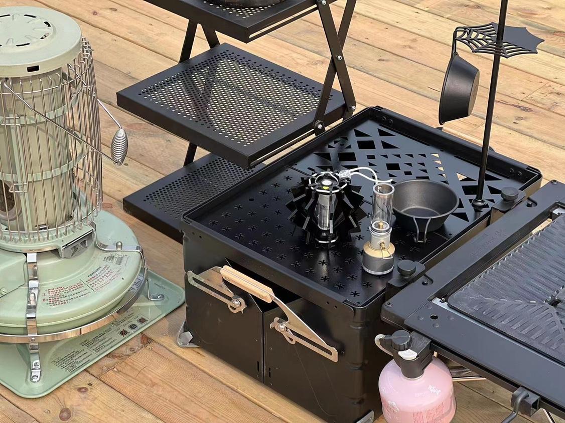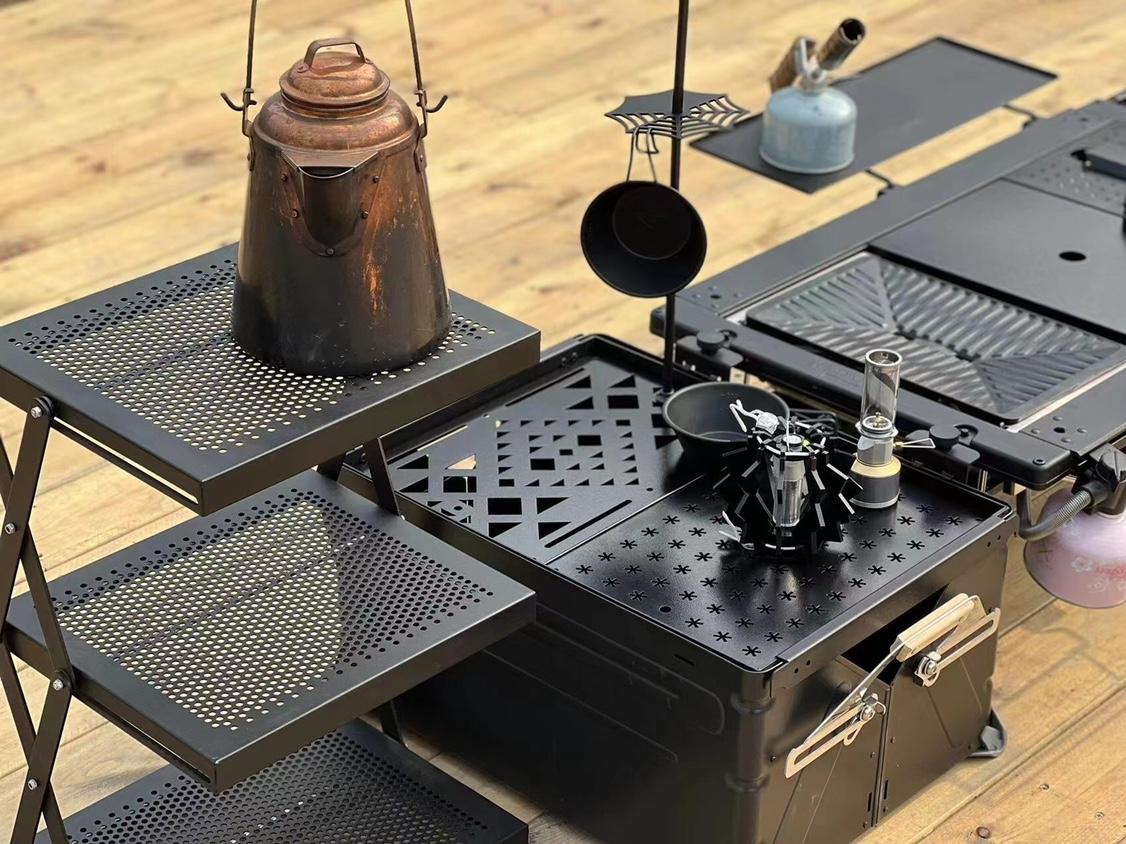 블랙 캠핑 장비 주방 시스템 igt 세트 모바일 주방 캠핑 피크닉 다기능 스테인레스 스틸 테이블