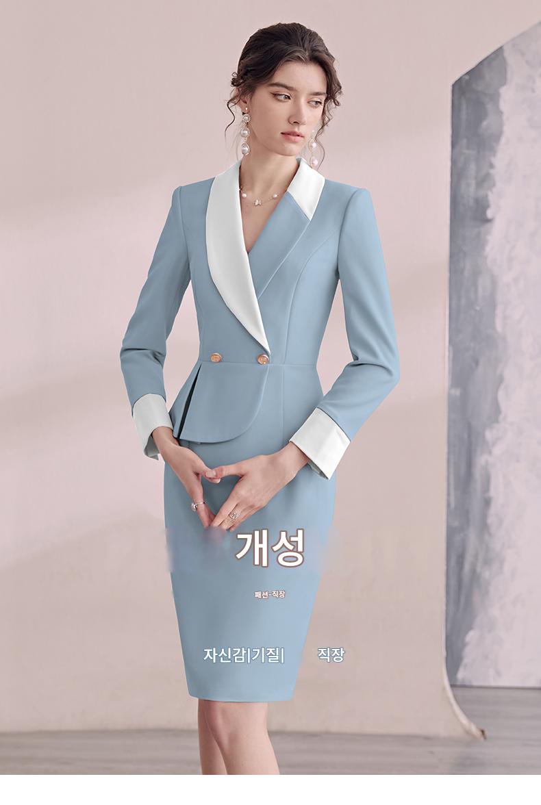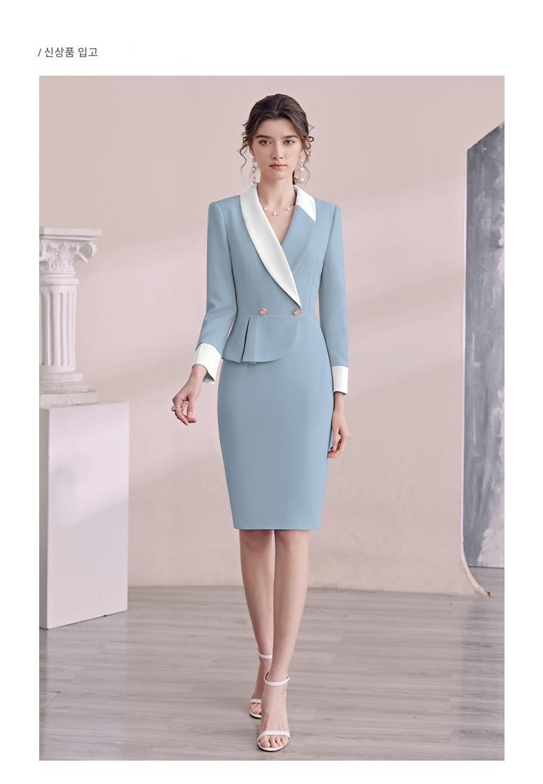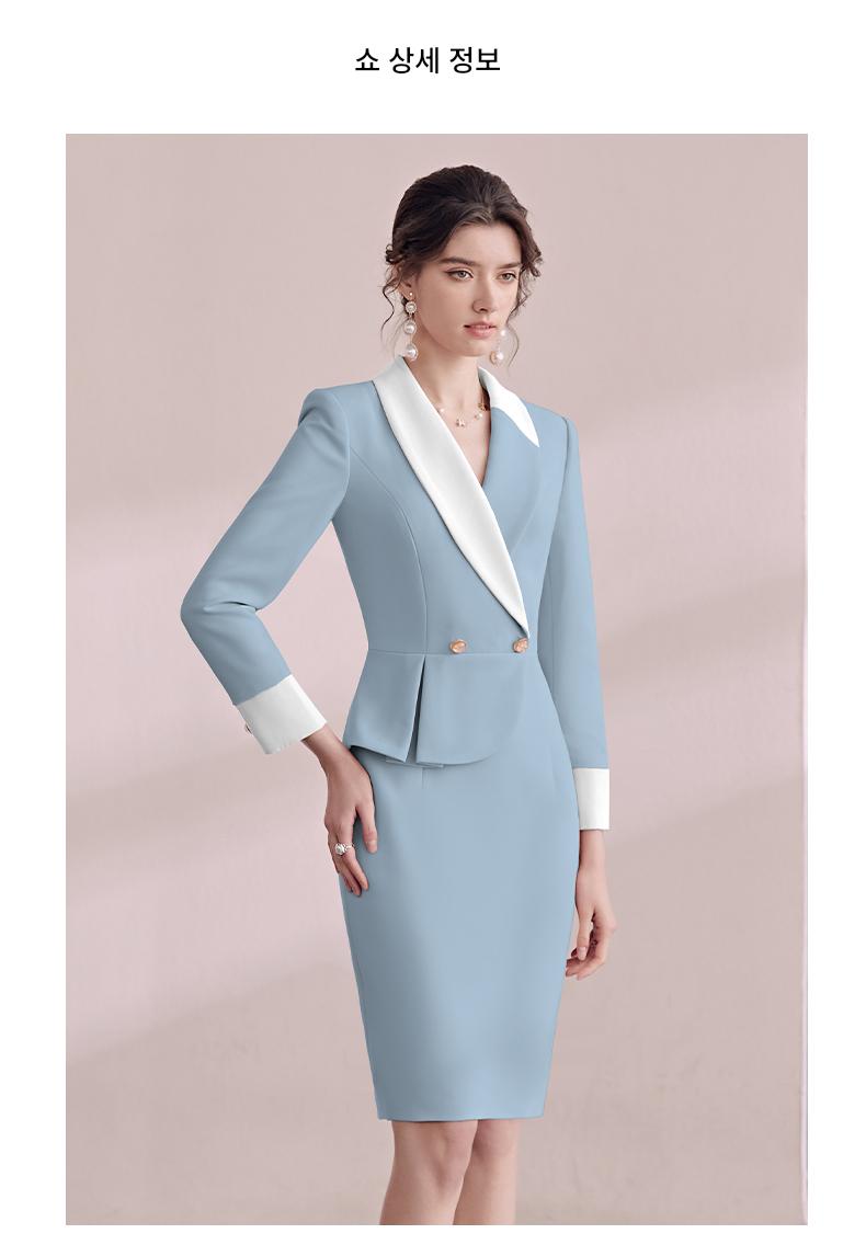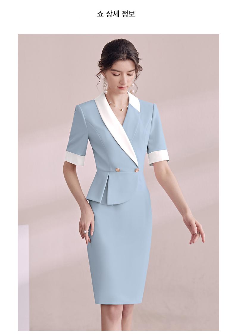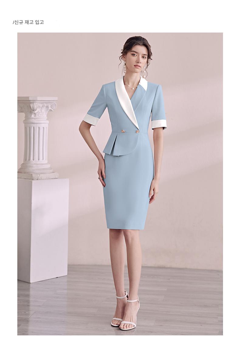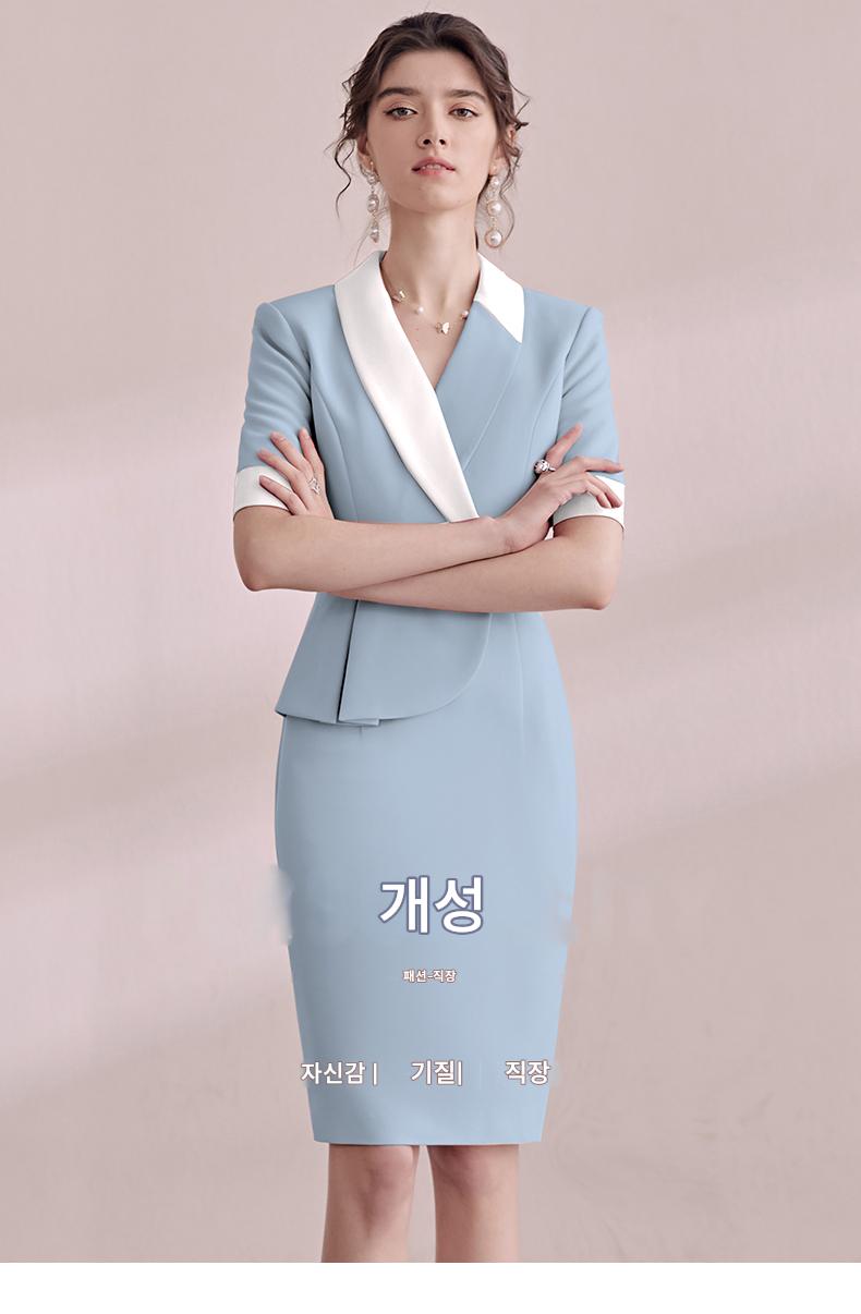 블루 정장 드레스 여성 여름 방송 진행자 예술 시험 정장 정장 스커트 기질 전문가 복장 작업복
