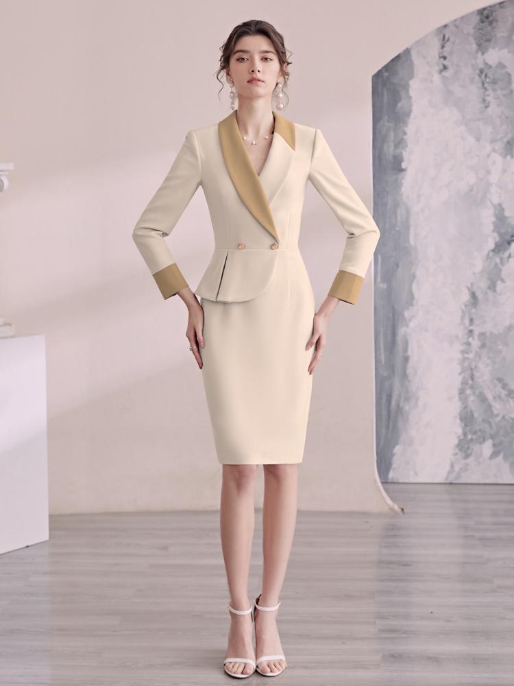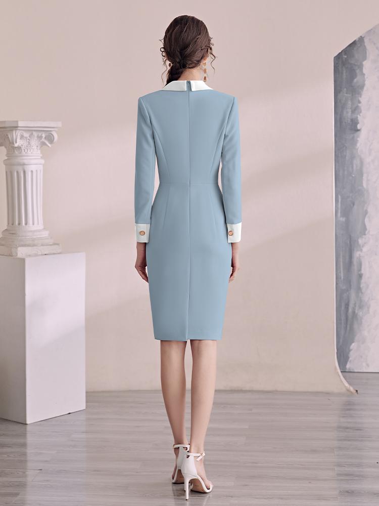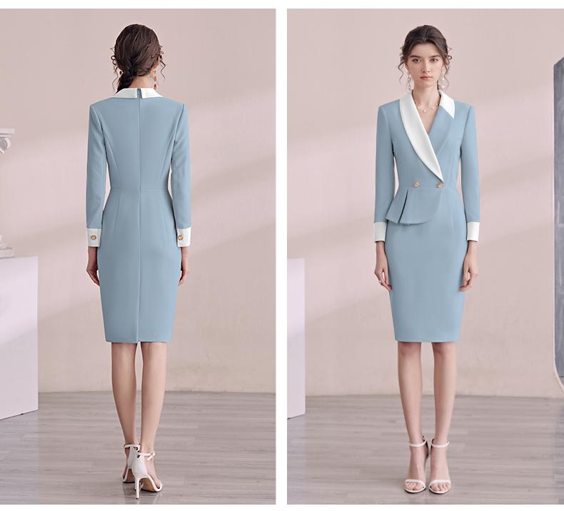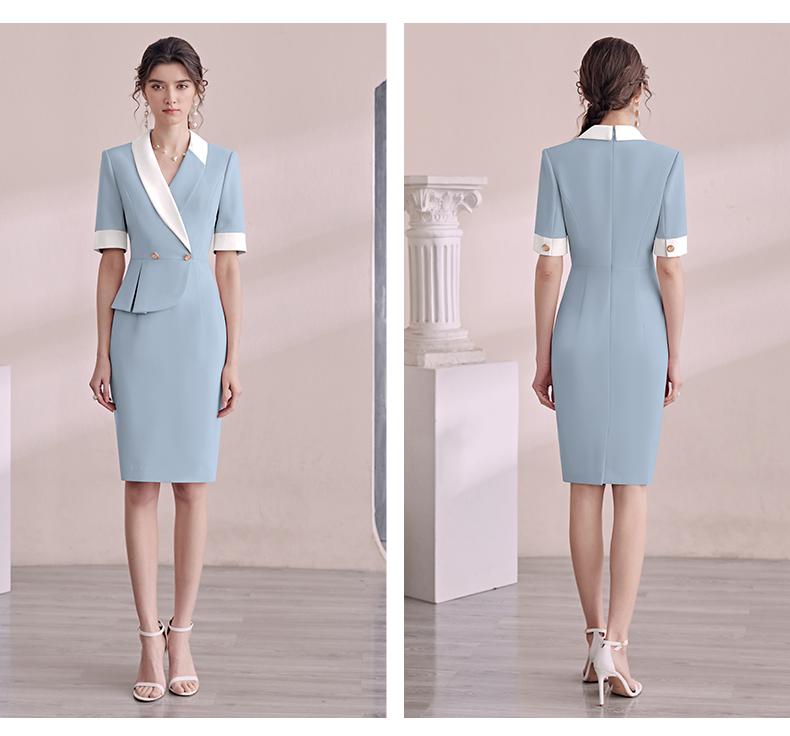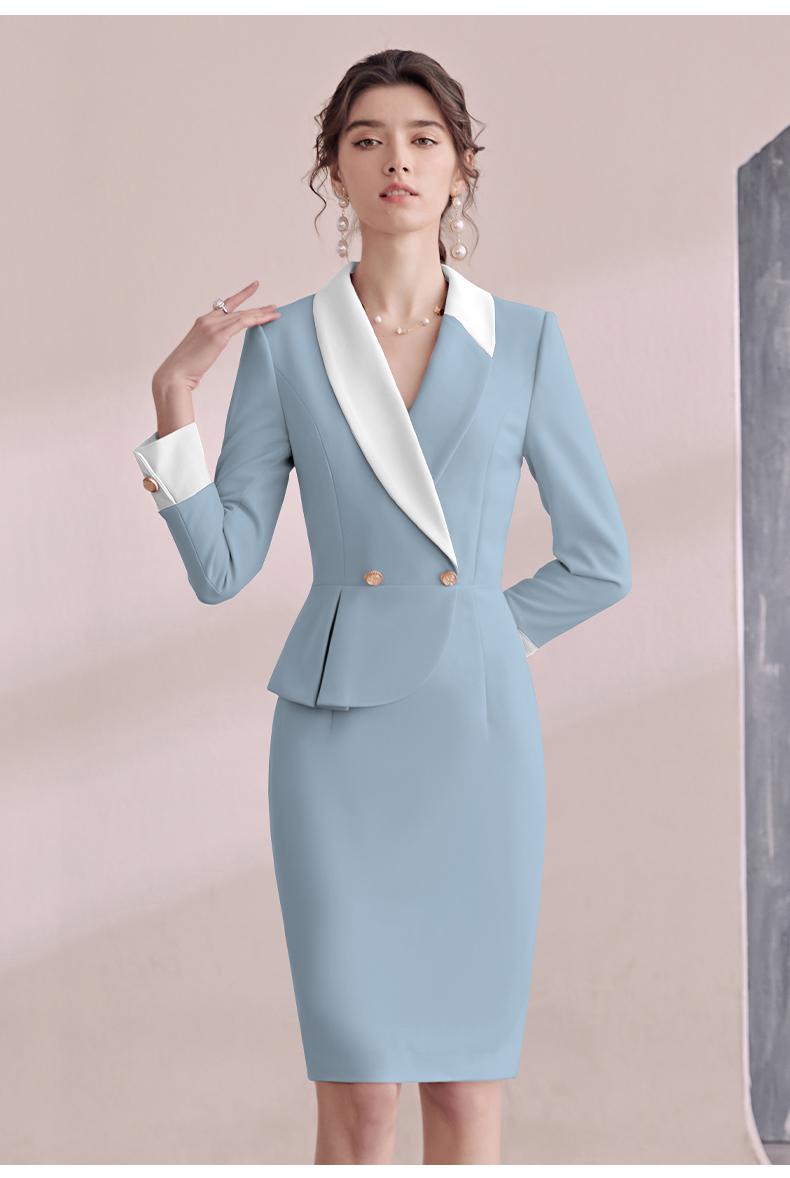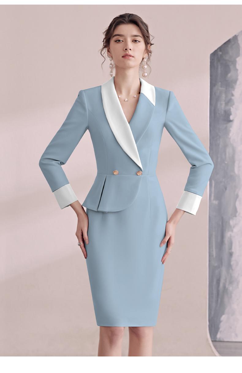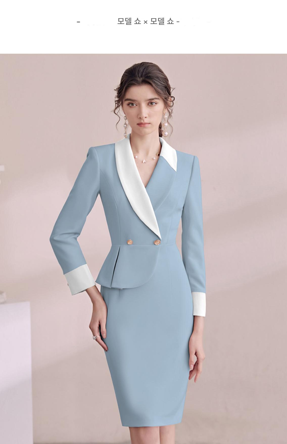 블루 정장 드레스 여성 여름 방송 진행자 예술 시험 정장 정장 스커트 기질 전문가 복장 작업복