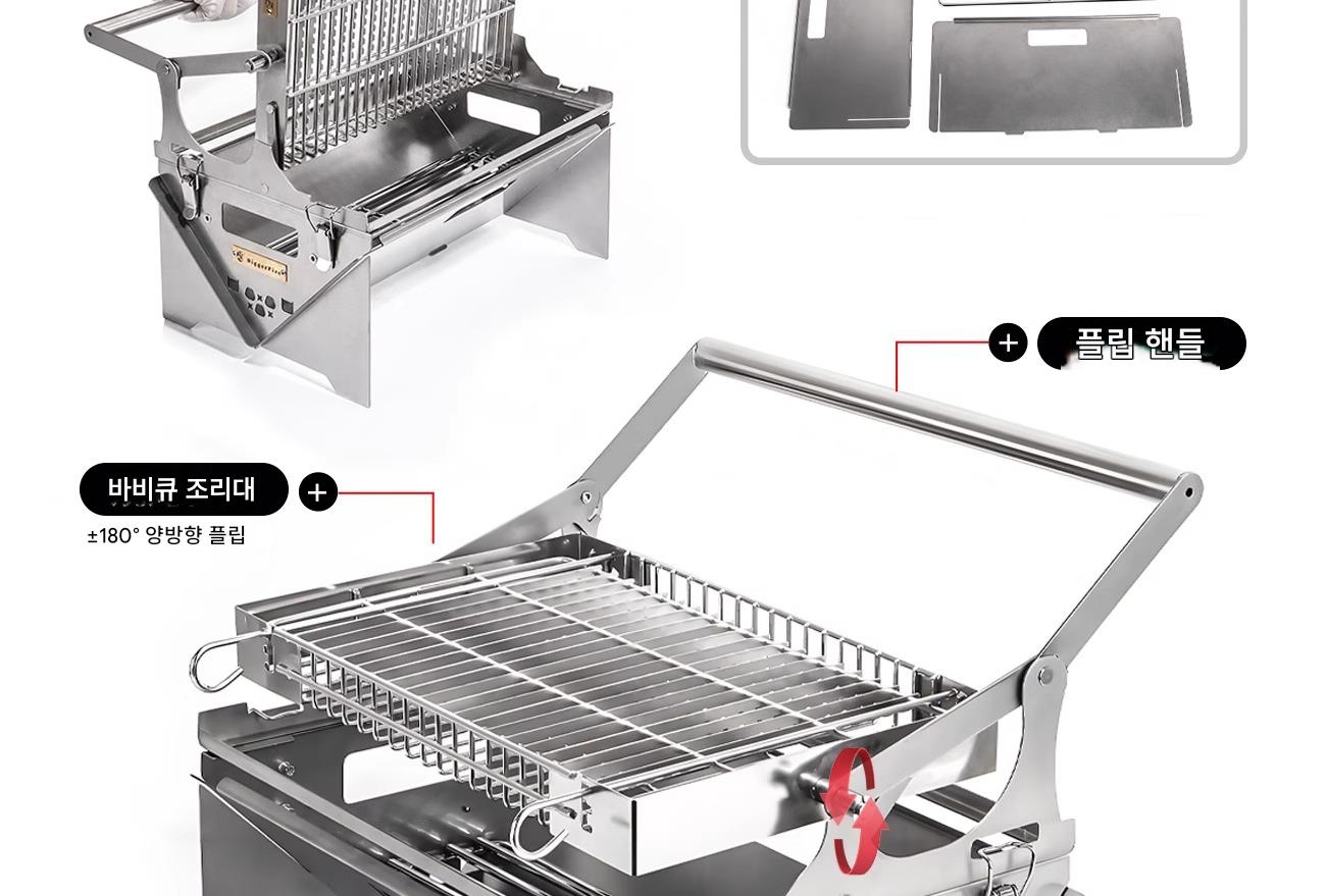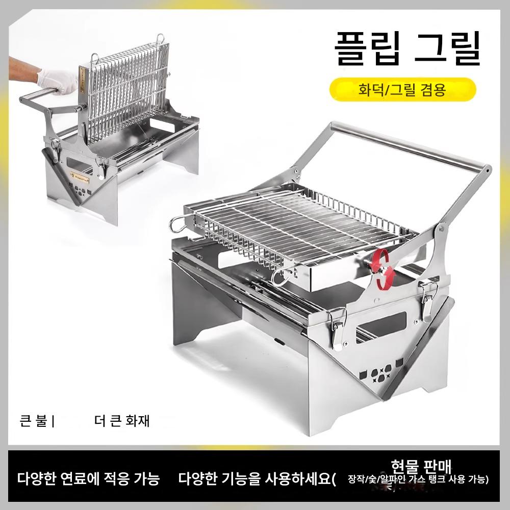 빅 파이어 플립 그릴 360° 야외 파티오 바비큐 그릴 두꺼운 스테인리스 스틸 회전식 온도 조절