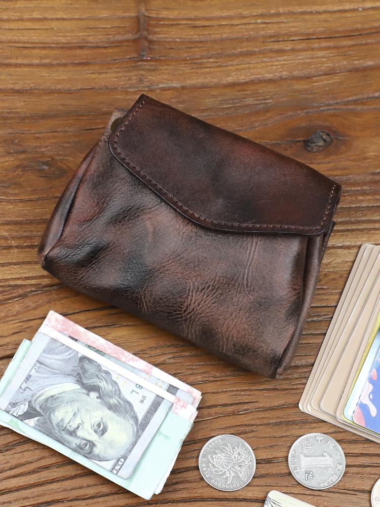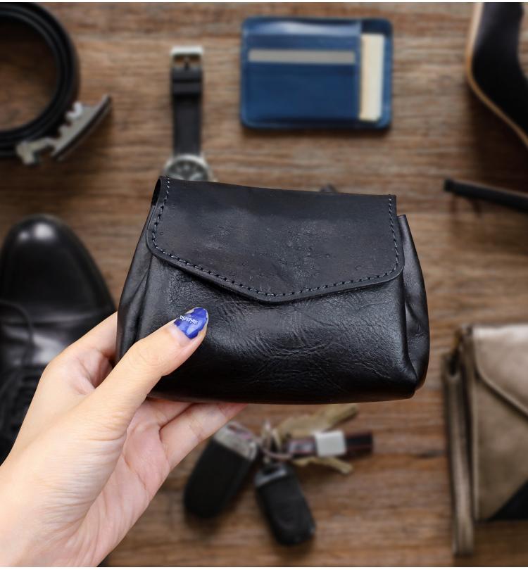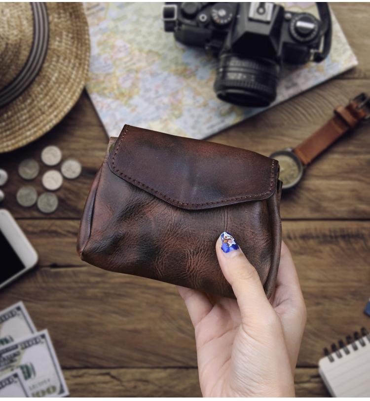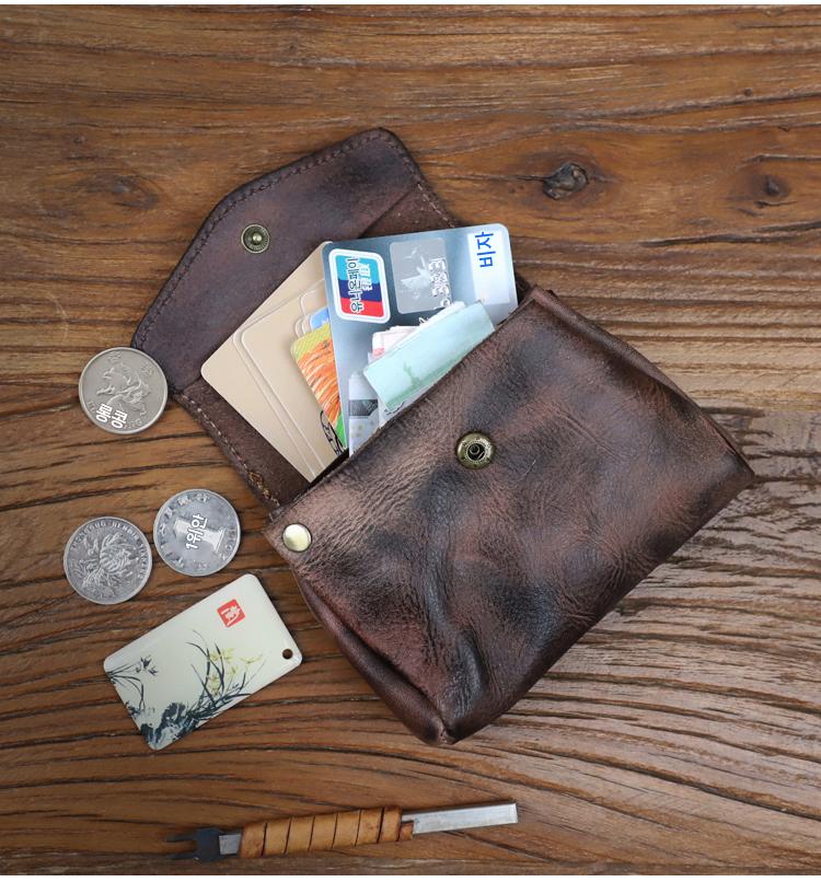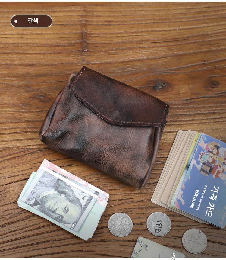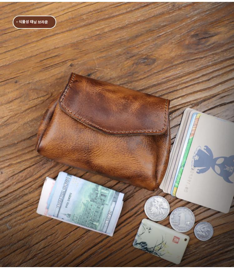 빈티지 핸드메이드 정품 가죽 동전 지갑 소가죽 여성용 카드 홀더 다기능 식물성 태닝 가죽 지갑 남성용 미니 수납 가방