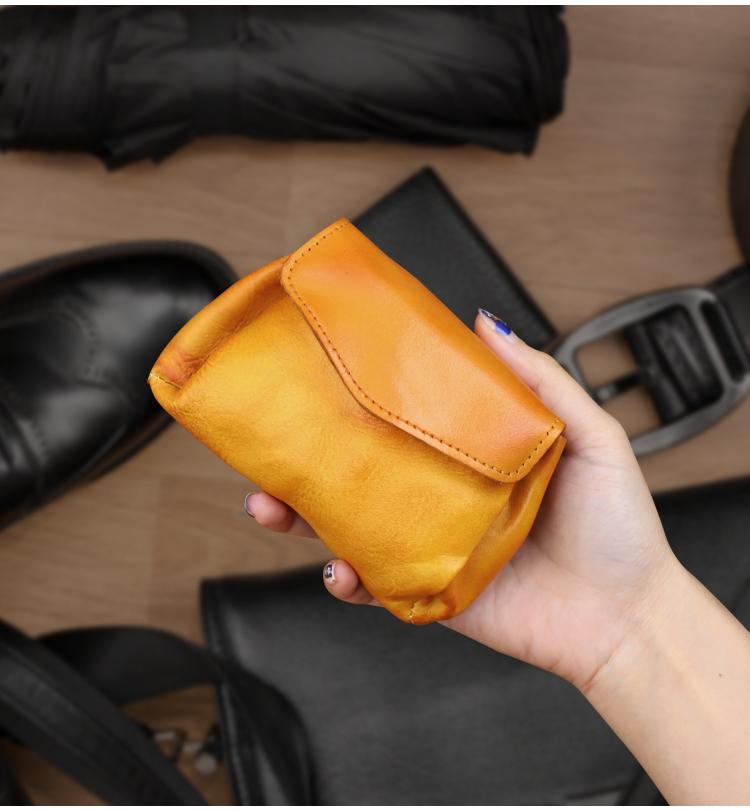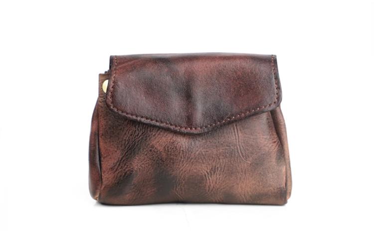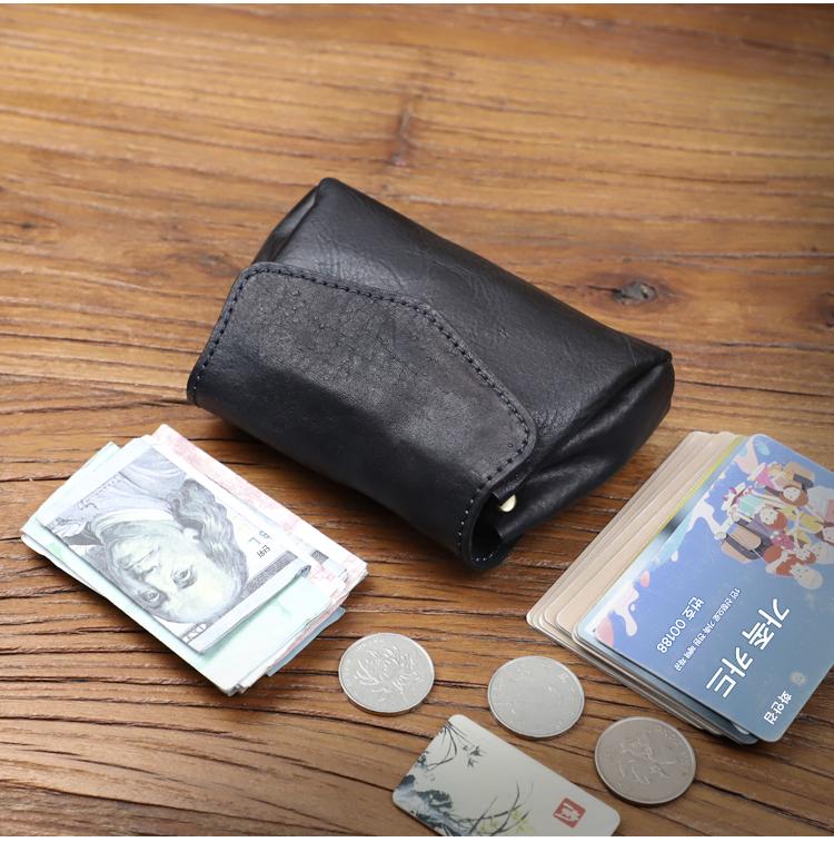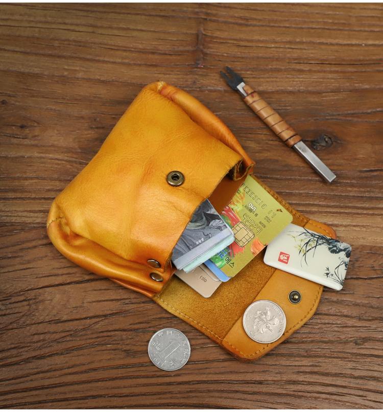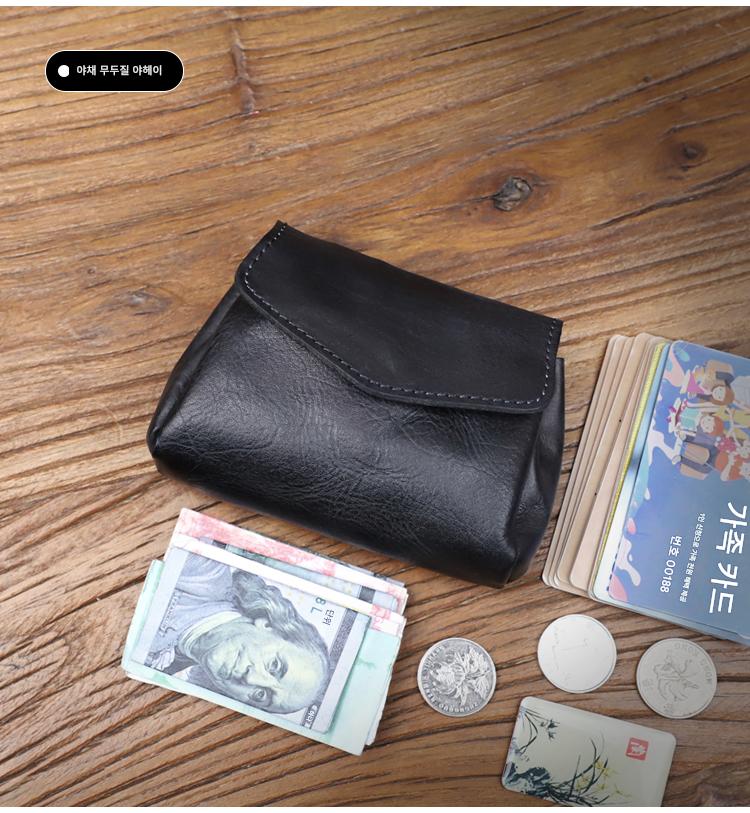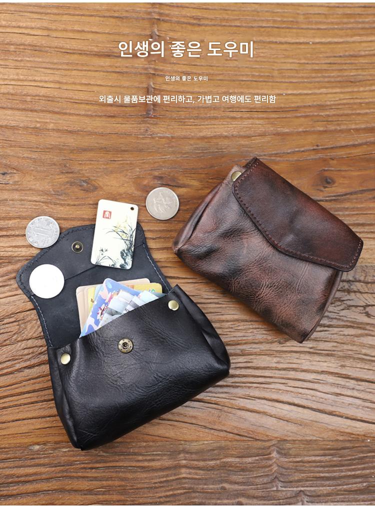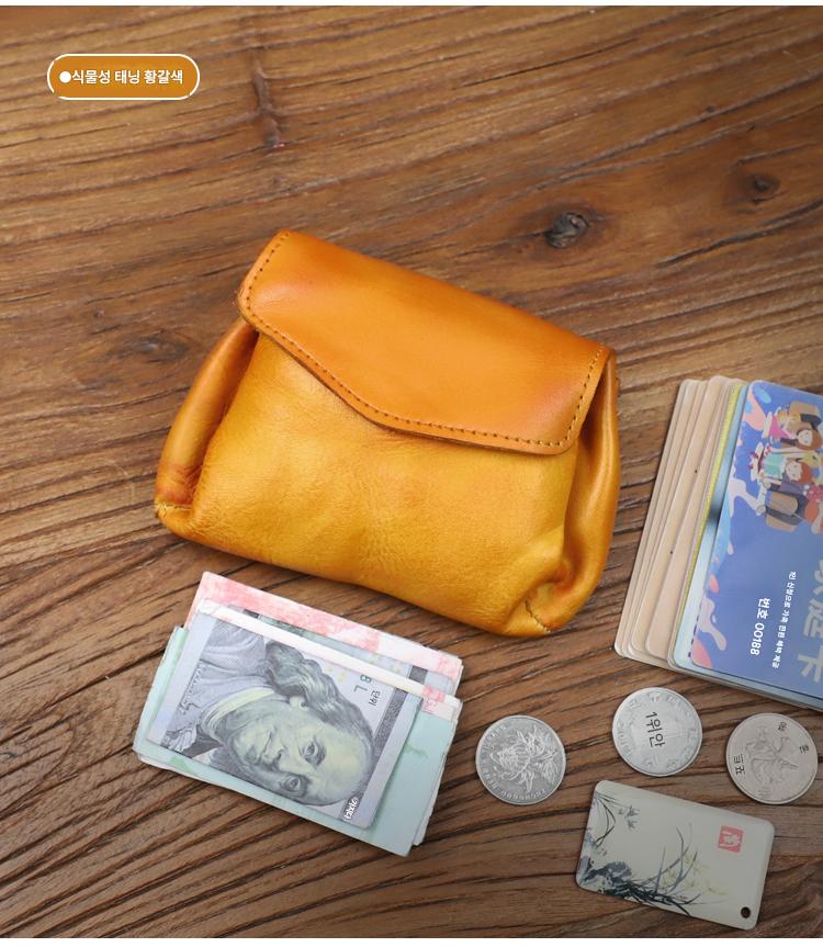 빈티지 핸드메이드 정품 가죽 동전 지갑 소가죽 여성용 카드 홀더 다기능 식물성 태닝 가죽 지갑 남성용 미니 수납 가방