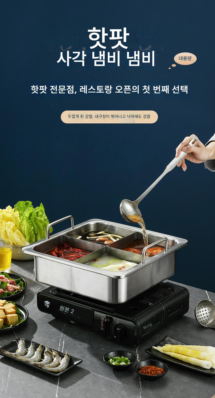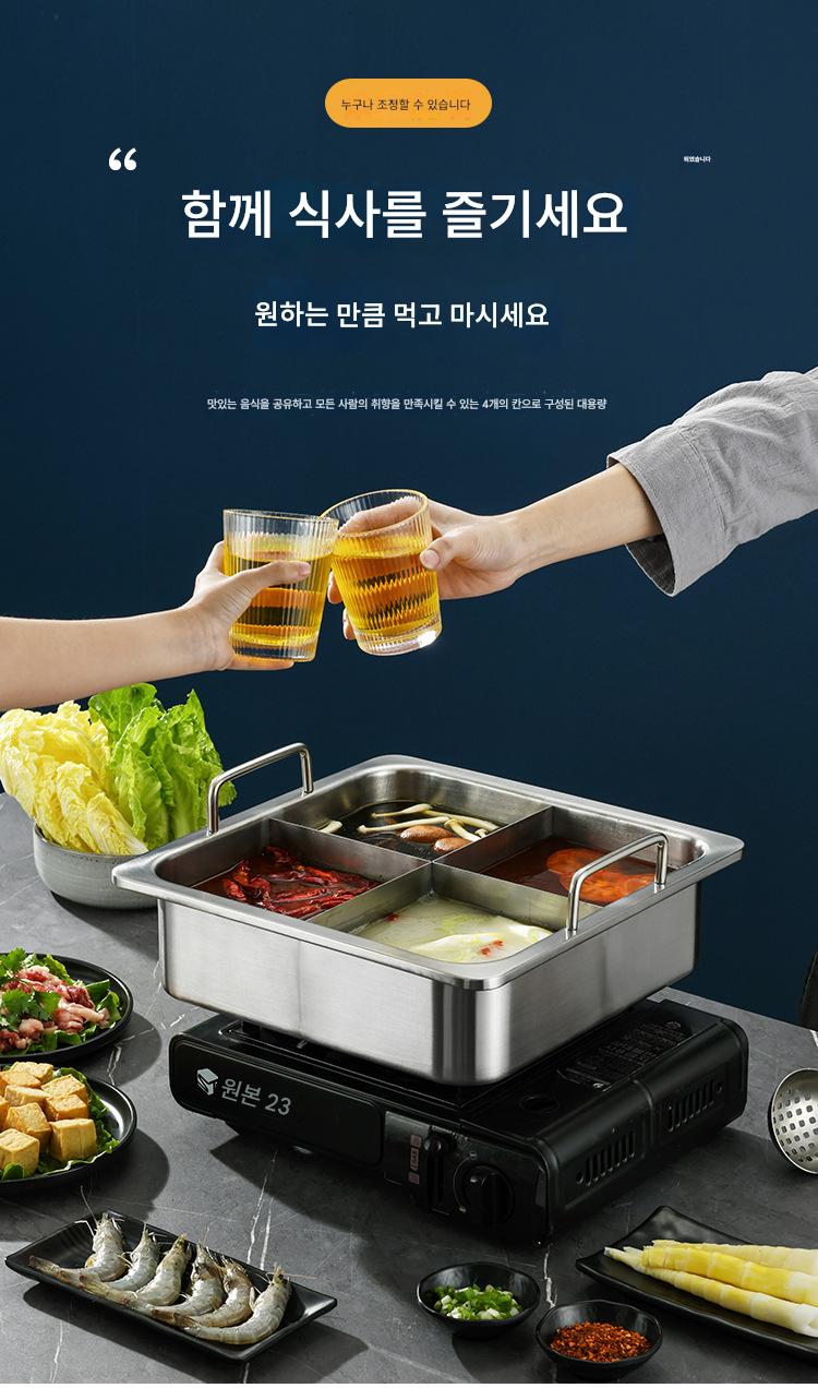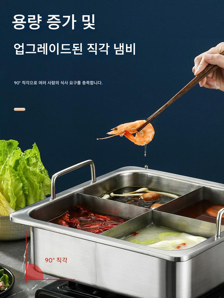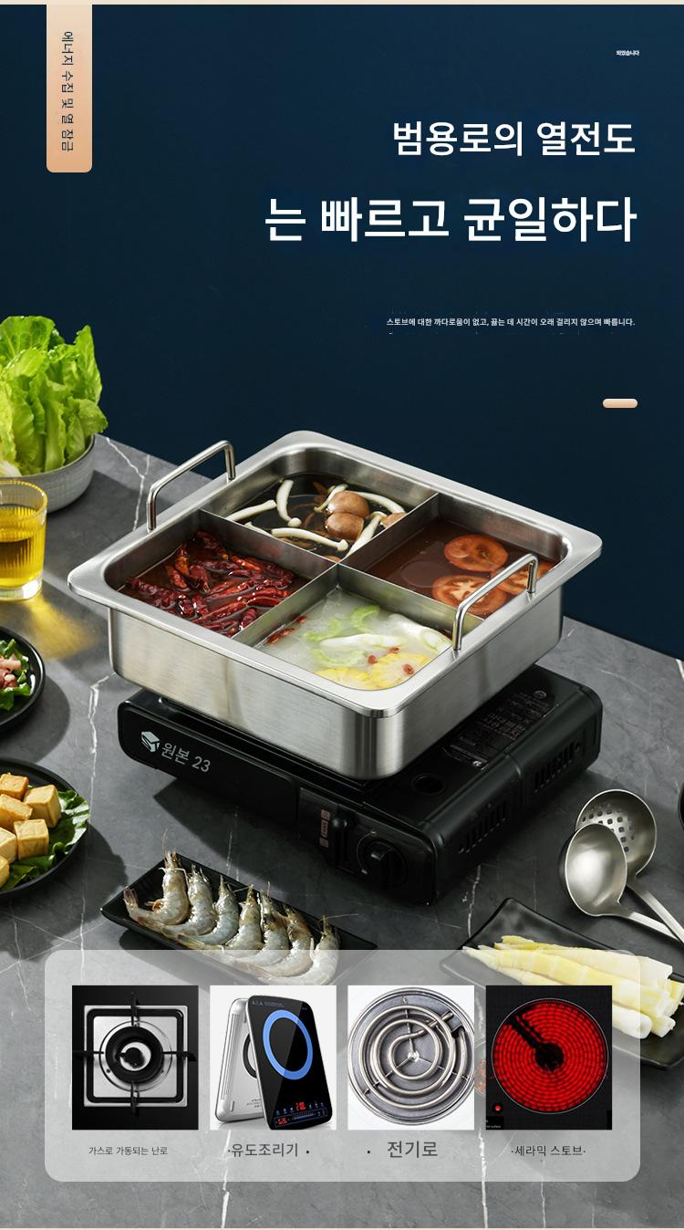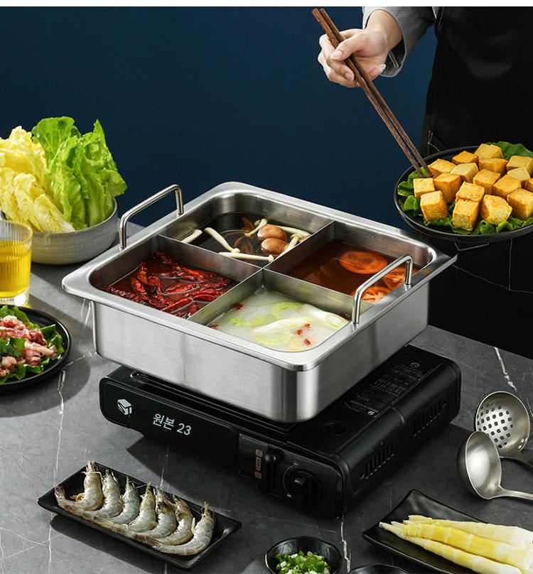 사각 4격자 핫팟 냄비 상업용 스테인리스 두꺼워진 하이디라오 만다린 오리 수프 냄비 맞춤형 유도 조리기 전용