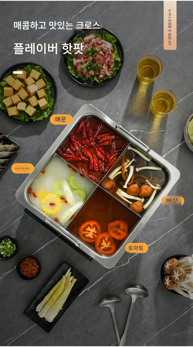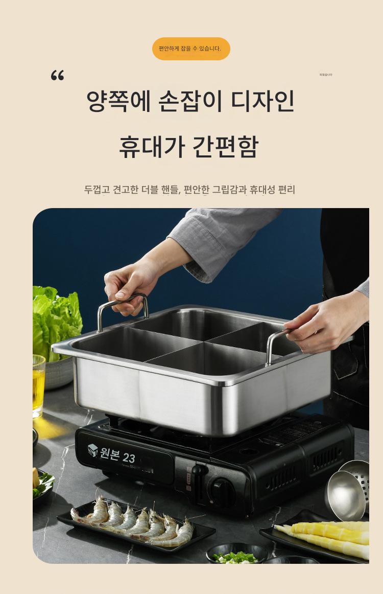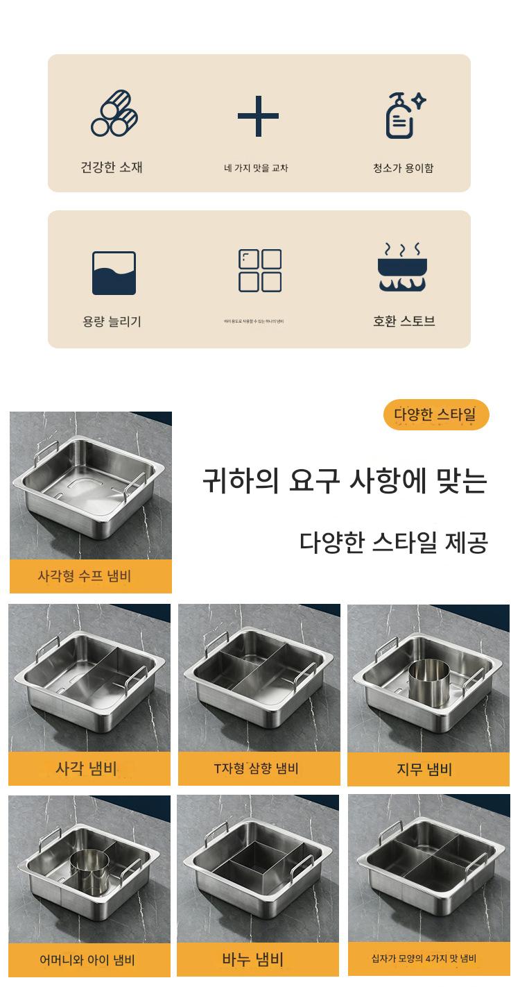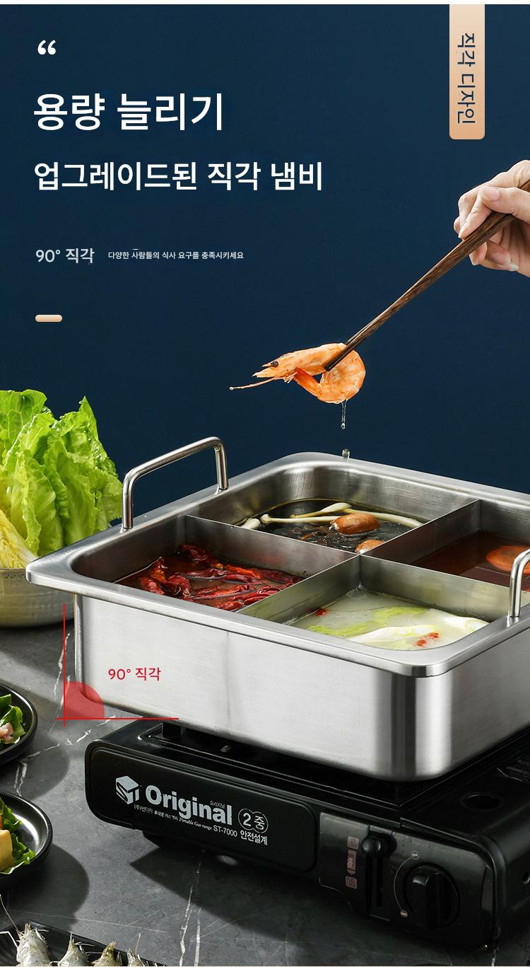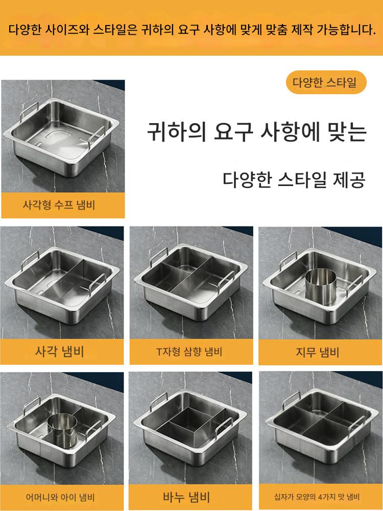 사각 4격자 핫팟 냄비 상업용 스테인리스 두꺼워진 하이디라오 만다린 오리 수프 냄비 맞춤형 유도 조리기 전용