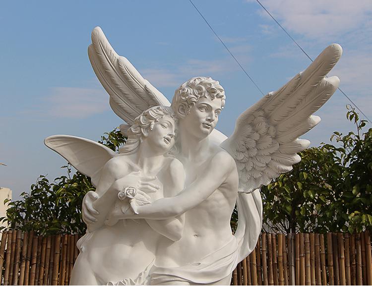 사랑 신 날개 커플 동상 사계절 밝은 천사 조각 대형 유리 섬유 인물 아트워크 장식 장식품