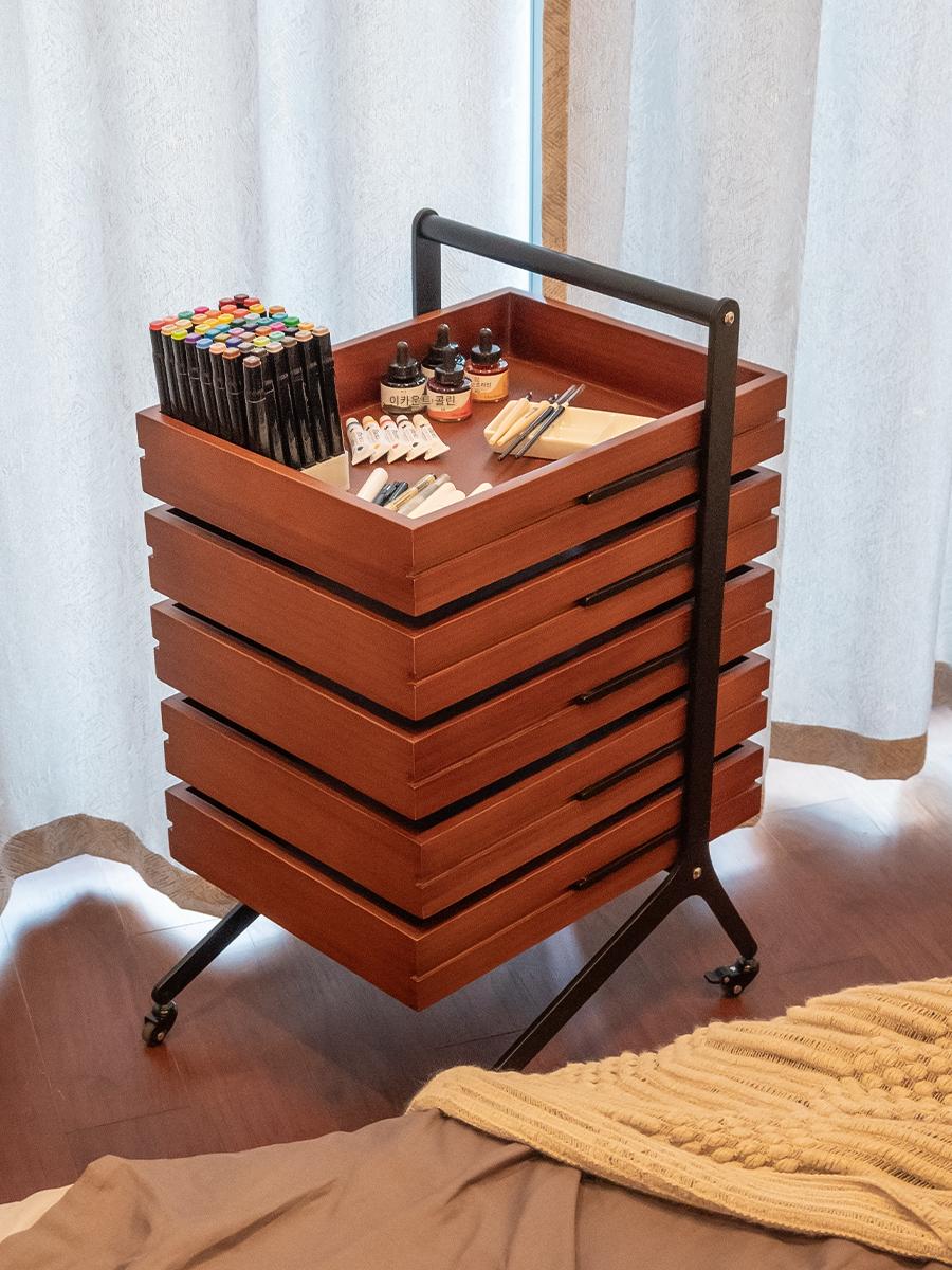 사이드 테이블 모바일 트롤리 커피 테이블 견고한 목재 중고 사이드 캐비닛 수납 소파 와비사비 스타일 사이드 테이블 랙 이지 홈