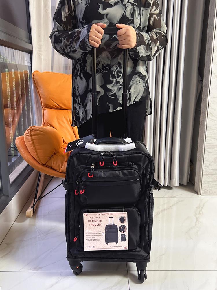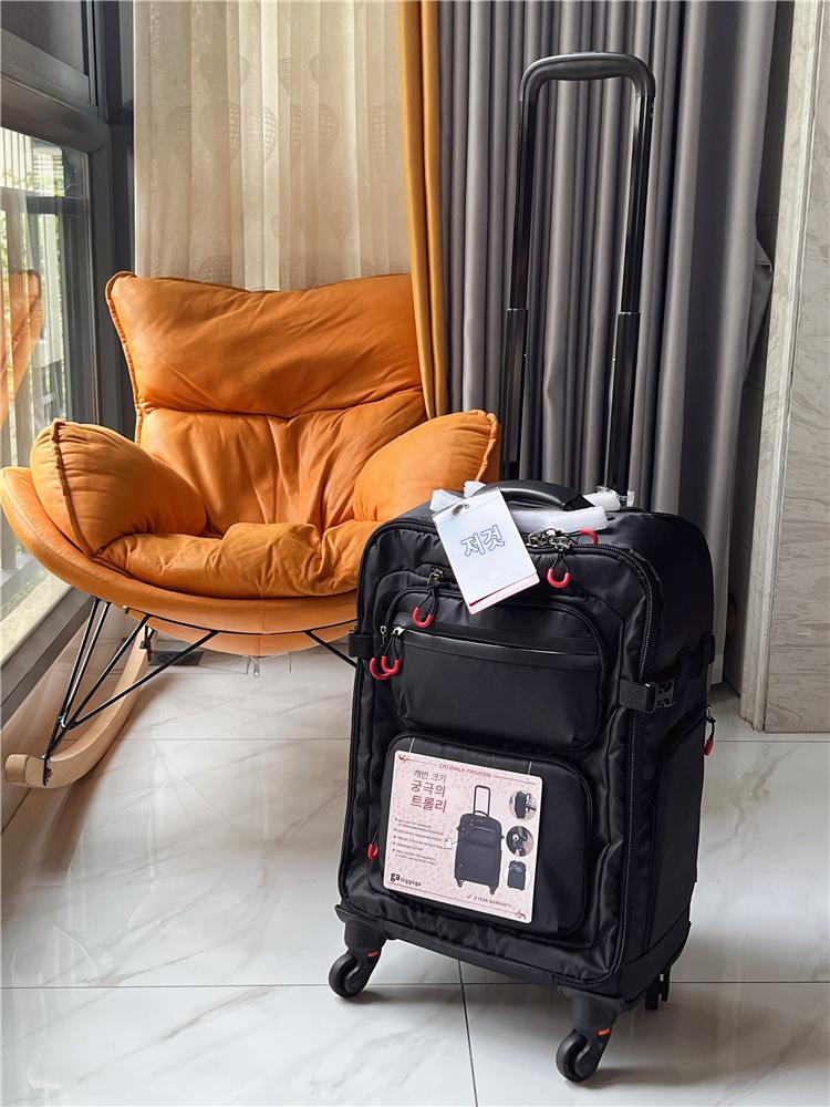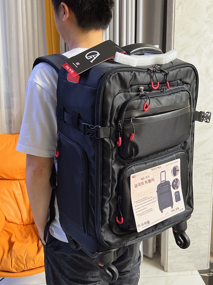 사진 트롤리 백팩 가방 남성용 18인치 캐빈 가방 20인치 범용 휠 운반 및 끌 수 있음 여행 가방 천 상자 가벼움