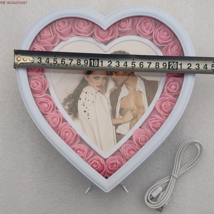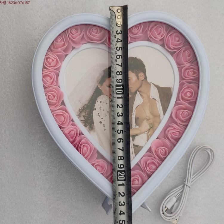 사진 프레임 스탠드 웨딩 드레스 커플 사랑 모양 LED 조명 다채로운 색상 변경 사진 프레임 스튜디오 액세서리 생일 결혼 선물