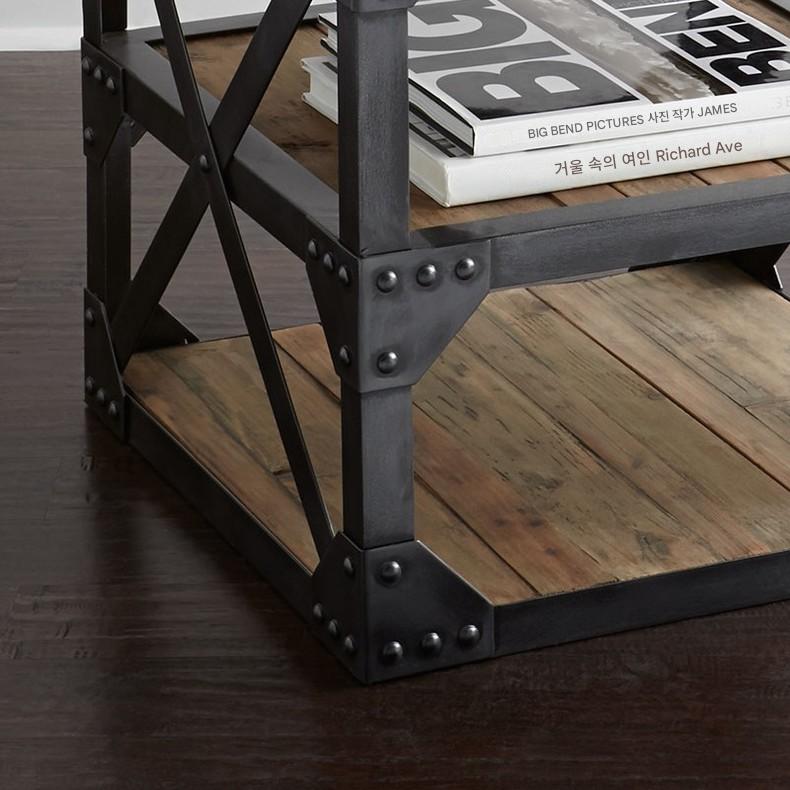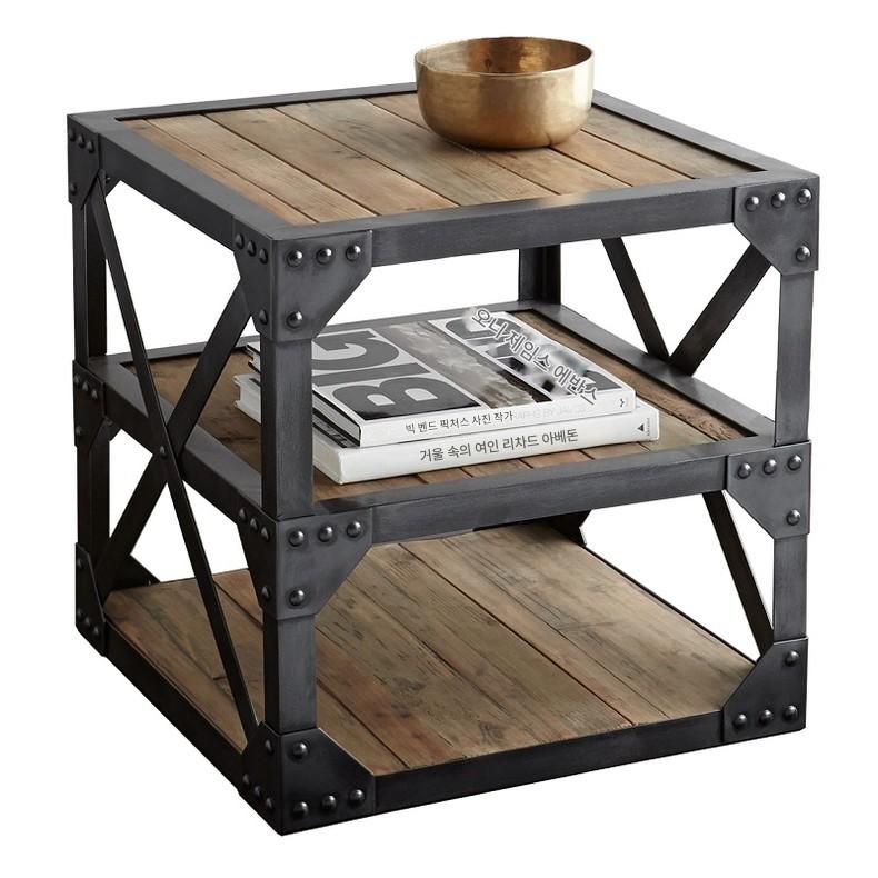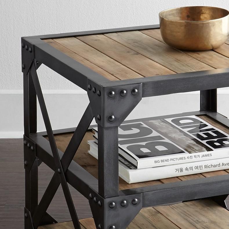 산업 스타일 레트로 소파 사이드 테이블 코너 테이블 아이언 솔리드 우드 거실 모던 심플 소형 커피 테이블 수납 테이블 소형 정사각형 테이블