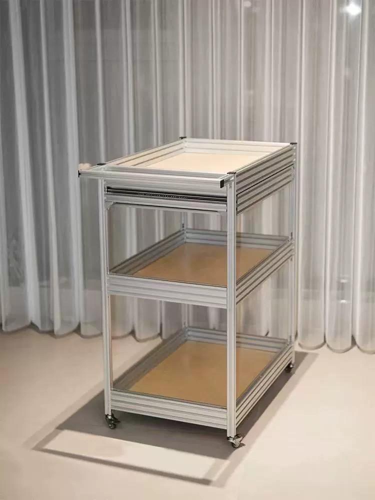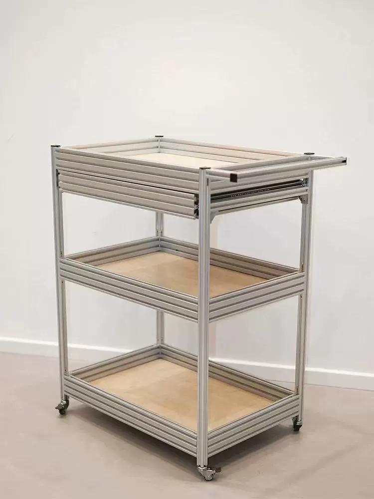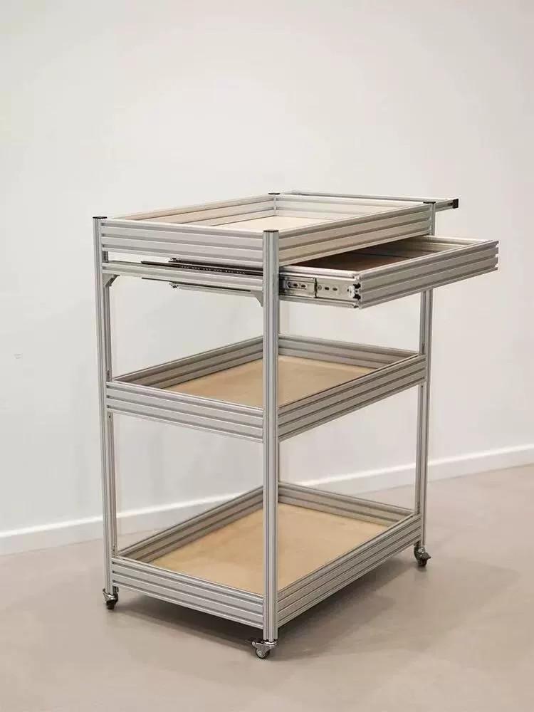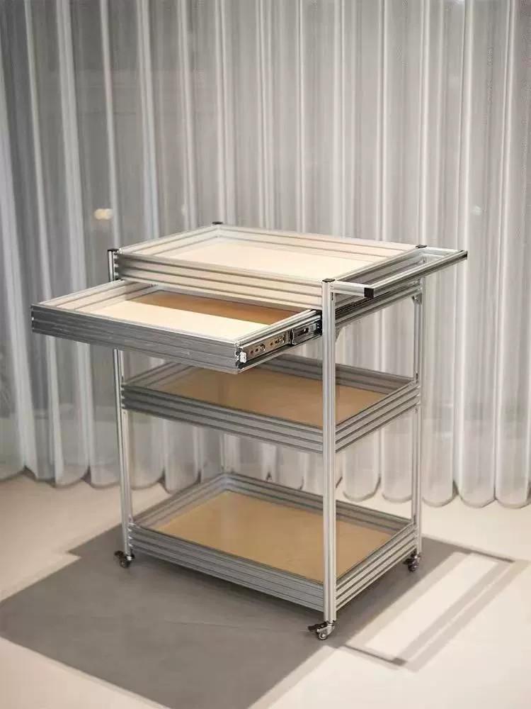 산업 스타일 자작나무 바다 보드 알루미늄 프로파일 이동식 트롤리 심플한 디자이너 커피 카트 소파 사이드 테이블
