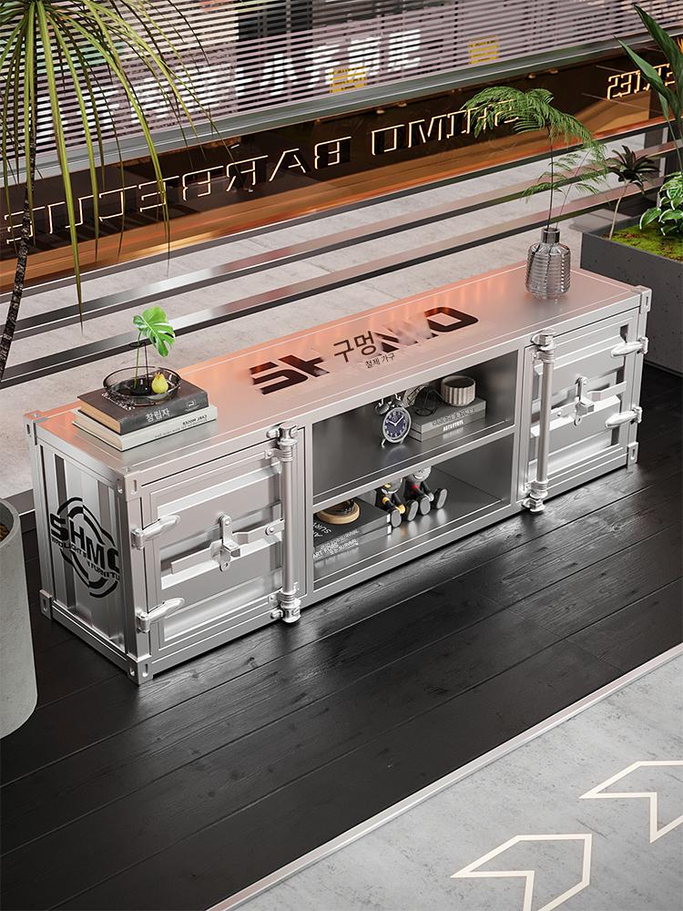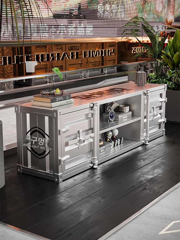 산업 스타일 TV 캐비닛 컨테이너 보관함 거실 커피 테이블 TV 배경 벽 캐비닛 철 장식 낮은 캐비닛