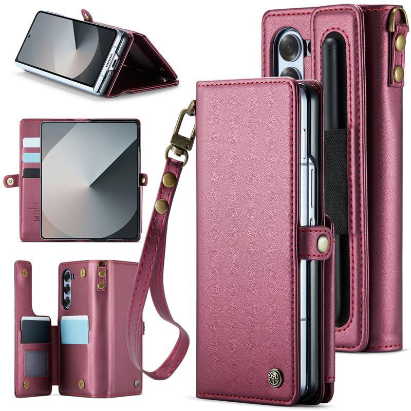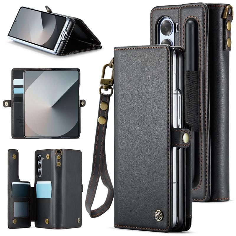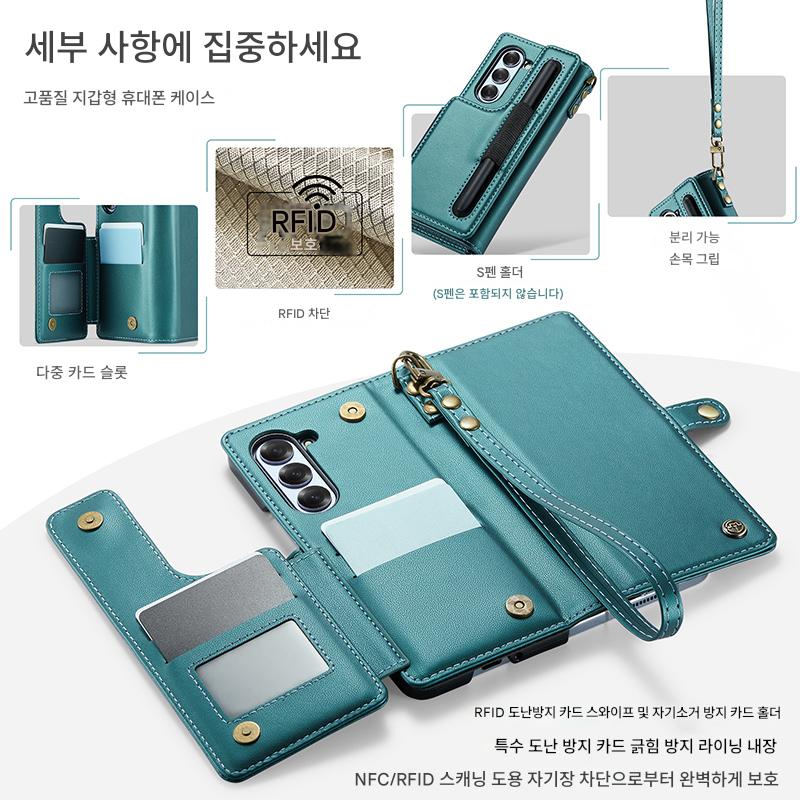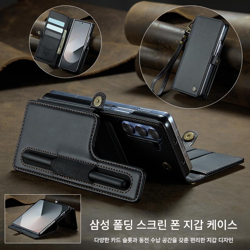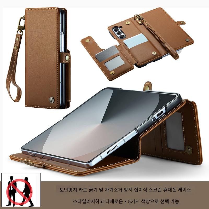 삼성 갤럭시 Z 폴드 6 접이식 스크린 카드 홀더 모바일 폰 케이스에 적합한 도난 방지 카드 스와이핑 방지 카드 삽입 및 변경 방지 자기 제거 카드 슬롯 보호 커버가 있는 새로운 플립 커버